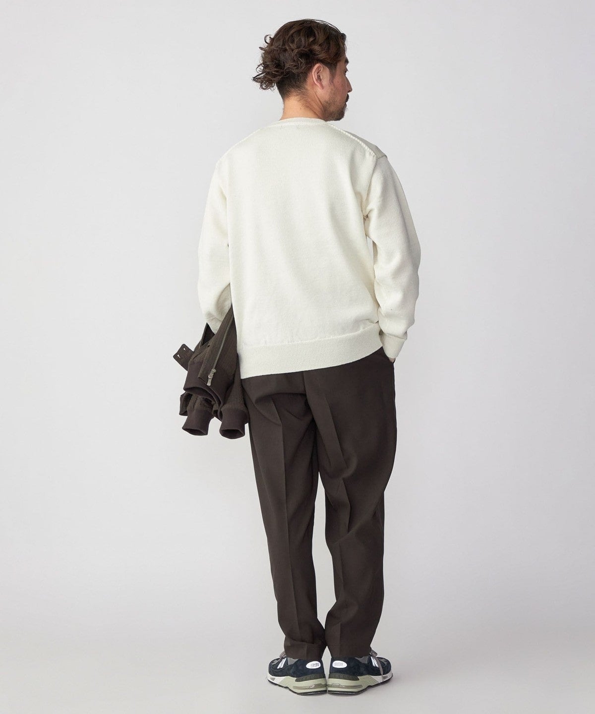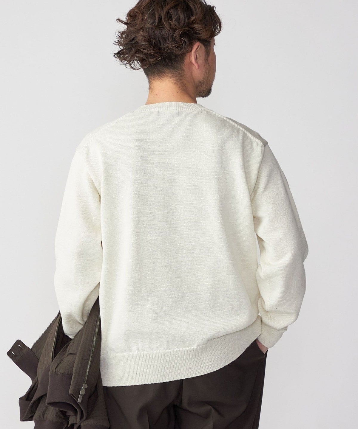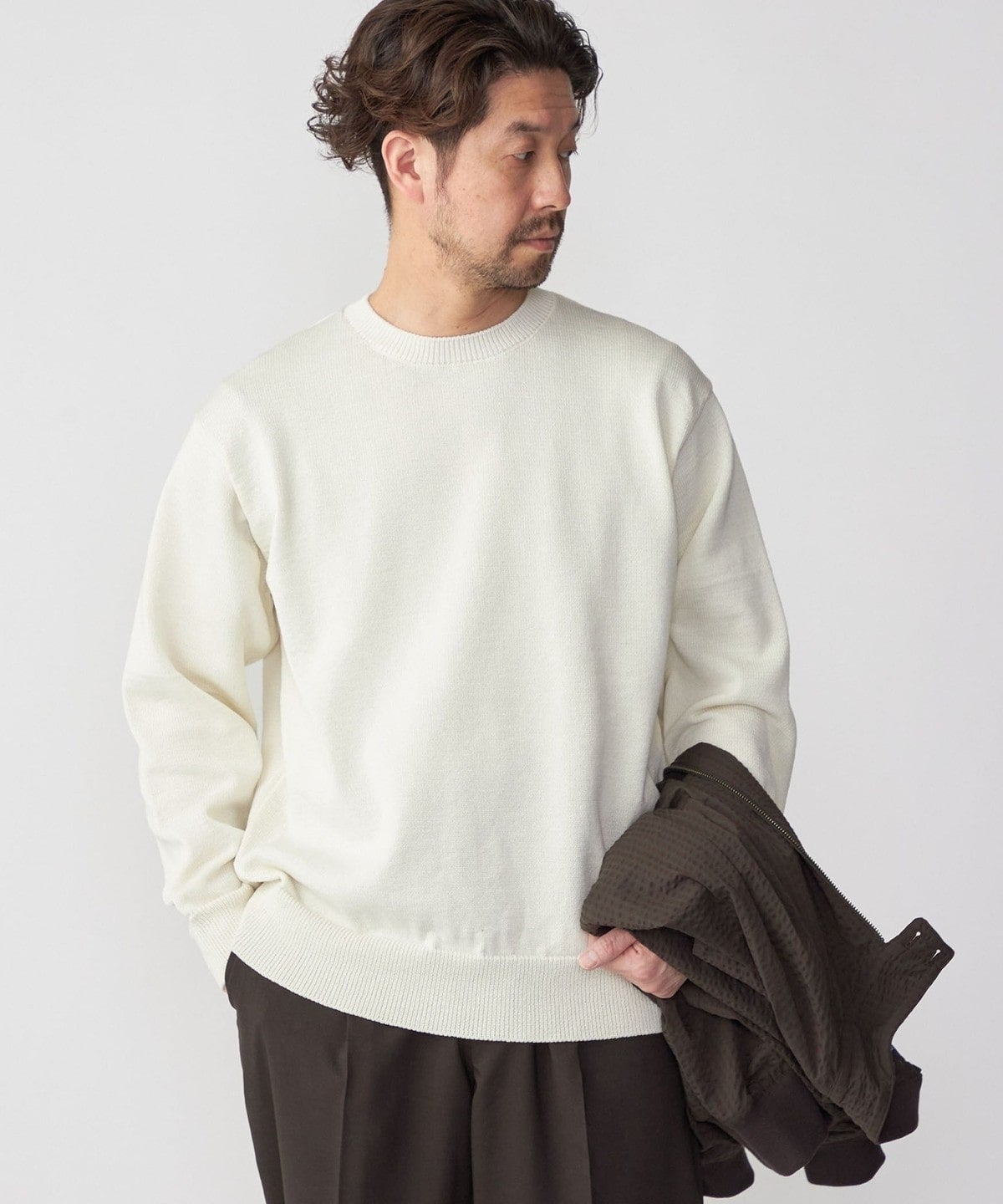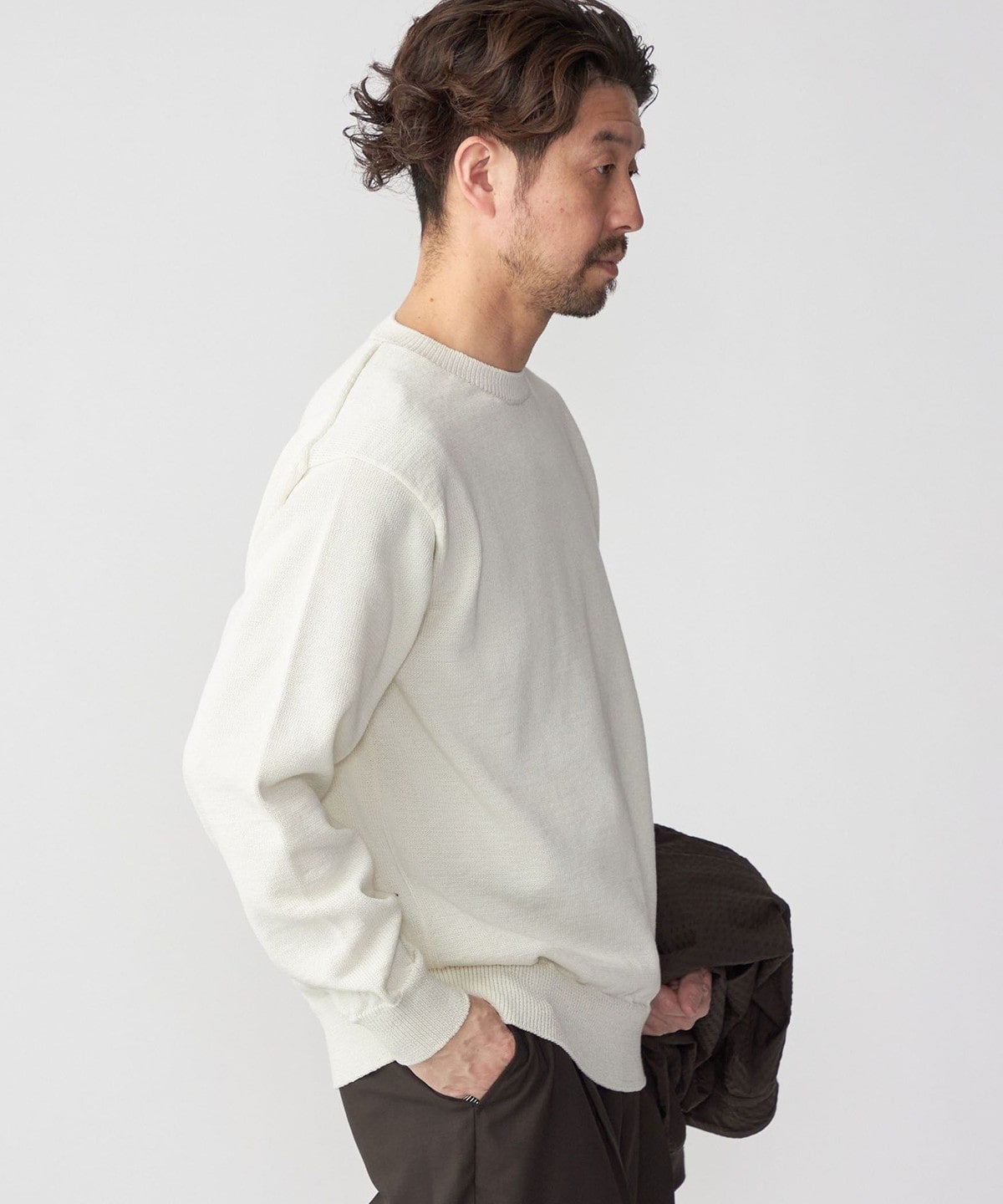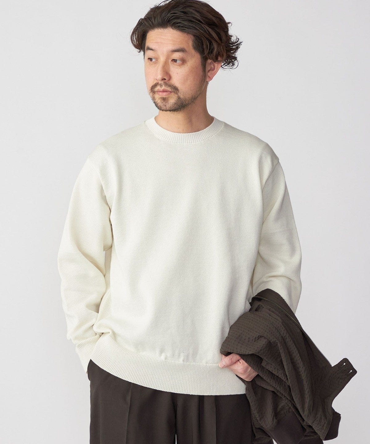 綿糸にギマ加工を施した、サラッとしたドライな風合いが特徴のクルーネックニット。