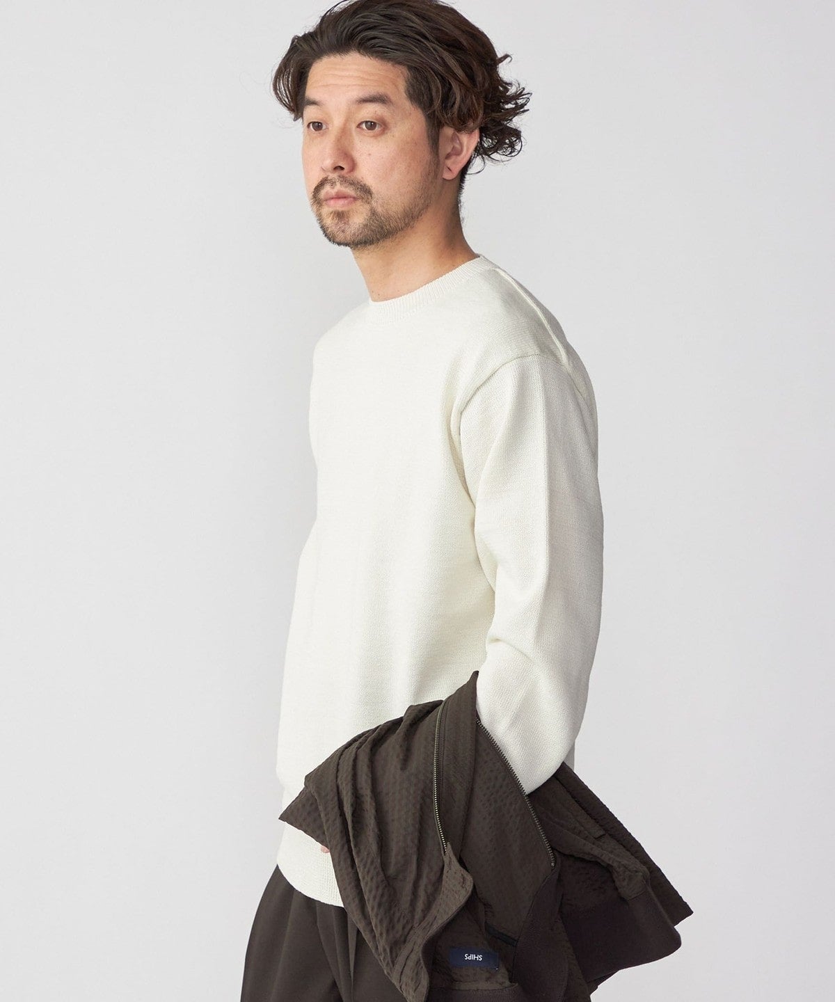 SHIPS:〈手洗い可能〉7ゲージ 2プライ ストローヤーン ギマ クルーネック ニット