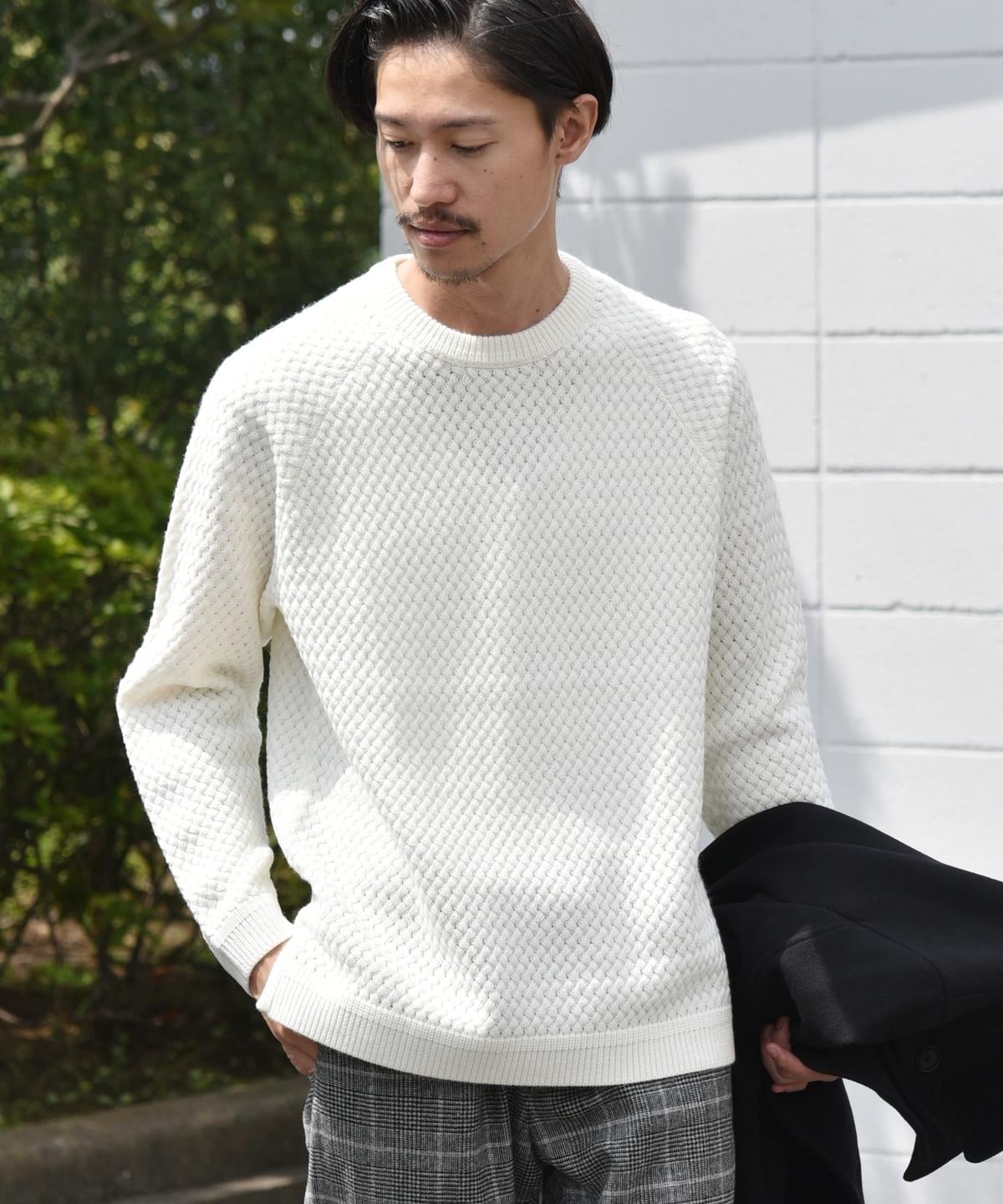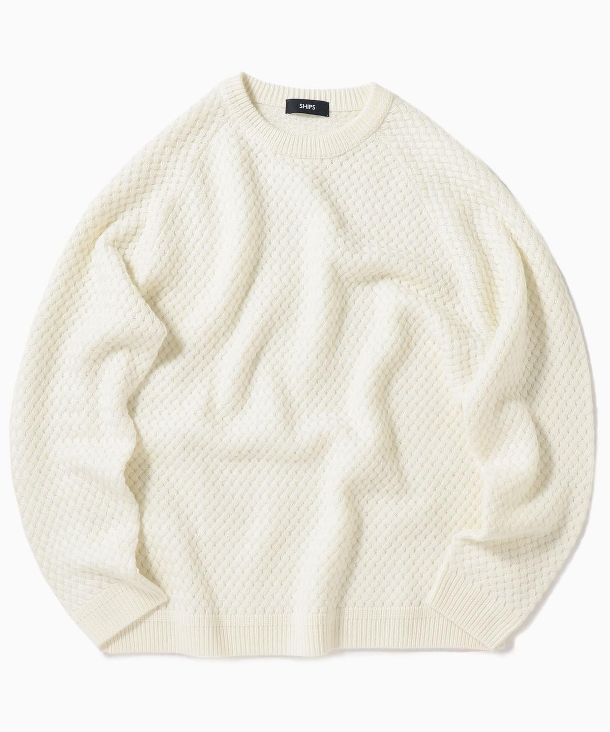SHIPS: 7ゲージ バスケット ピケ クルーネック ニット