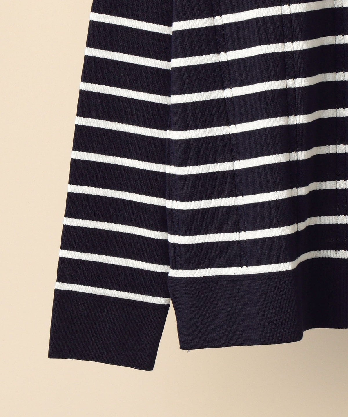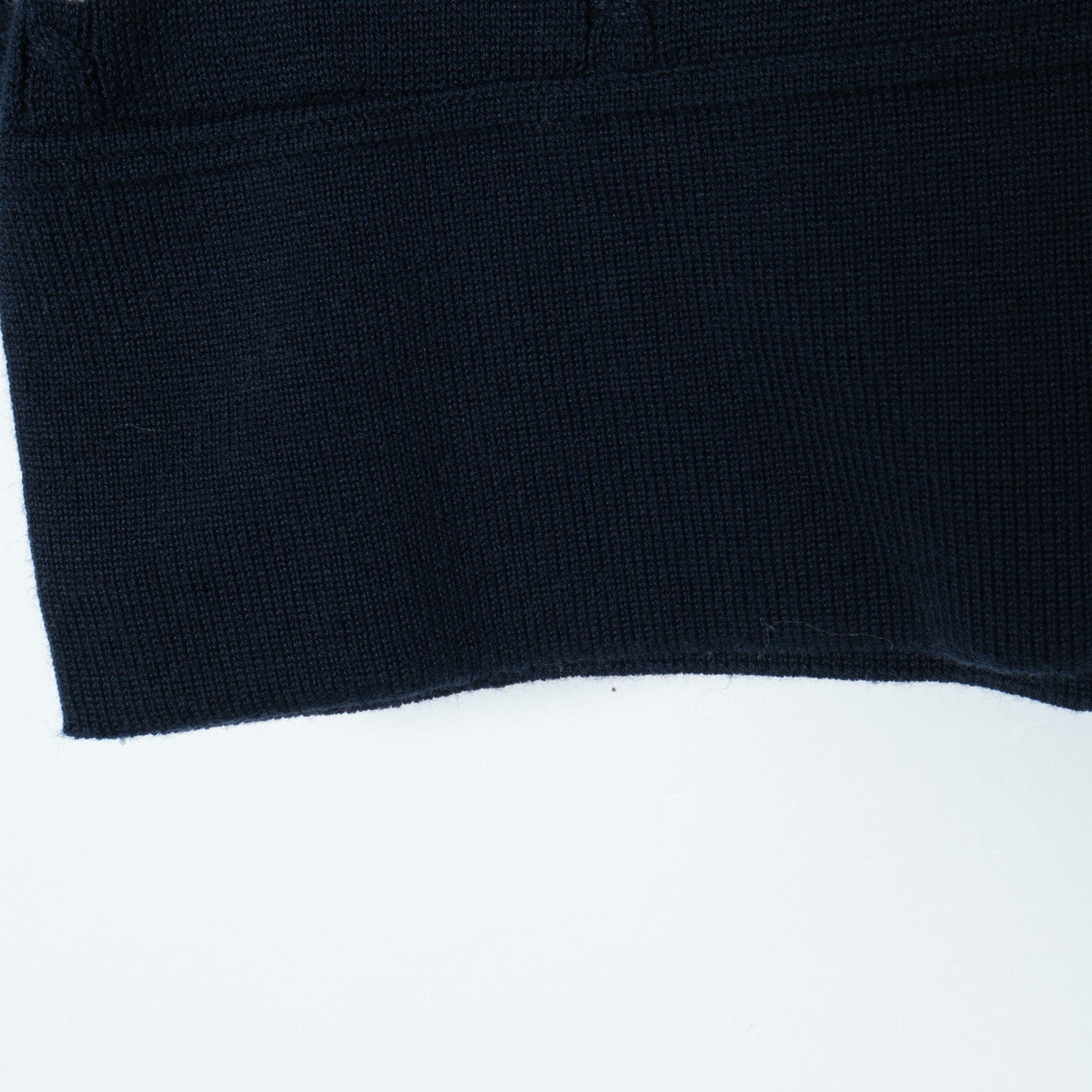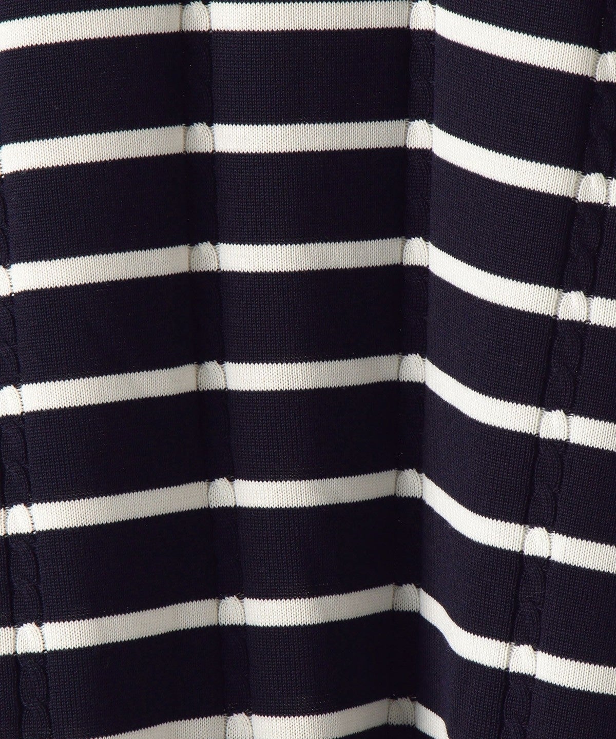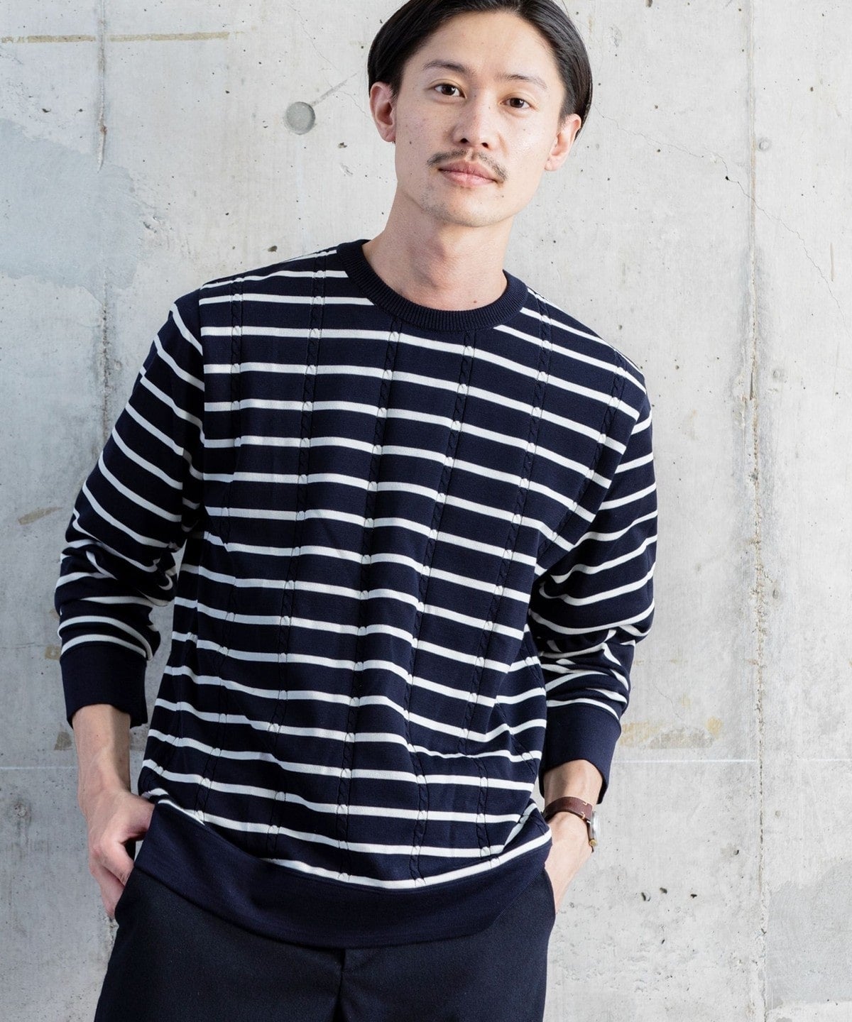 さらには、縦にケーブルのラインを施しながらも良い意味で控えめな編地にしており洗練されたニットに仕上げております。