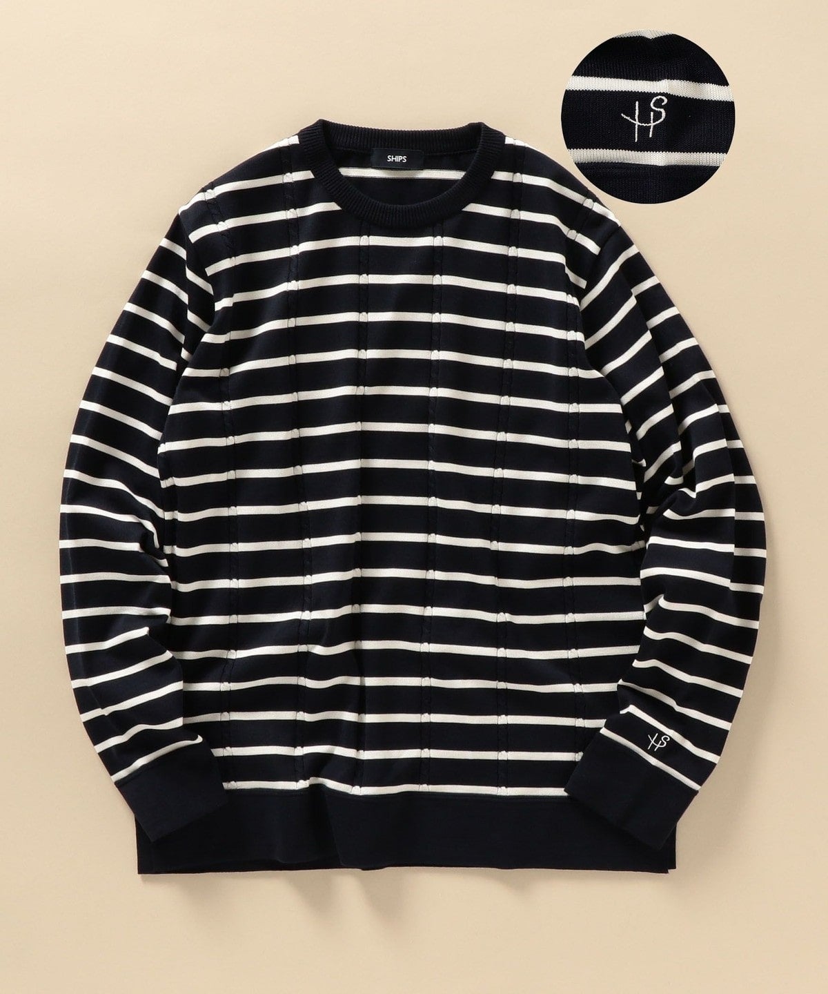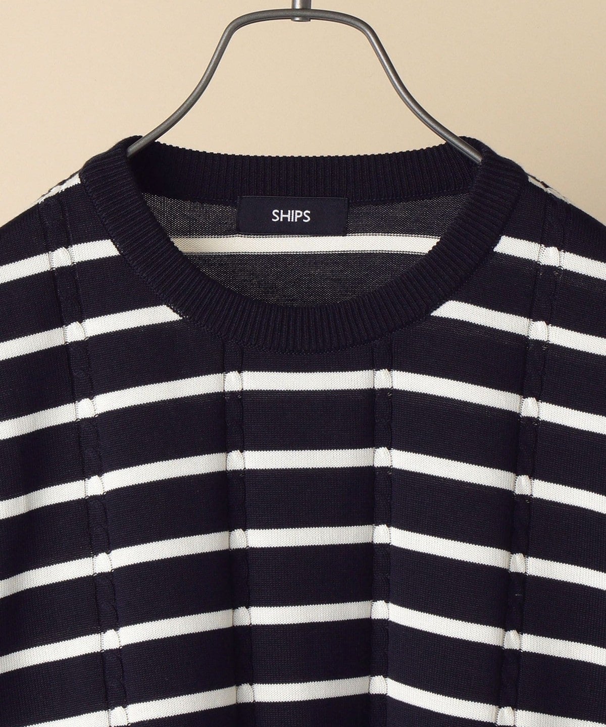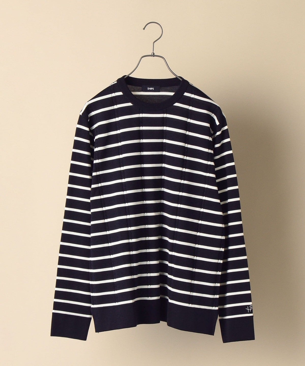 【WEB限定】SHIPS: 《ガシガシ洗える》 抗菌・防臭 ハイゲージ ケーブル クルーネック ニット