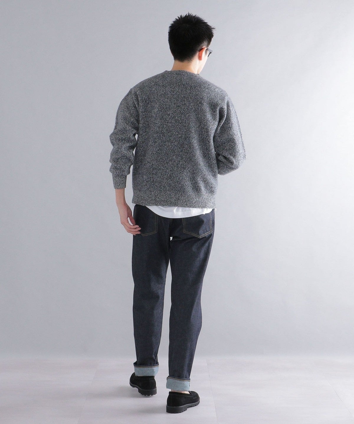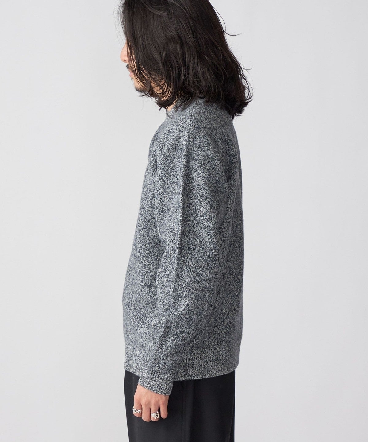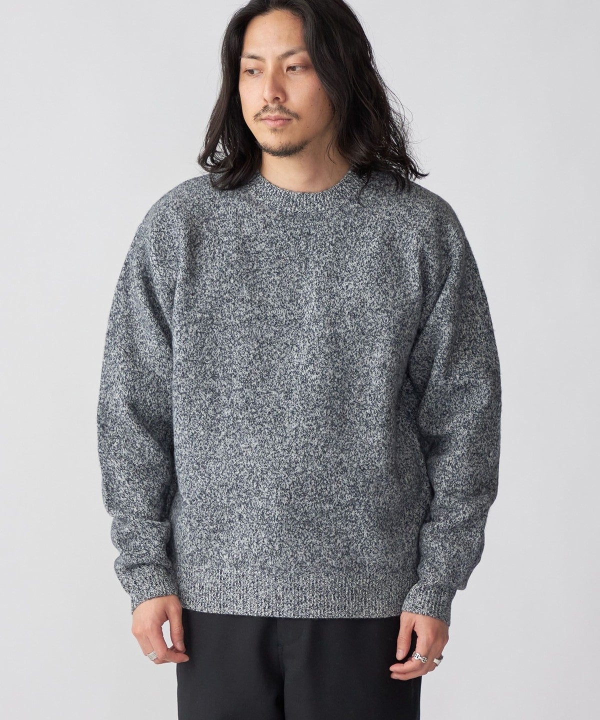 ムラ感のあるメランジニットの風合いがこなれ感を演出するクルーネックプルオーバー。