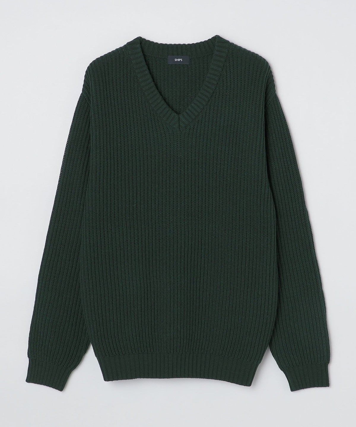 SHIPS:〈手洗い可能〉リラックスフィット 畔編み Vネック ニット