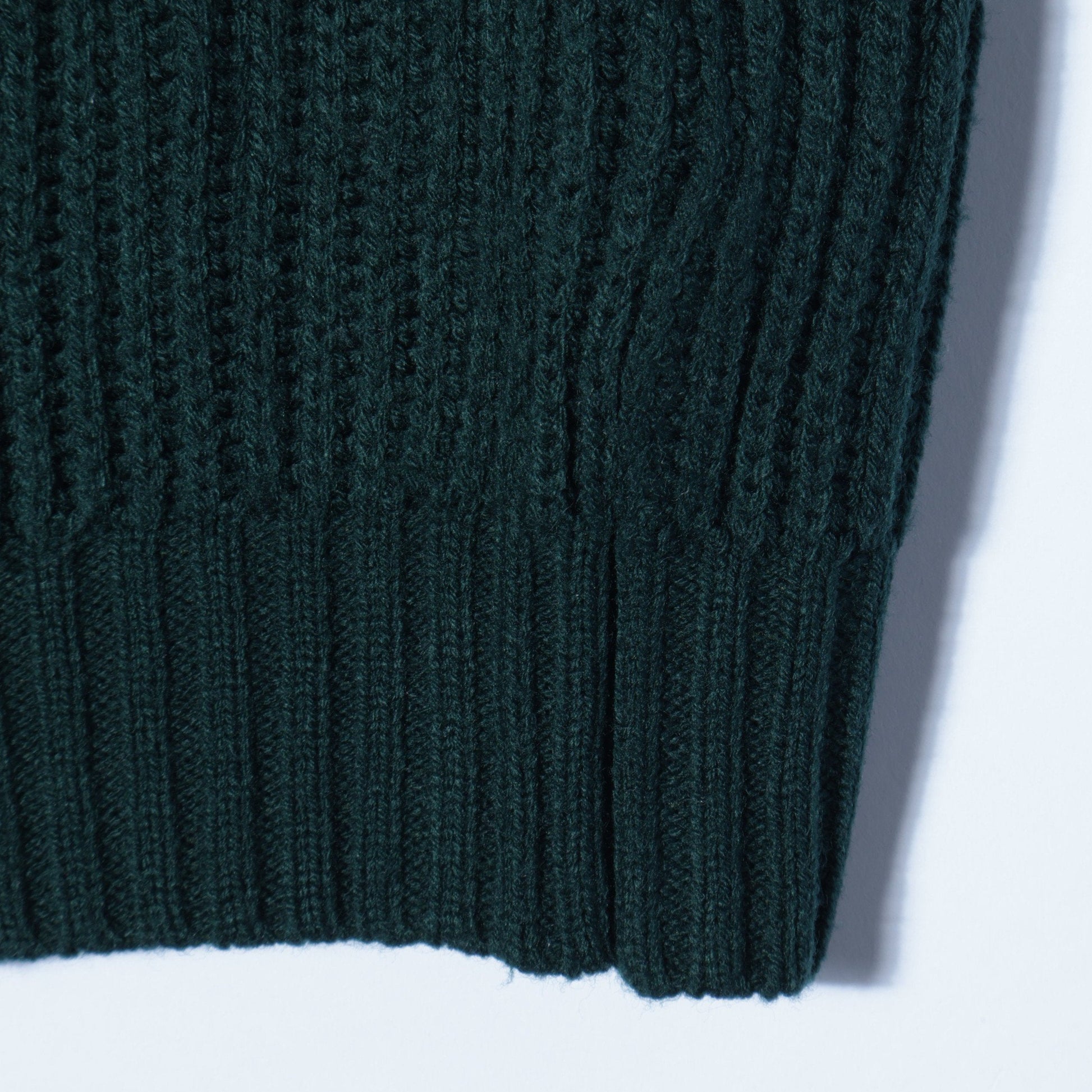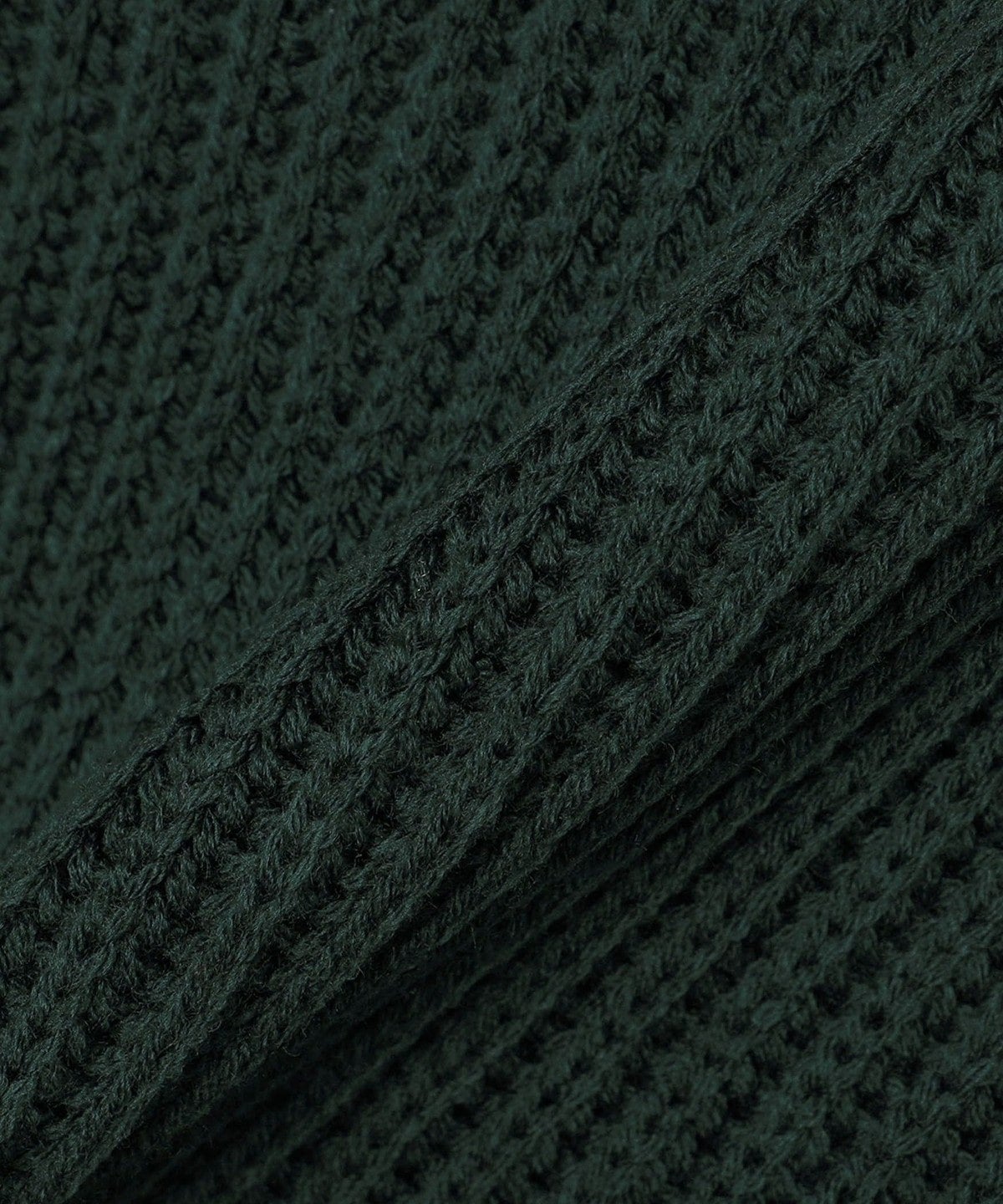 程よくざっくりとした質感と適度な厚みが特徴のミドルゲージなので、一枚で様になるのはもちろん、インナーとしても使い勝手の良い万能なアイテム。アクリル素材を使用しているので、ウールにありがちなチクチク感もなく安心してご着用いただけます。