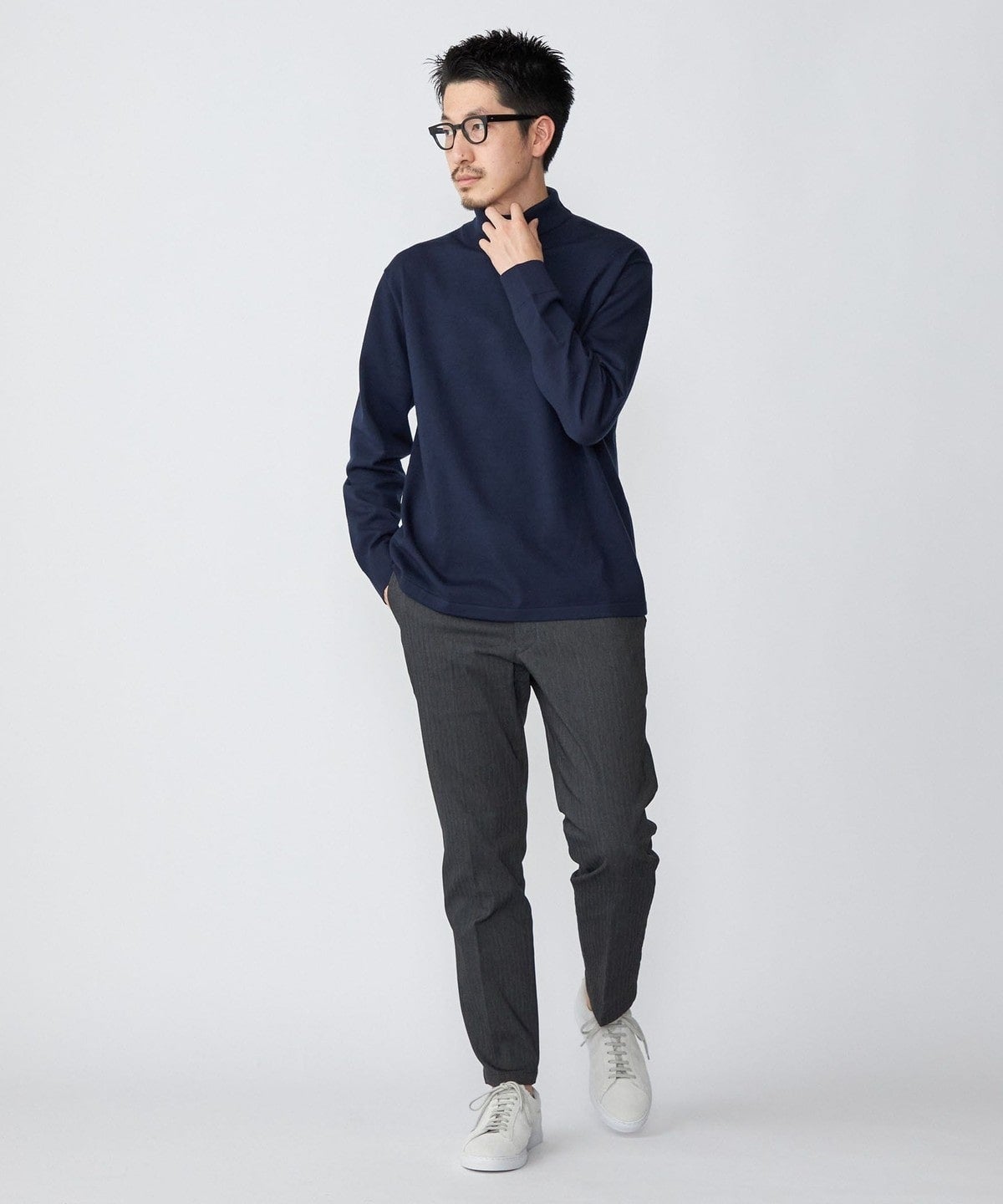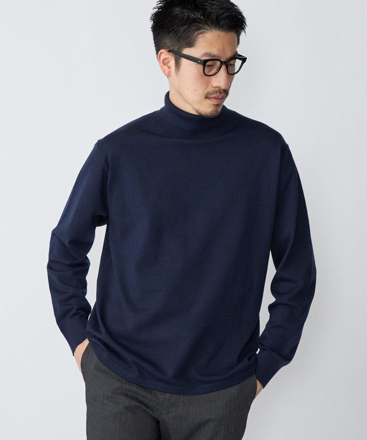 クルーネックやVネックのニットと比べ、首元の開きがないのでインナーにシャツやカットソーを重ね着しなくても一枚着でシンプルに着るだけでスタイル良く上品に着こなすことができます。