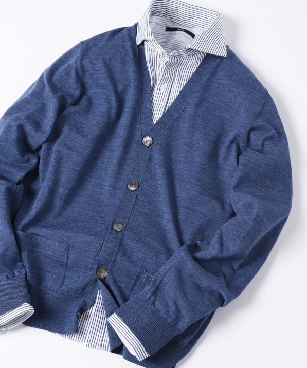 『シップス定番のビジネス対応のオリジナルカーディガン』