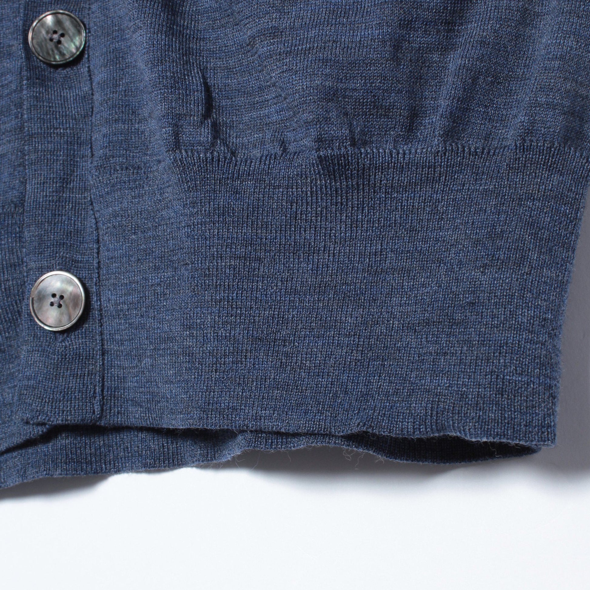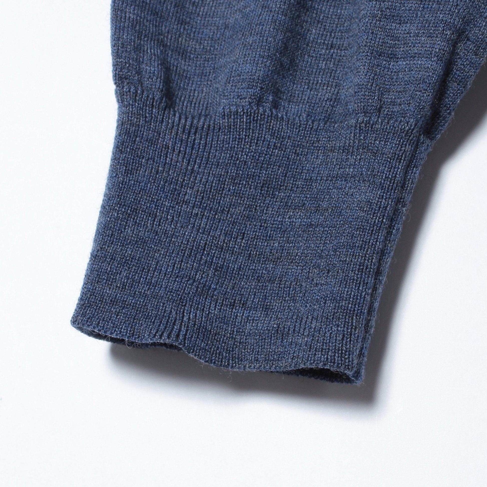 通常よりピリングが起こり難く、均一な生地で、柔らかい肌触りが特徴です。16ゲージの薄さで、ジャケットの中に着ても響くことはありません。またご自宅での洗濯も可能(手洗い)ということで、お手入れ面も安心の作りです。