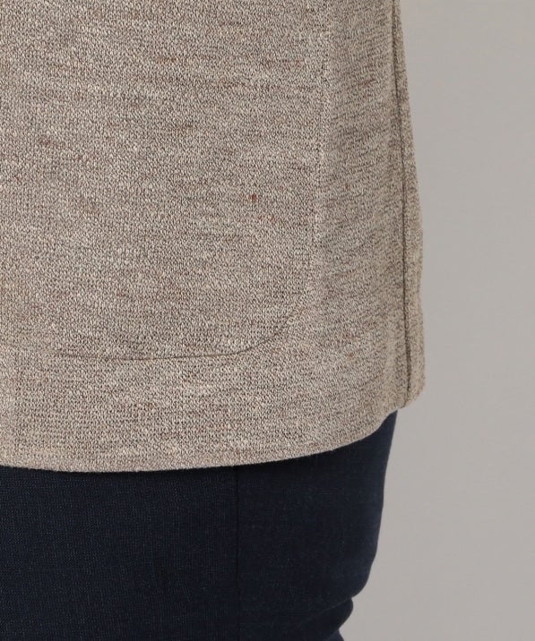 こちらはリネンのメランジ糸を使用。リネンは2つの高級リネン、フレンチリネンとベルギーリネンで、軽く、光沢とドレープ感が特徴です。