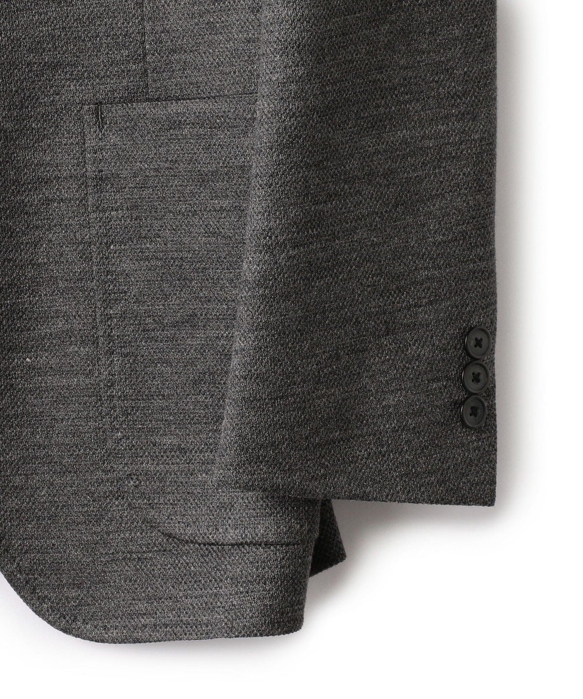 ●袖ボタン: 並びの3つボタン(切羽無し)。