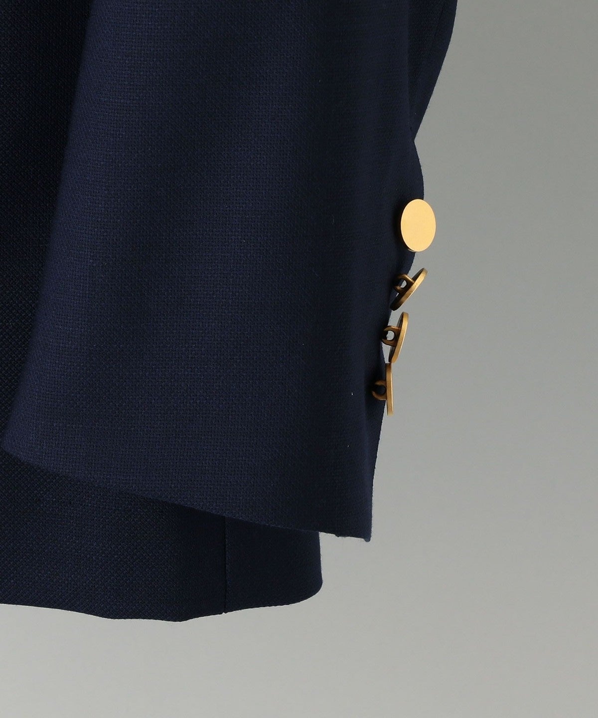 お飲みでネイビーブレザーに出来るように、クラシック過ぎないフラットなゴールドメタルボタンが付属しています。