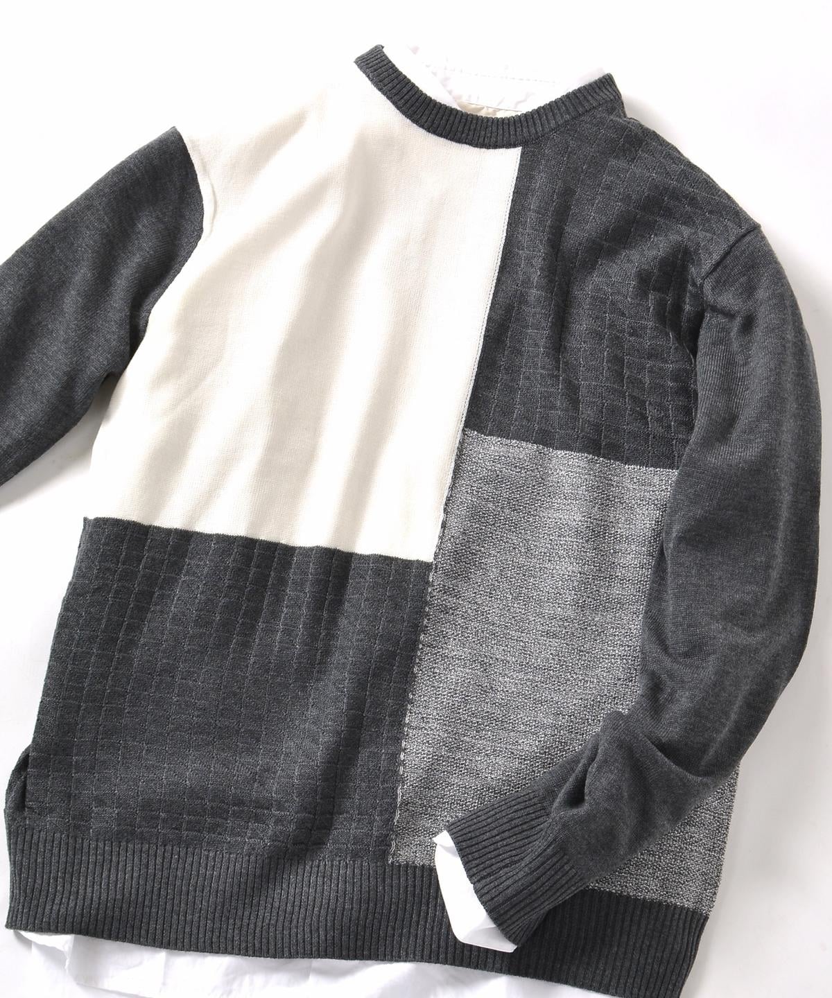 SHIPS JET BLUE: パッチワーククルーネックニット
