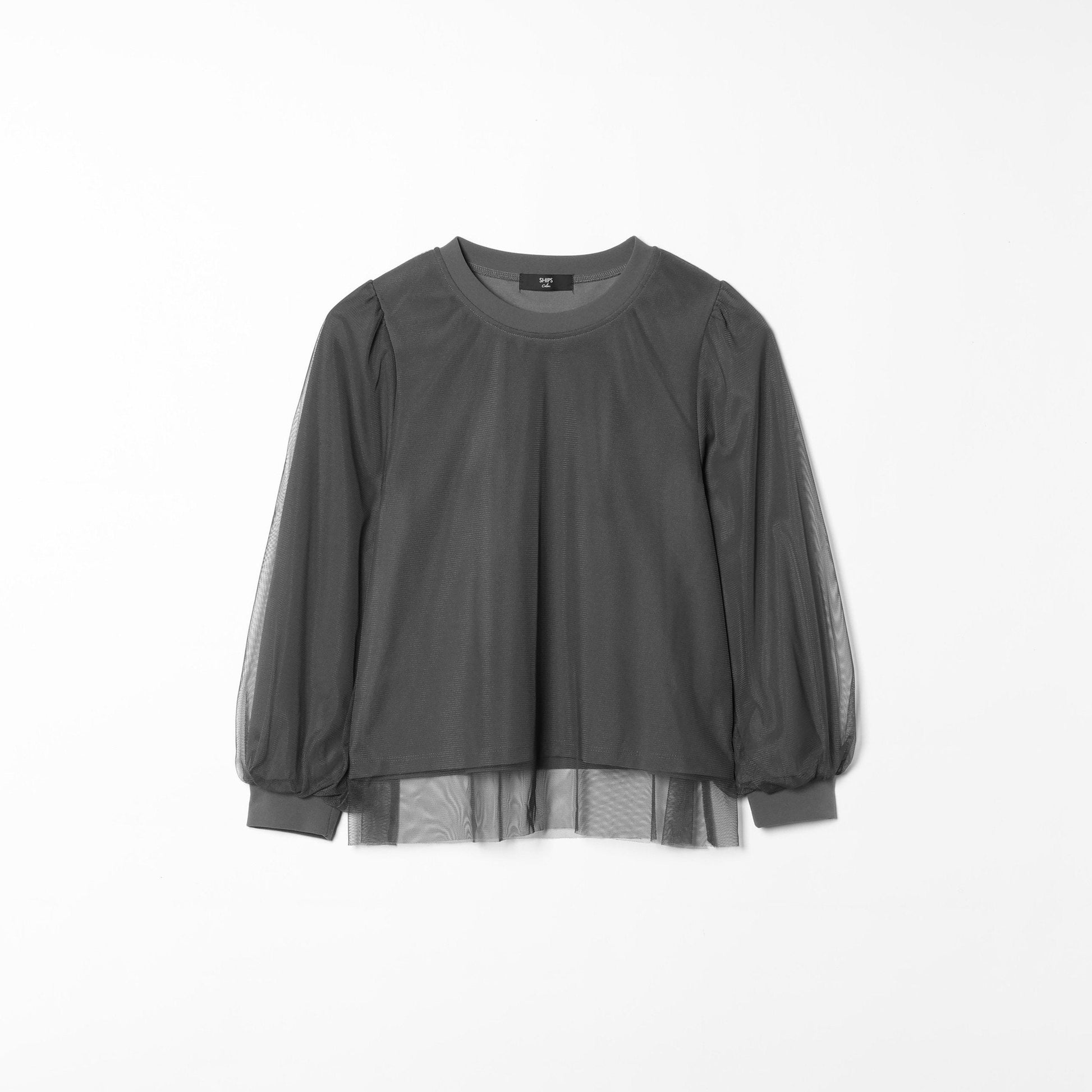 シンプルなクルーネックのカットソーにチュールを重ねた1枚。
