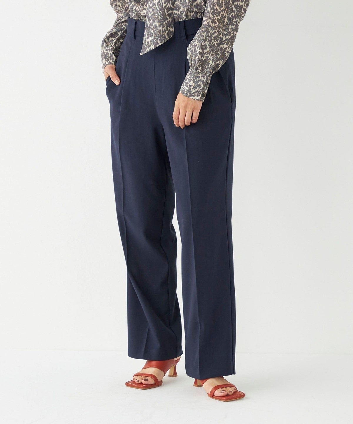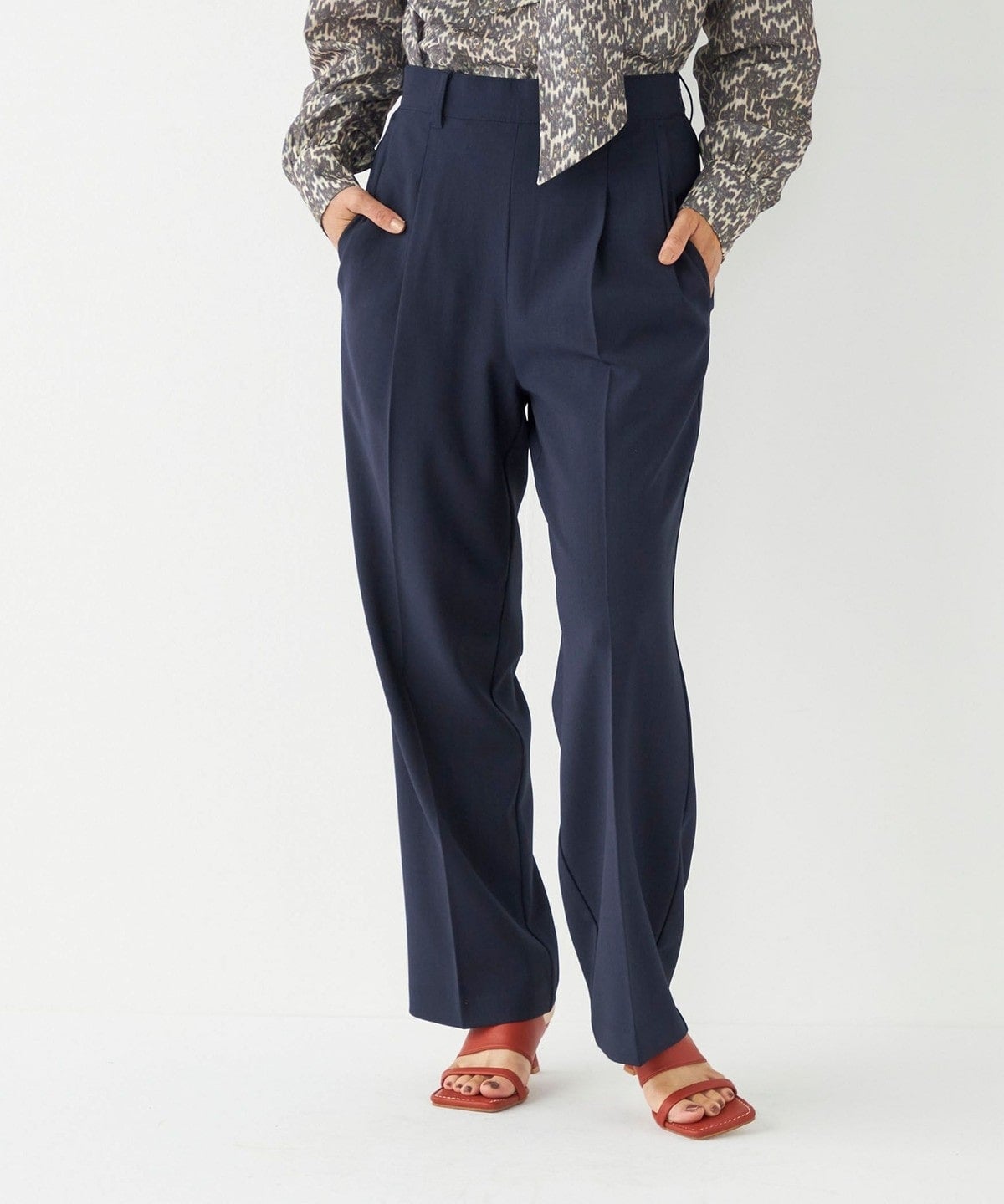 スッキリとしたストレートシルエットとセンタープレスで脚がすっきりと、フロントのタックでお腹周りをさり気くカバーし、スタイルアップが叶う1本です。