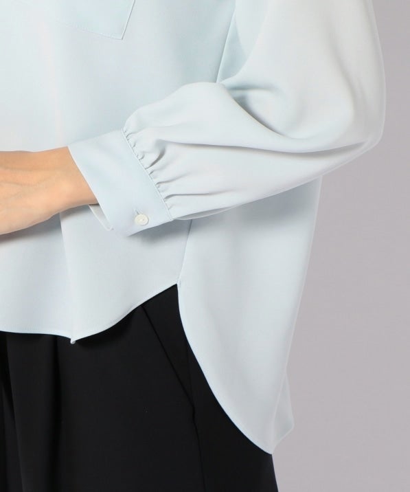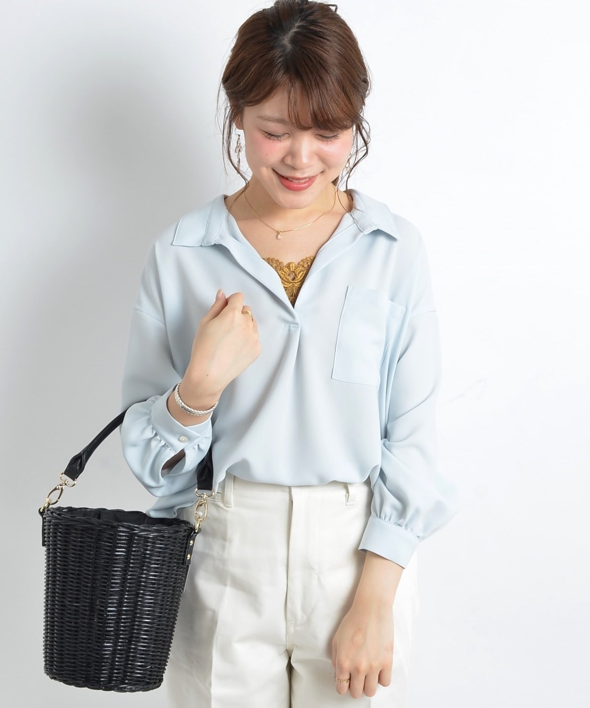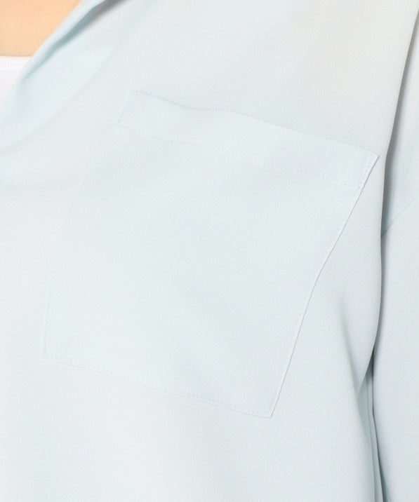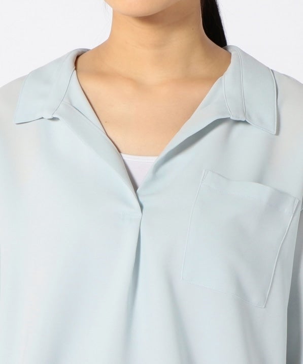 胸ポケット付きのスキッパーシャツ。淡いカラーが春にぴったりの一枚。ON,OFF問わずに着まわせます。