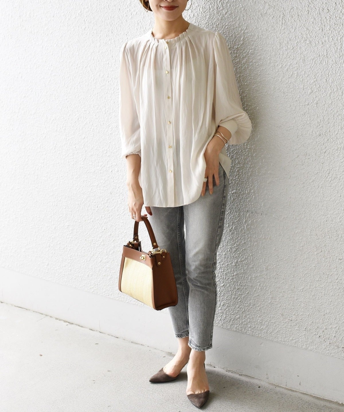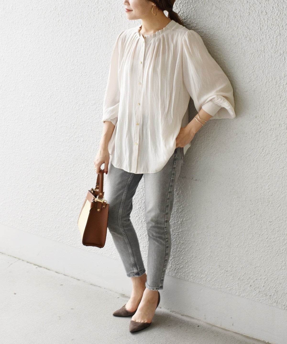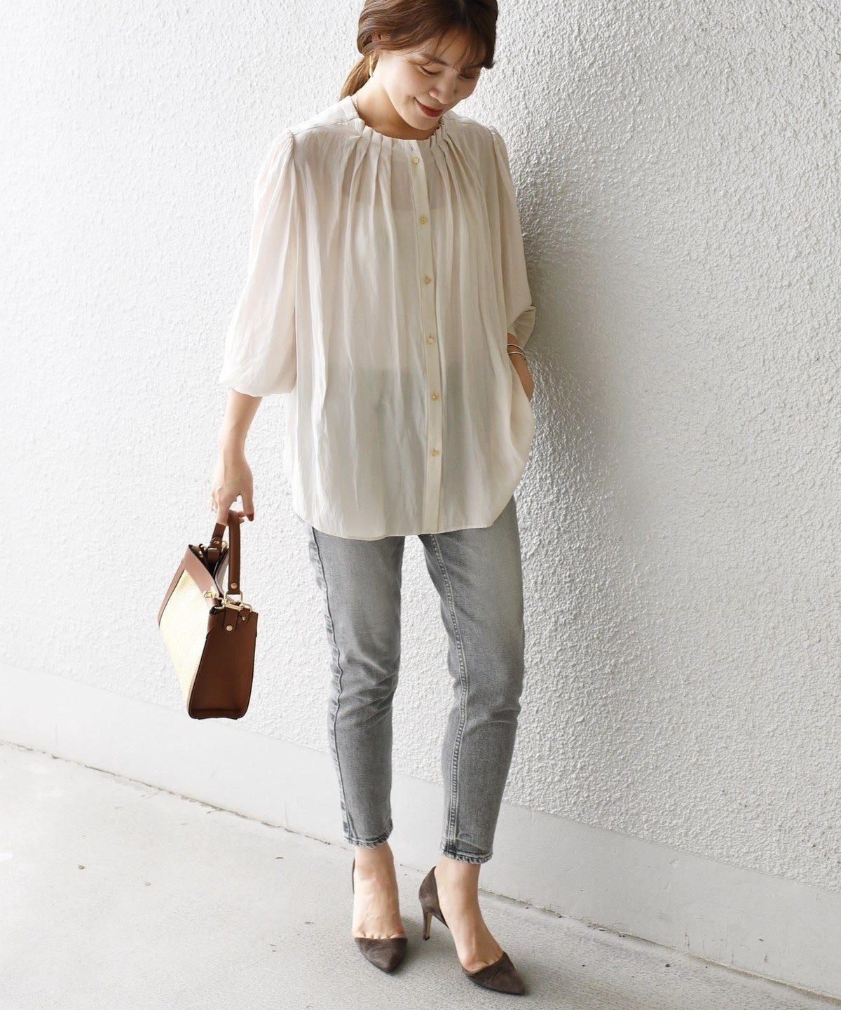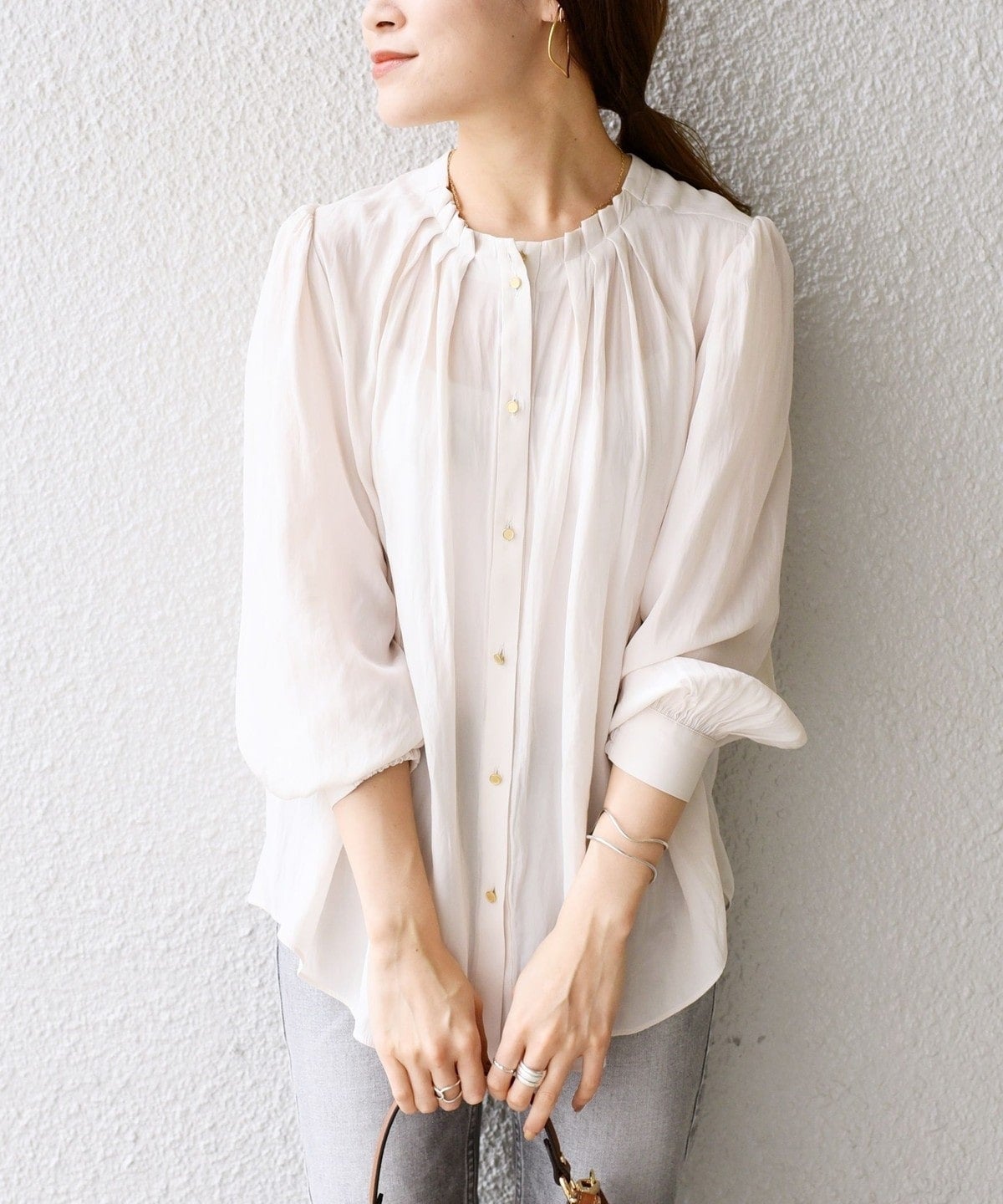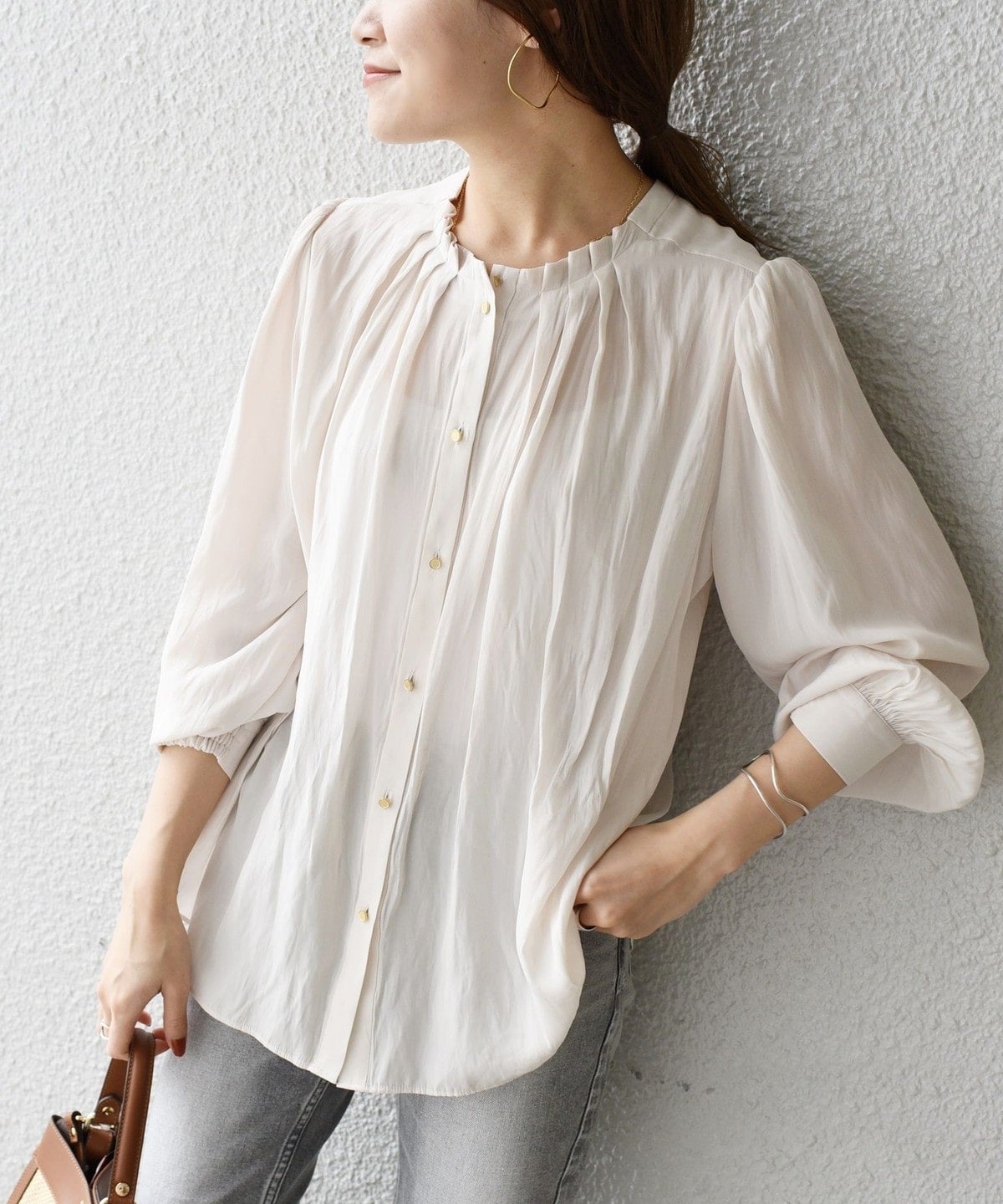 柔らかなカッセン素材のブラウスは抗菌、防臭加工を施した素材を使用しています。