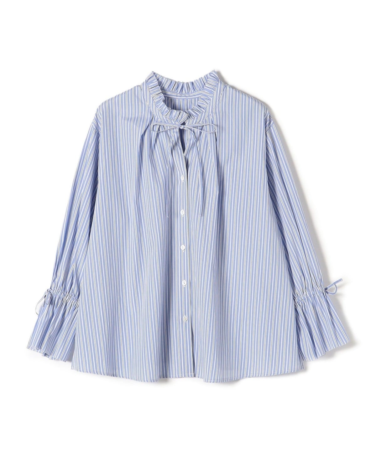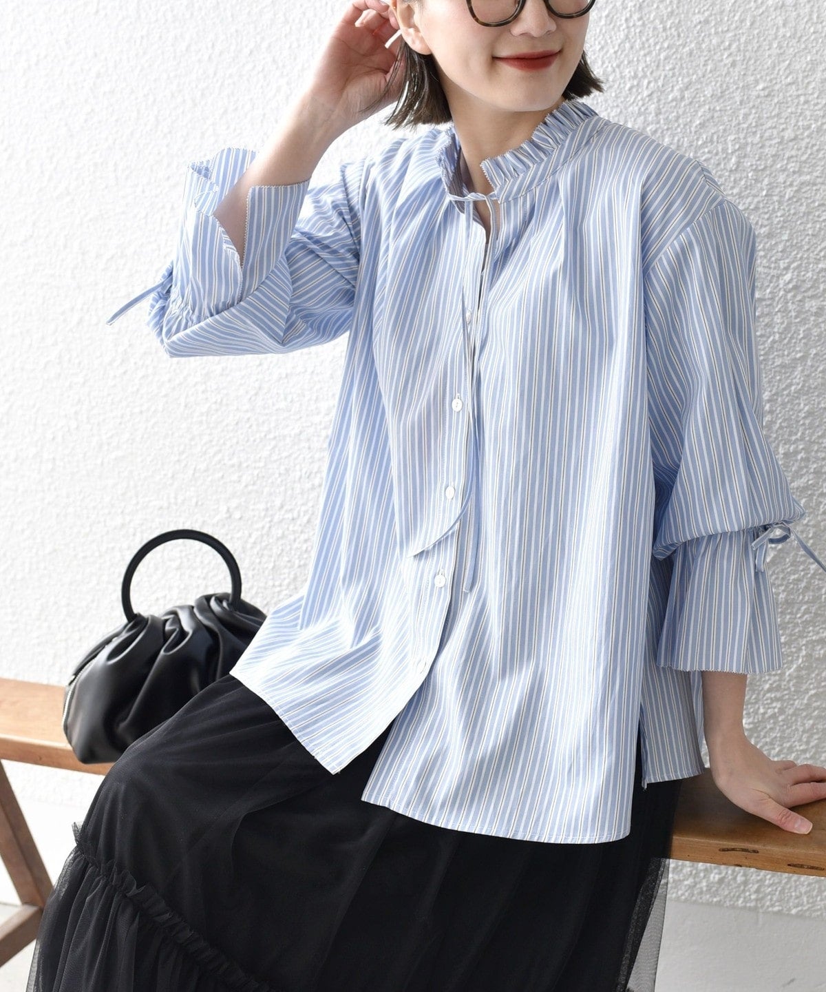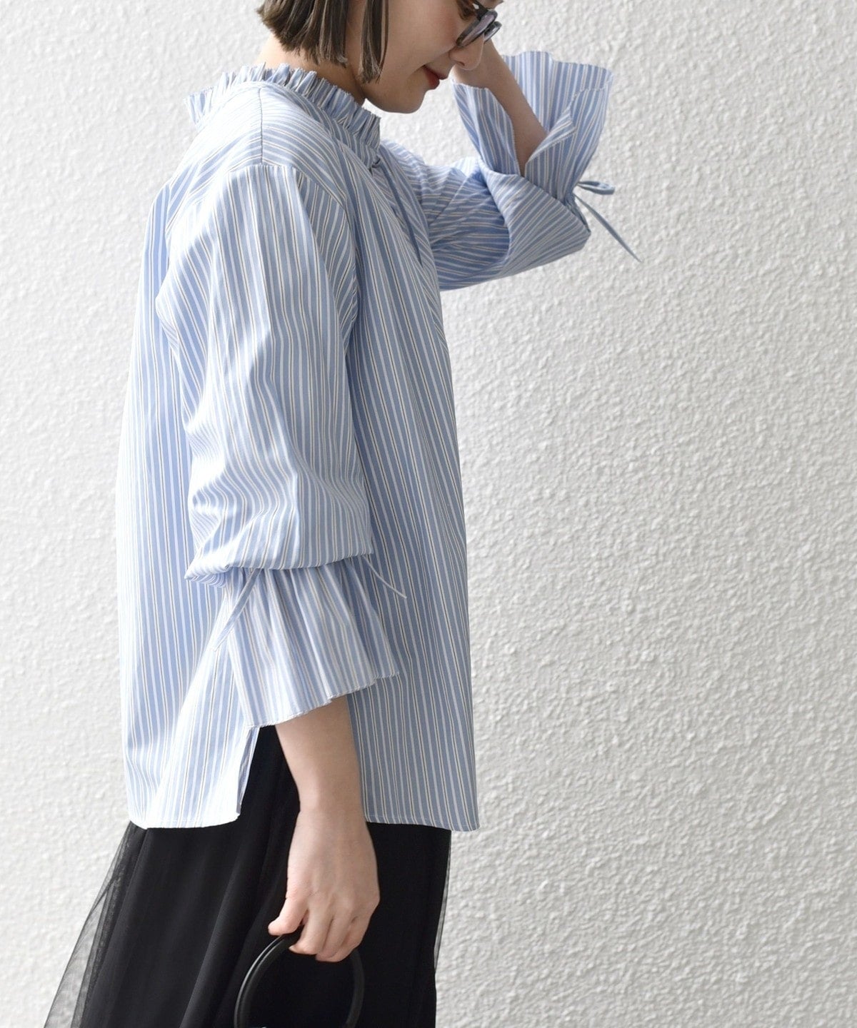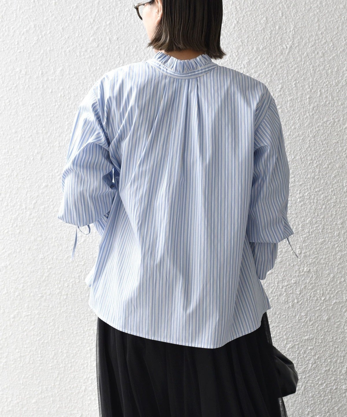 〈手洗い可能〉ブロード ストライプ キャンディ スリーブ ブラウス