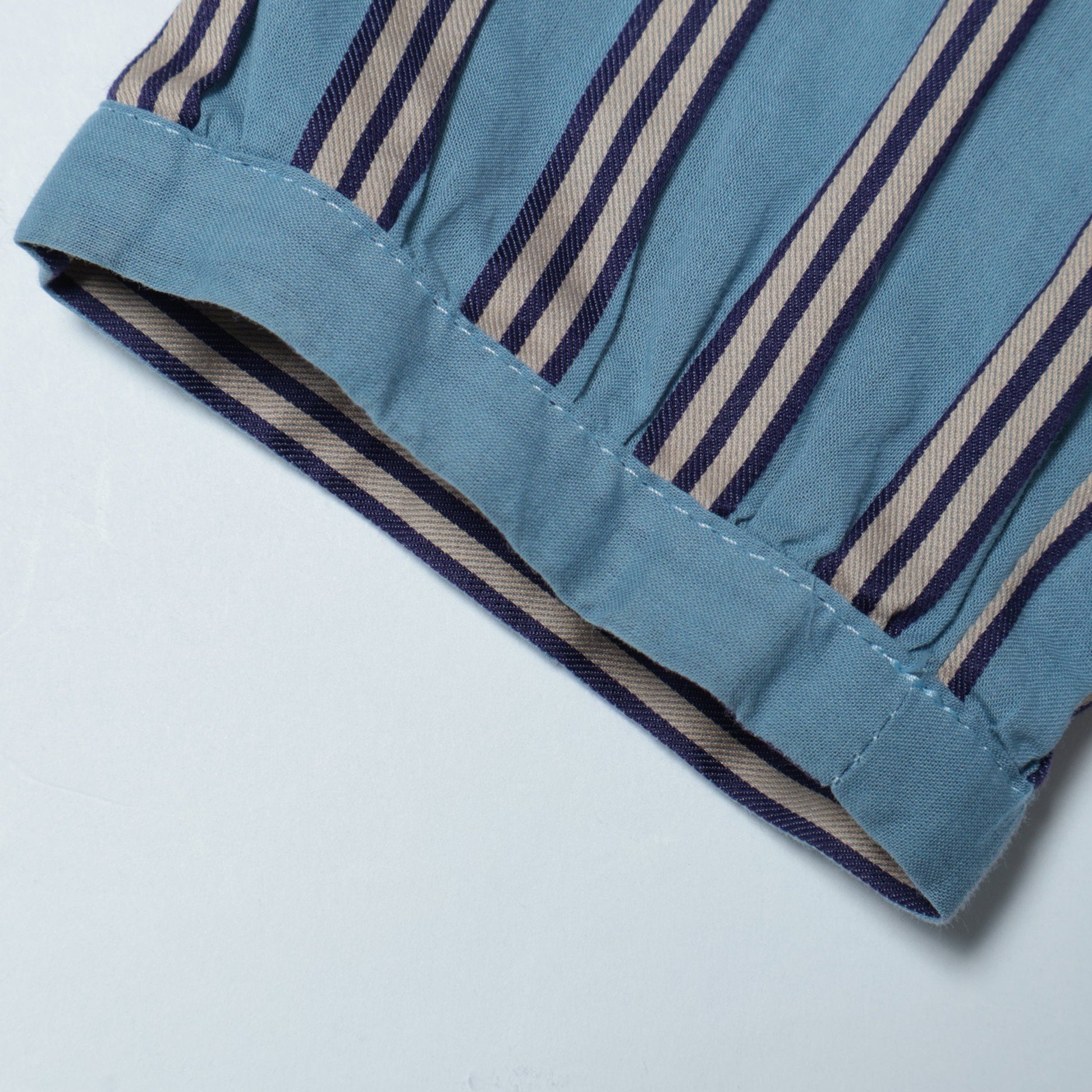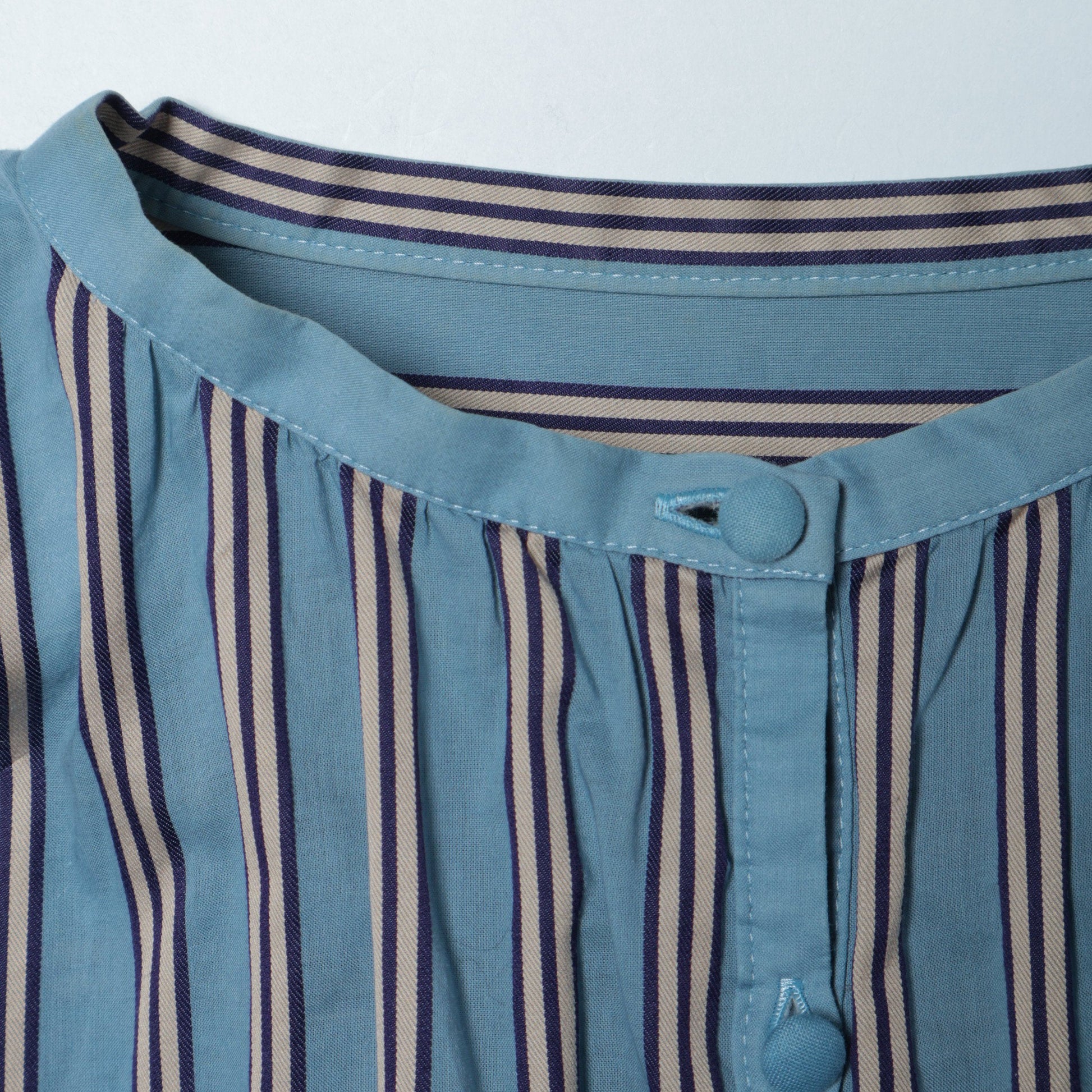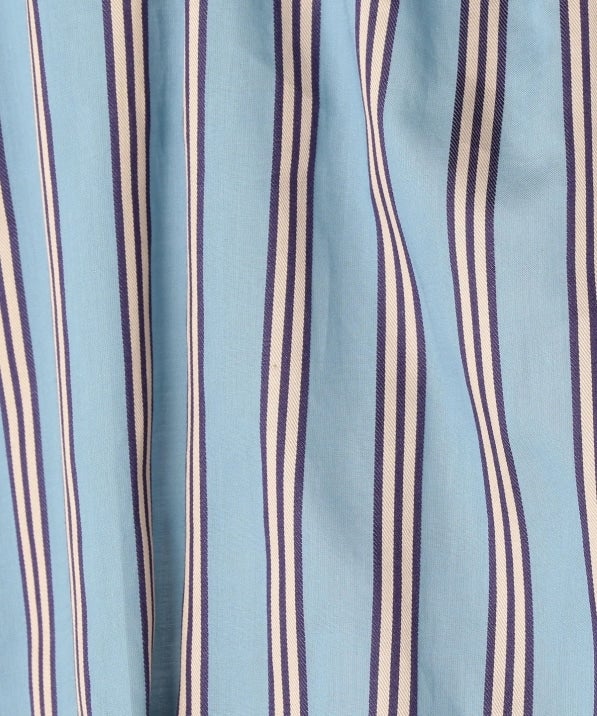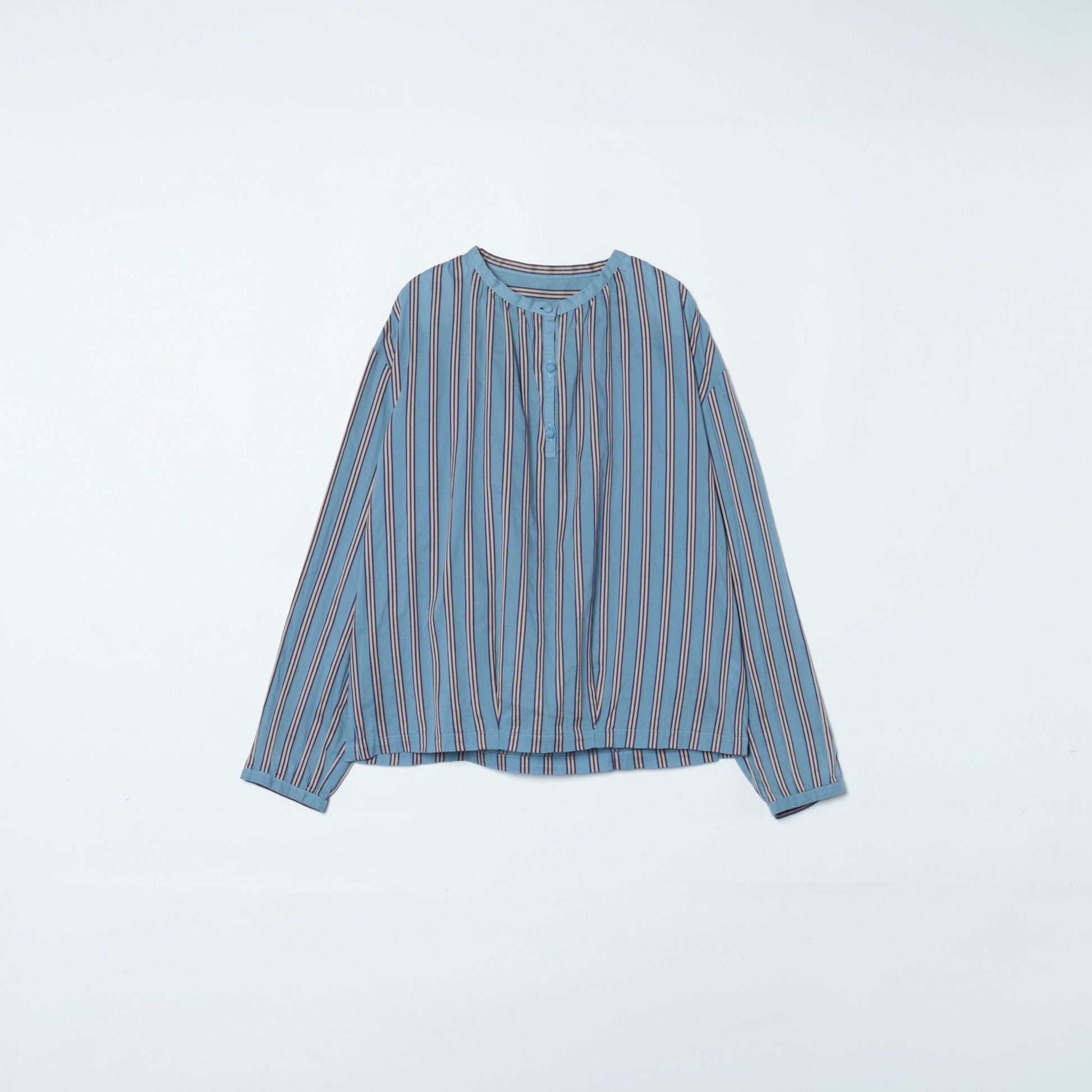 ストライプが印象的なタックブラウス。一枚で決まるデザイントップスはこれからの季節に欠かせないアイテム。合わせ方次第で、ON・OFF兼用で着まわせます。
