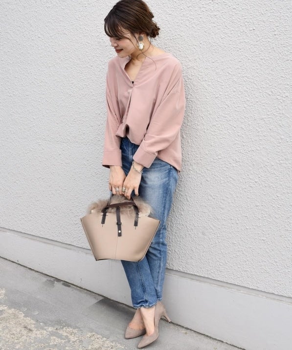 裾に向けてコクーンシルエットになる丸みのあるデザインが、女性らしい柔らかさを演出してくれるブラウス。