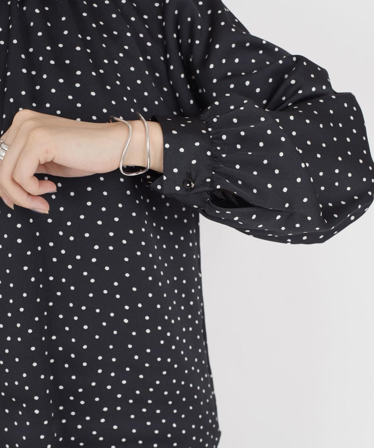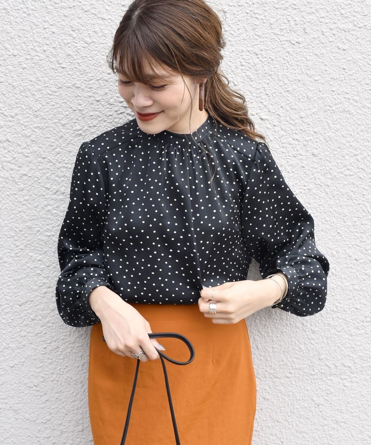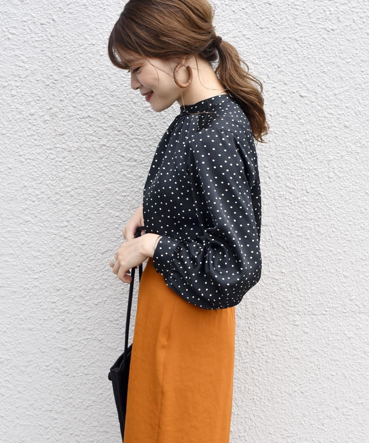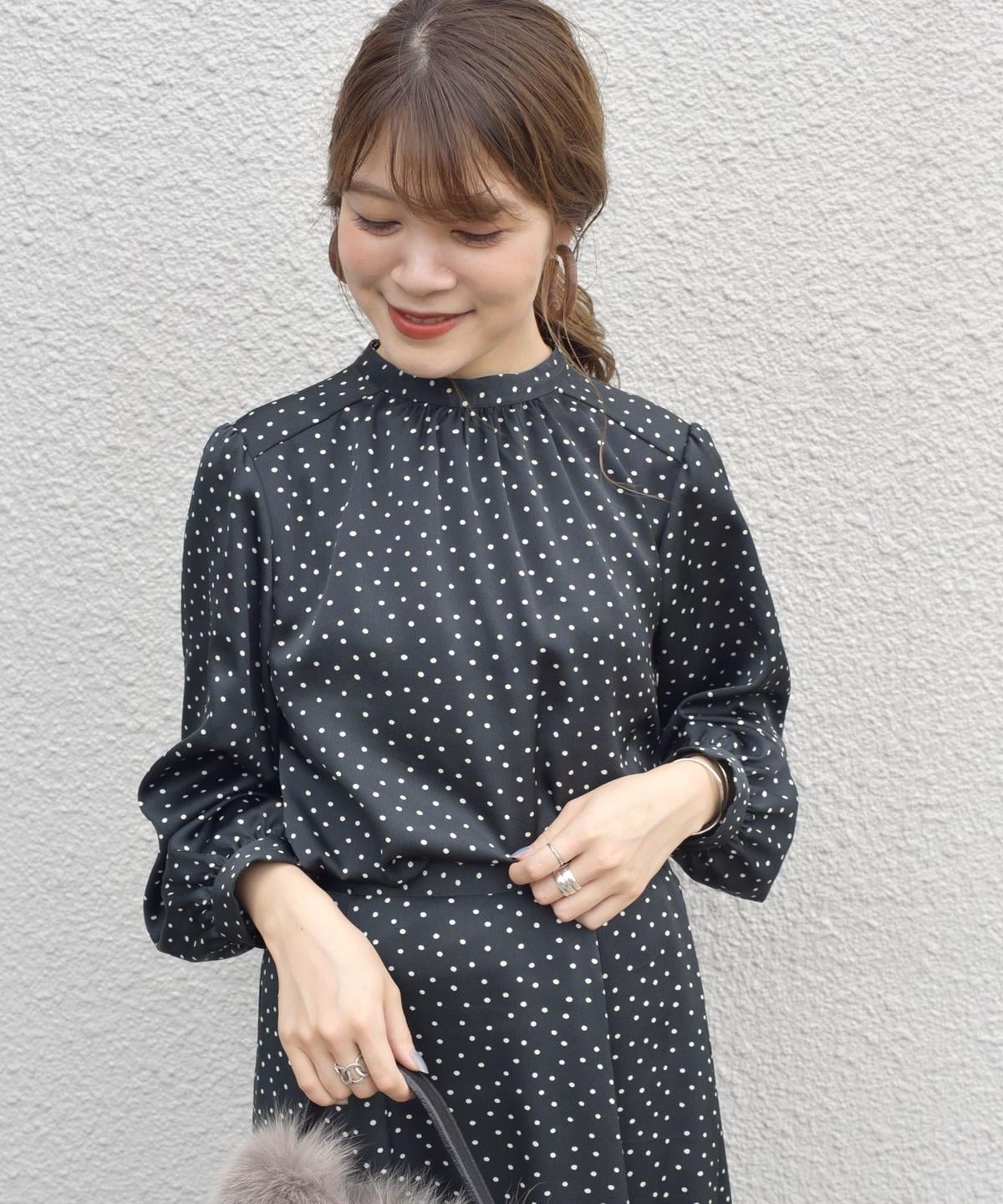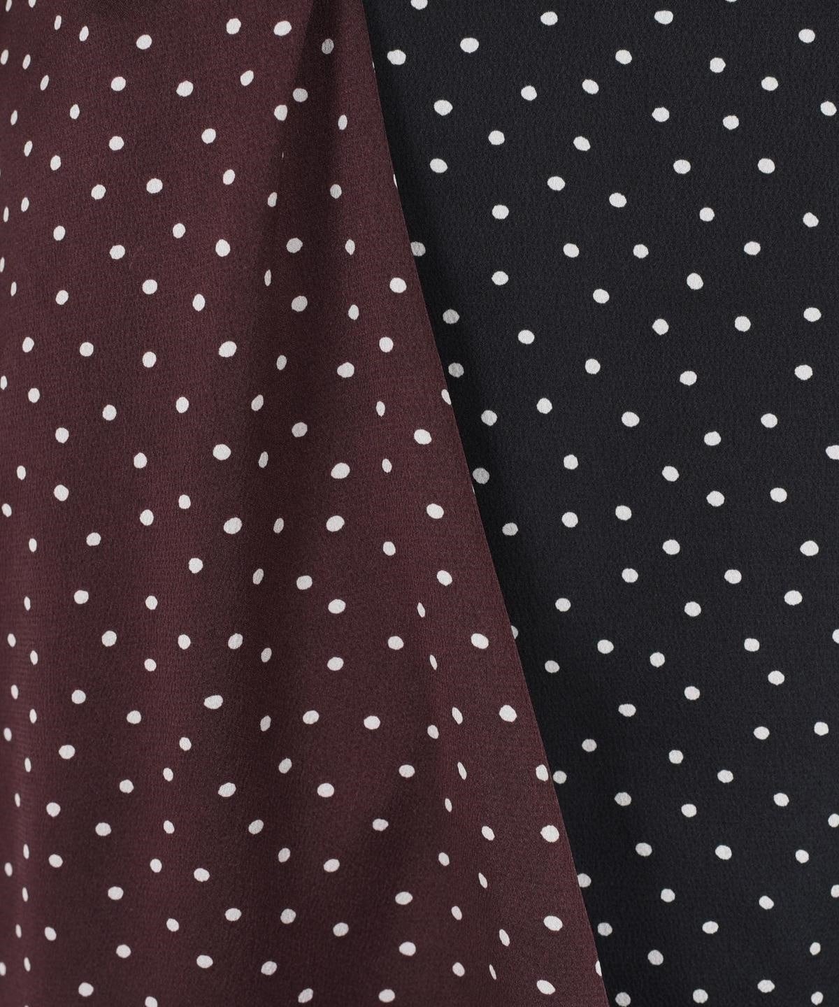 ドット柄ですが甘くなりすぎず、光沢のある生地で、上品な大人可愛い印象に。