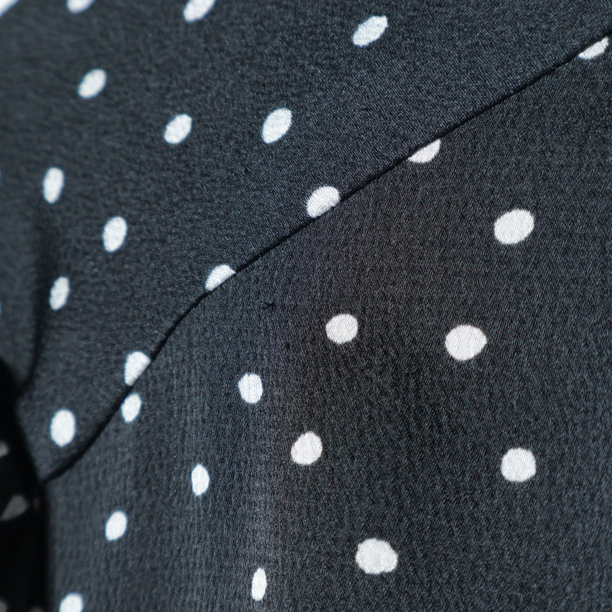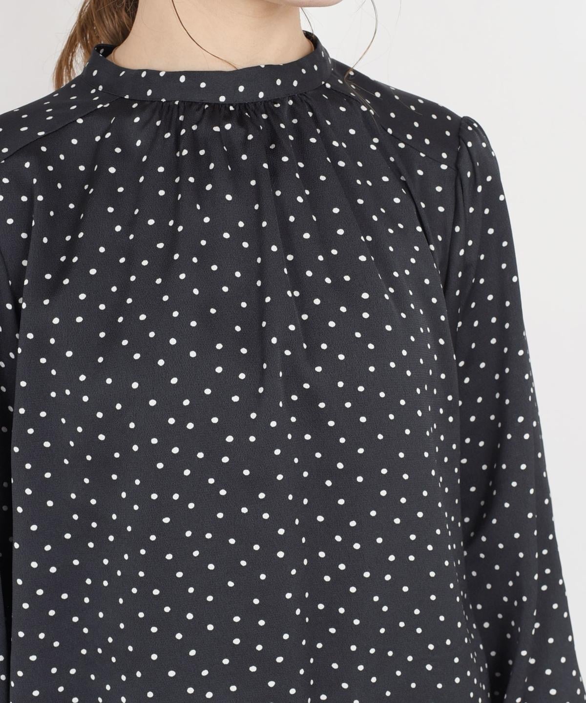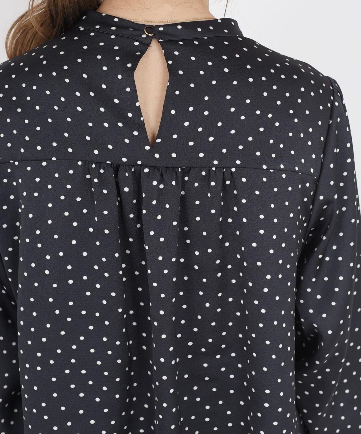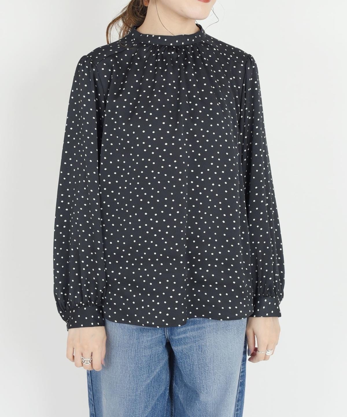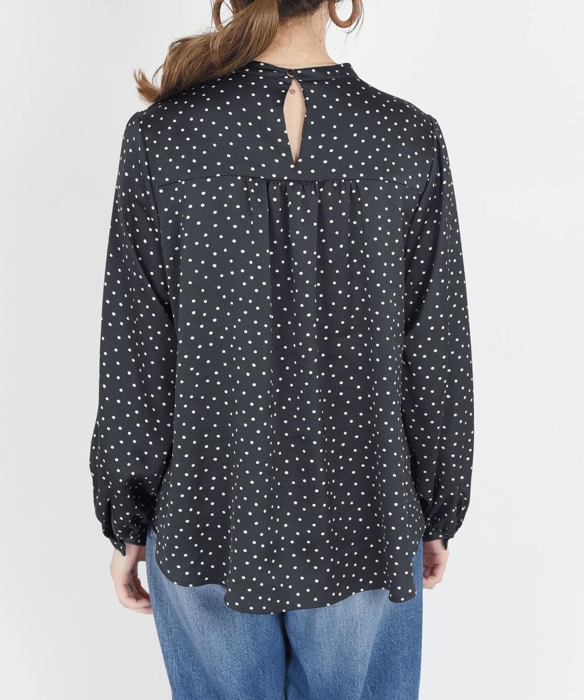 ドット柄ですが甘くなりすぎず、光沢のある生地で、上品な大人可愛い印象に。
