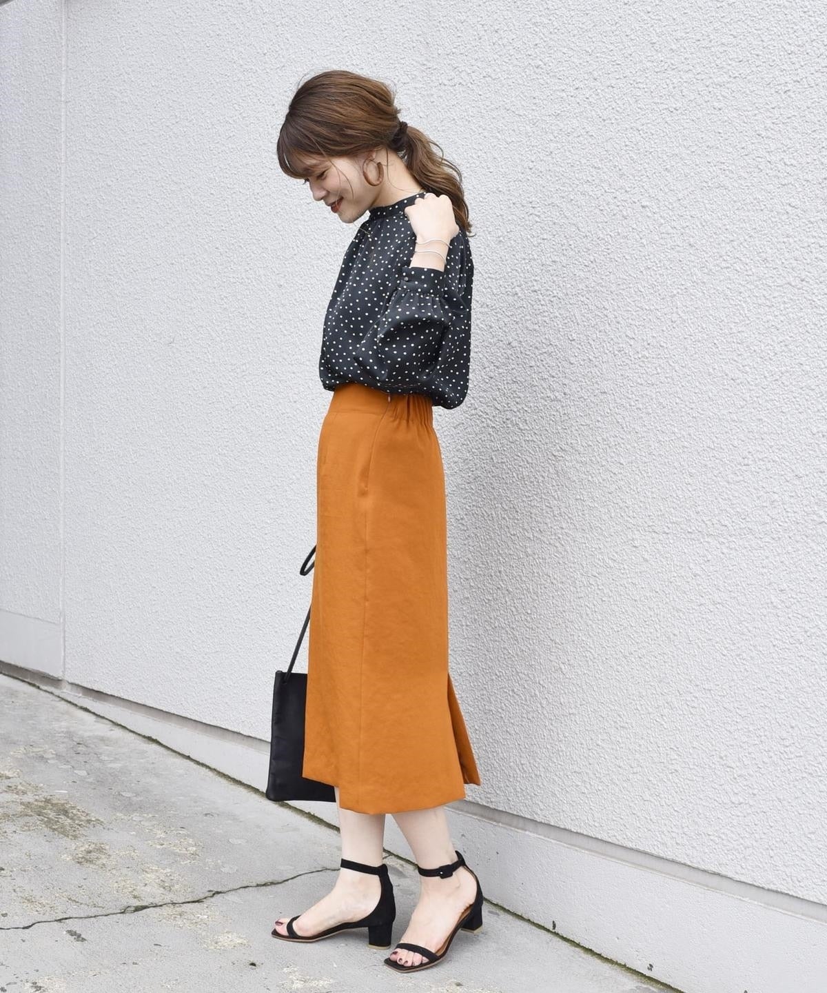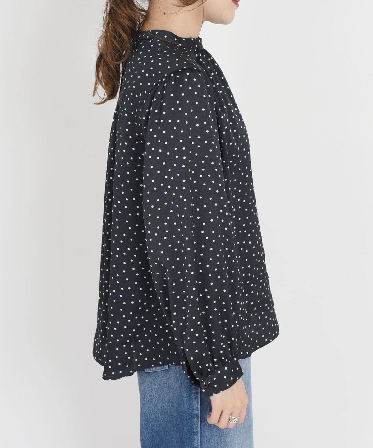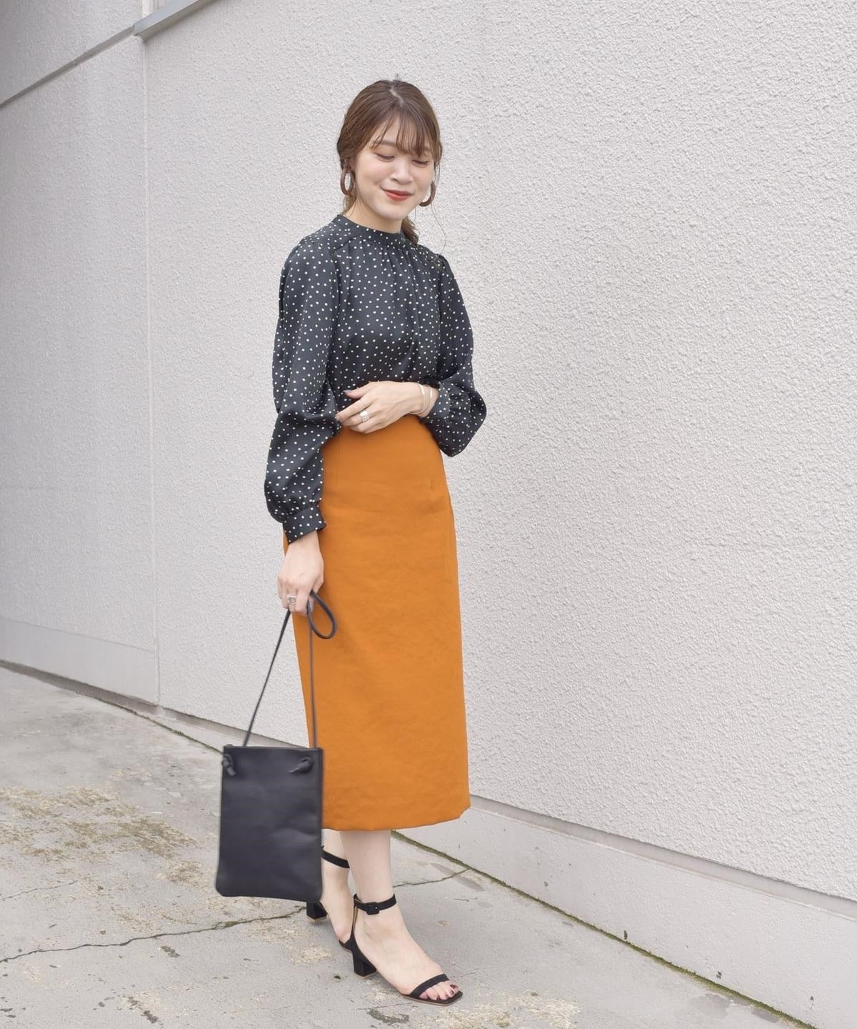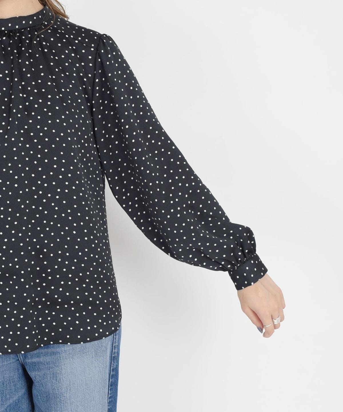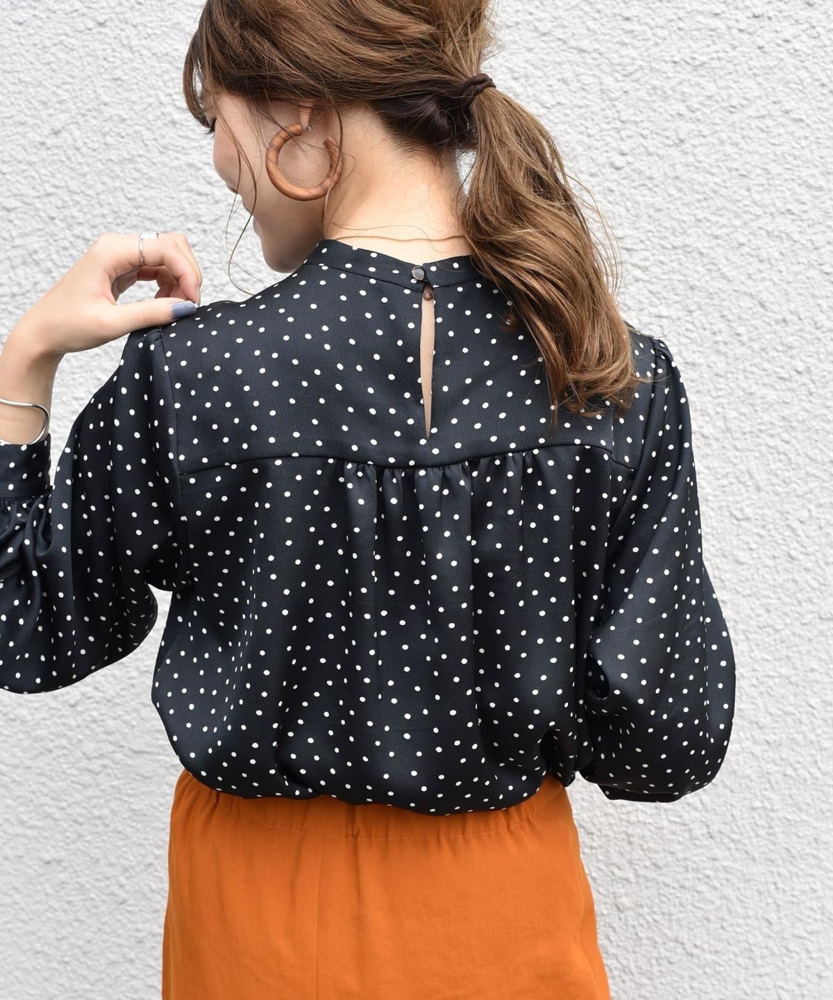 コメント:甘くなりすぎず、デニムなどカジュアルなアイテムにもあわせやすそうです。ドット柄ですが光沢があるので上品な印象です。