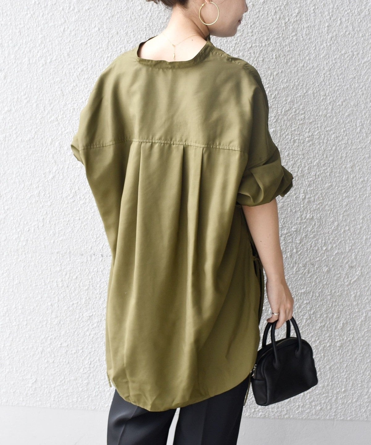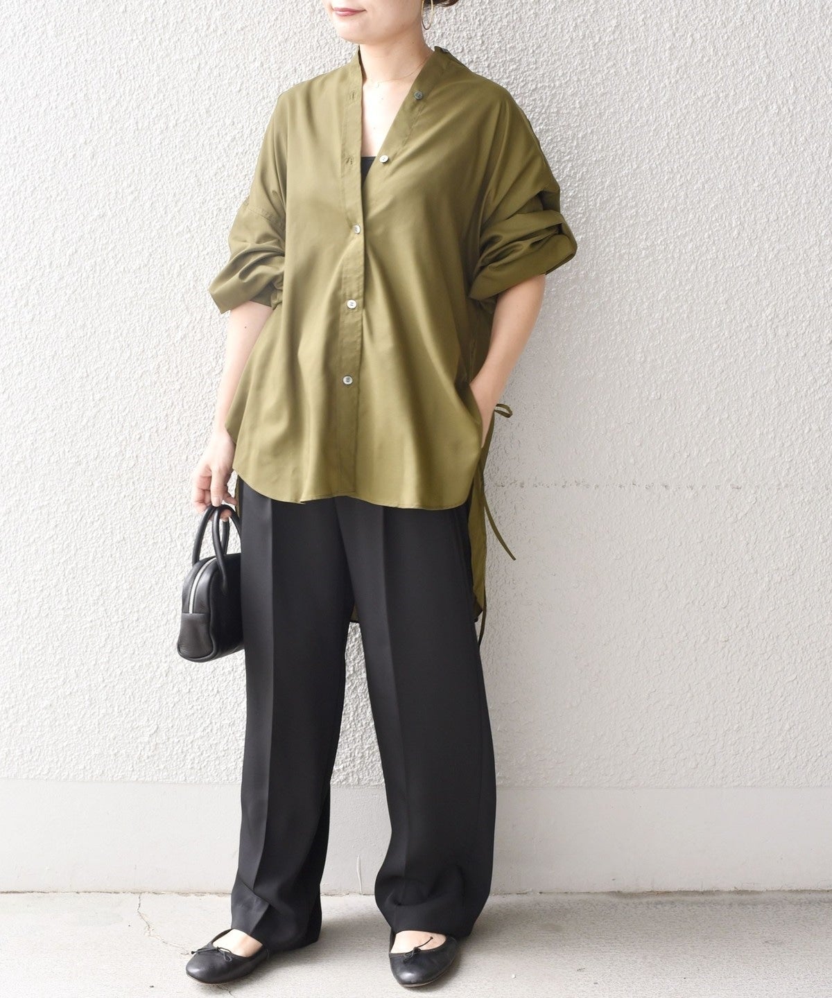 ドロップした袖とギャザーのボリューム感で、女性らしい抜け感ある着こなしをお楽しみ頂けます。