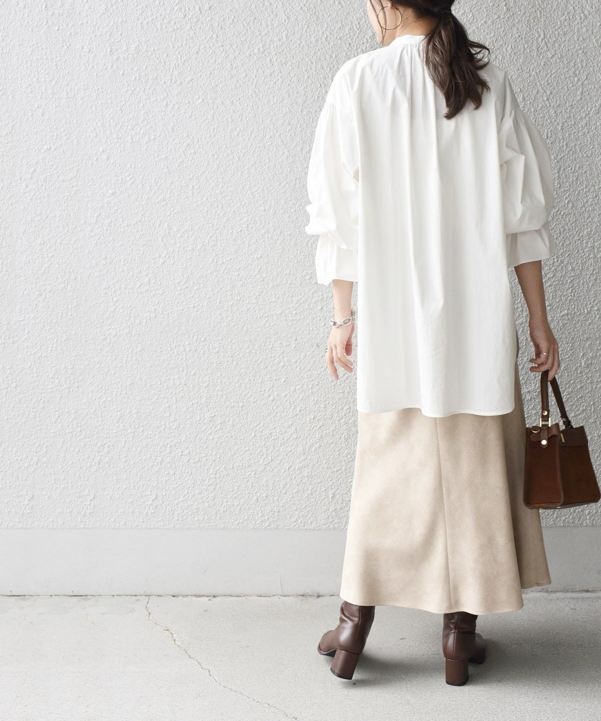 ウエストにインでもアウトでも、どちらでもきれいなシルエットで着用いただけます。