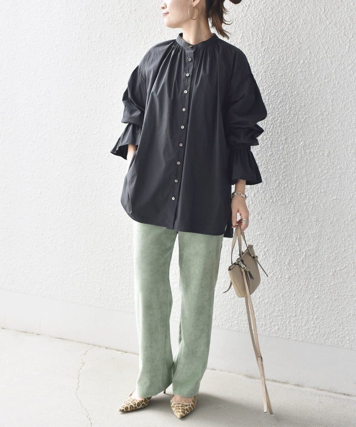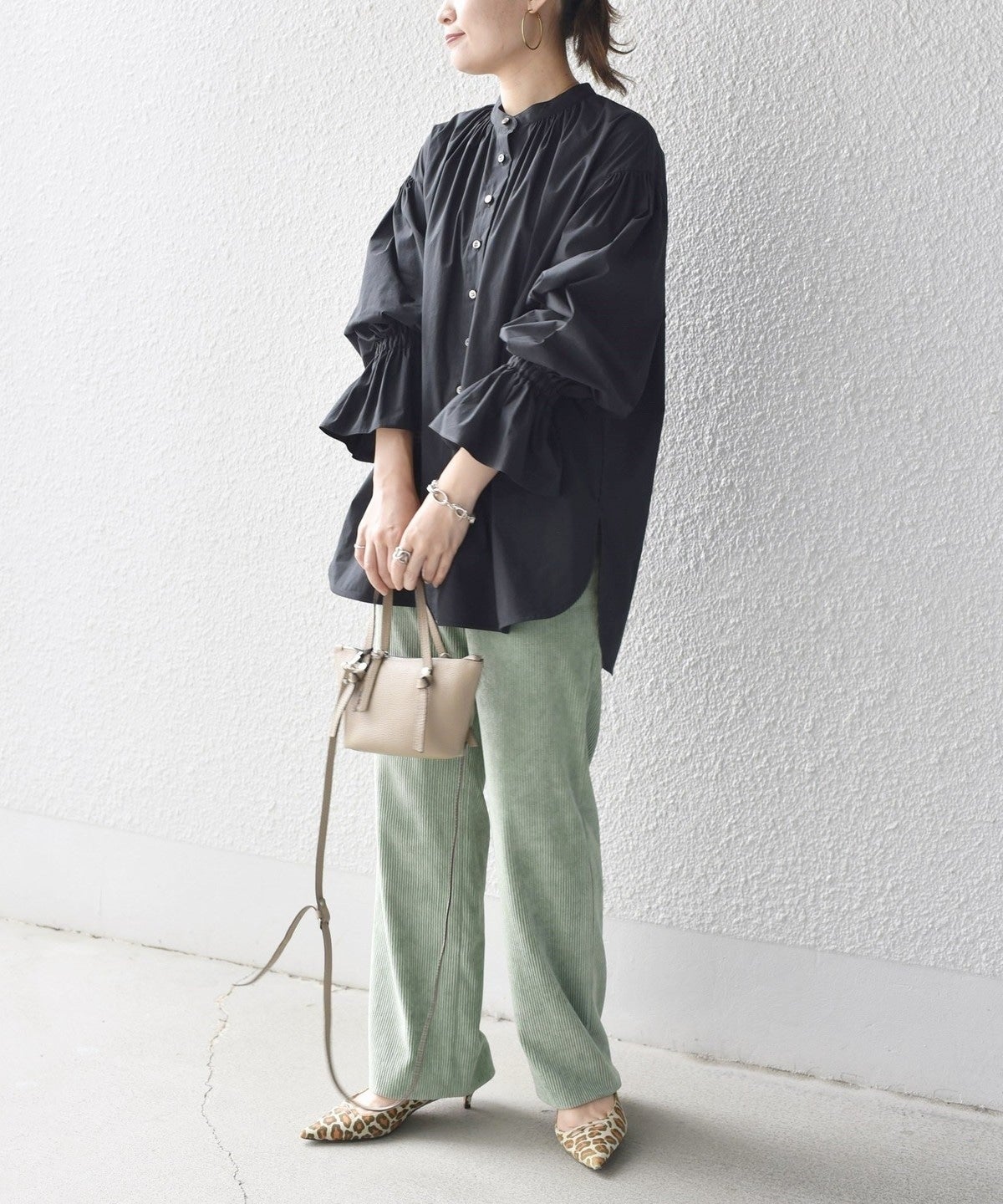 袖口はゴム仕様で、袖をたくし上げてボリュームのあるシルエットにするのがおすすめです。