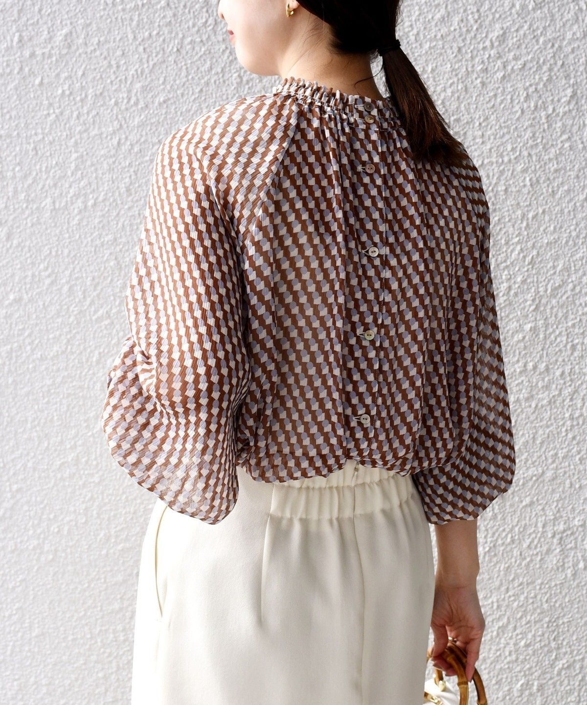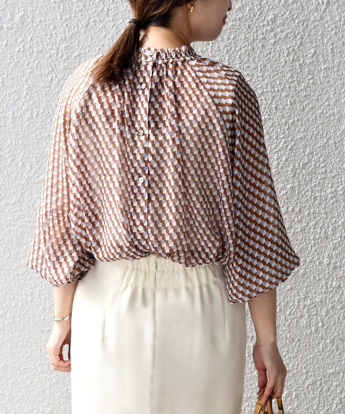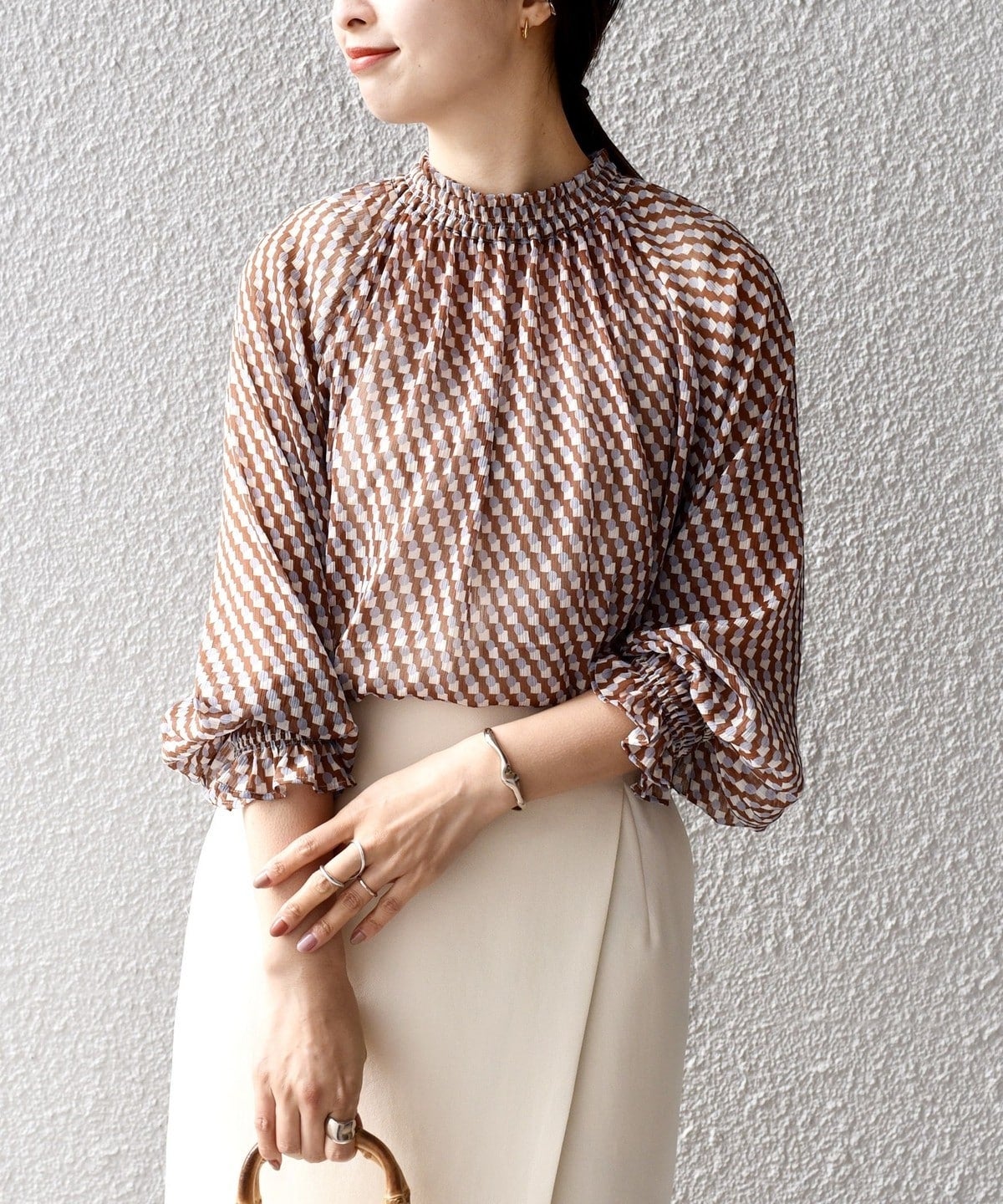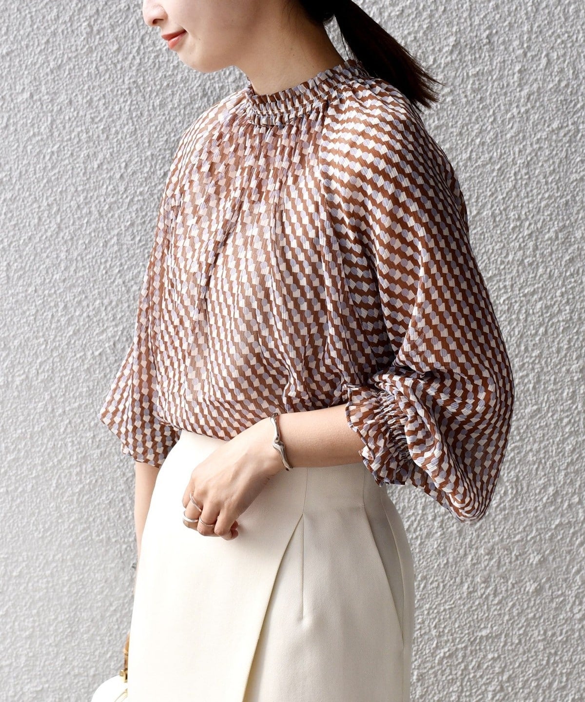 フランスのプリントメーカーSPRINTEX社のプリントを使用したギャザーブラウス。