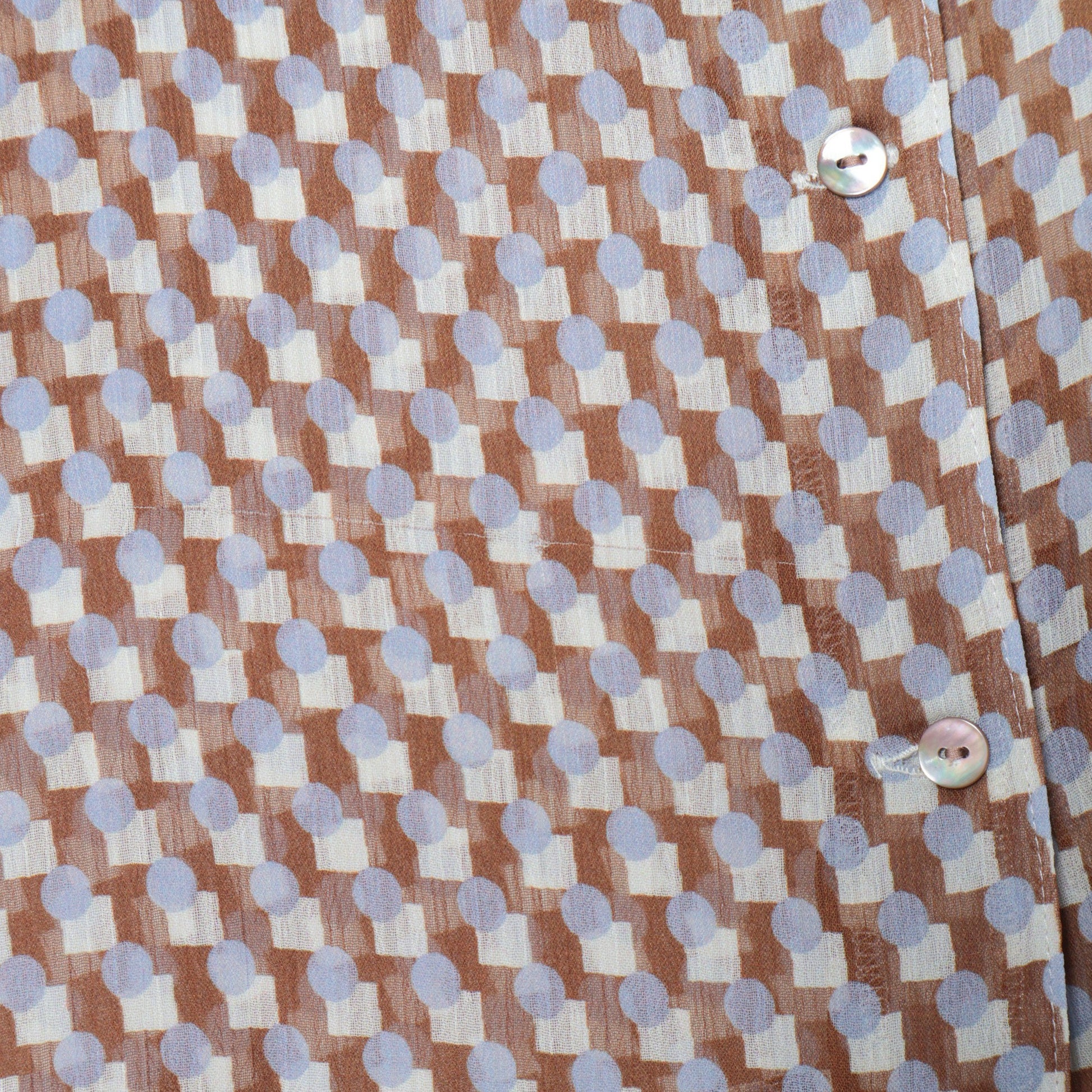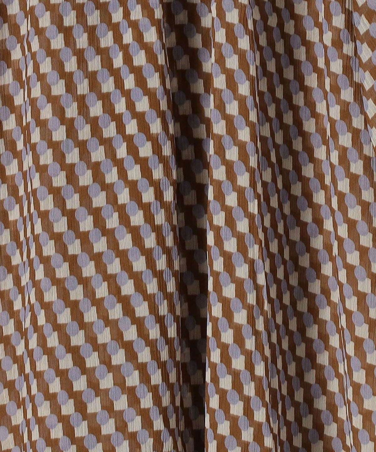 フェミニンなデザインと、レトロで細やかなジオメトリック柄が魅力の一着です。