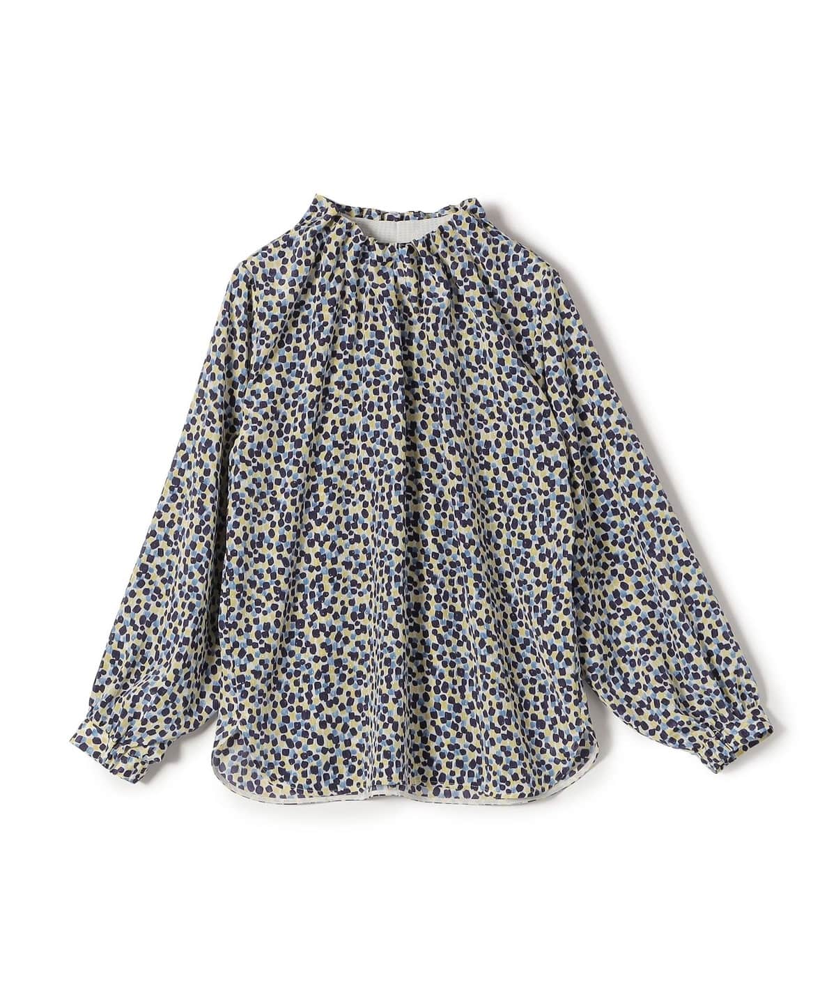 〈手洗い可能〉ネック ギャザー プリント 長袖 ブラウス 2(品番:311-15-0642)