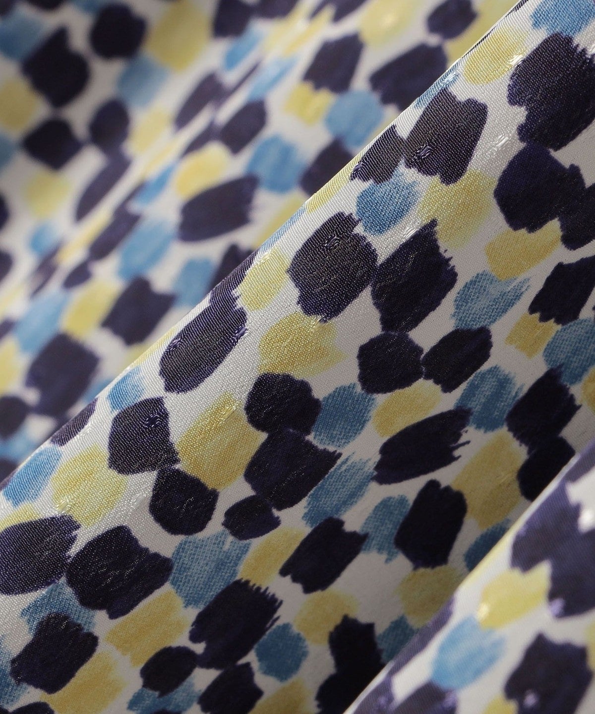 上品な光沢のあるドビー生地にオリジナルのプリントを施したポリエステル素材を使用。