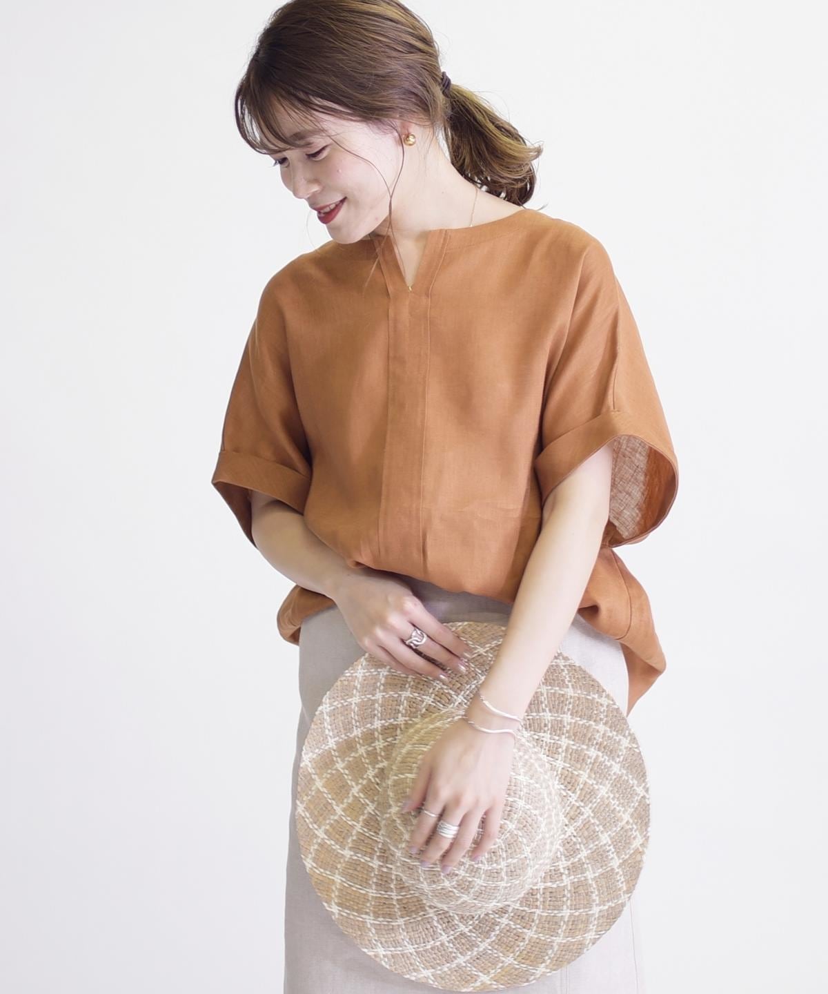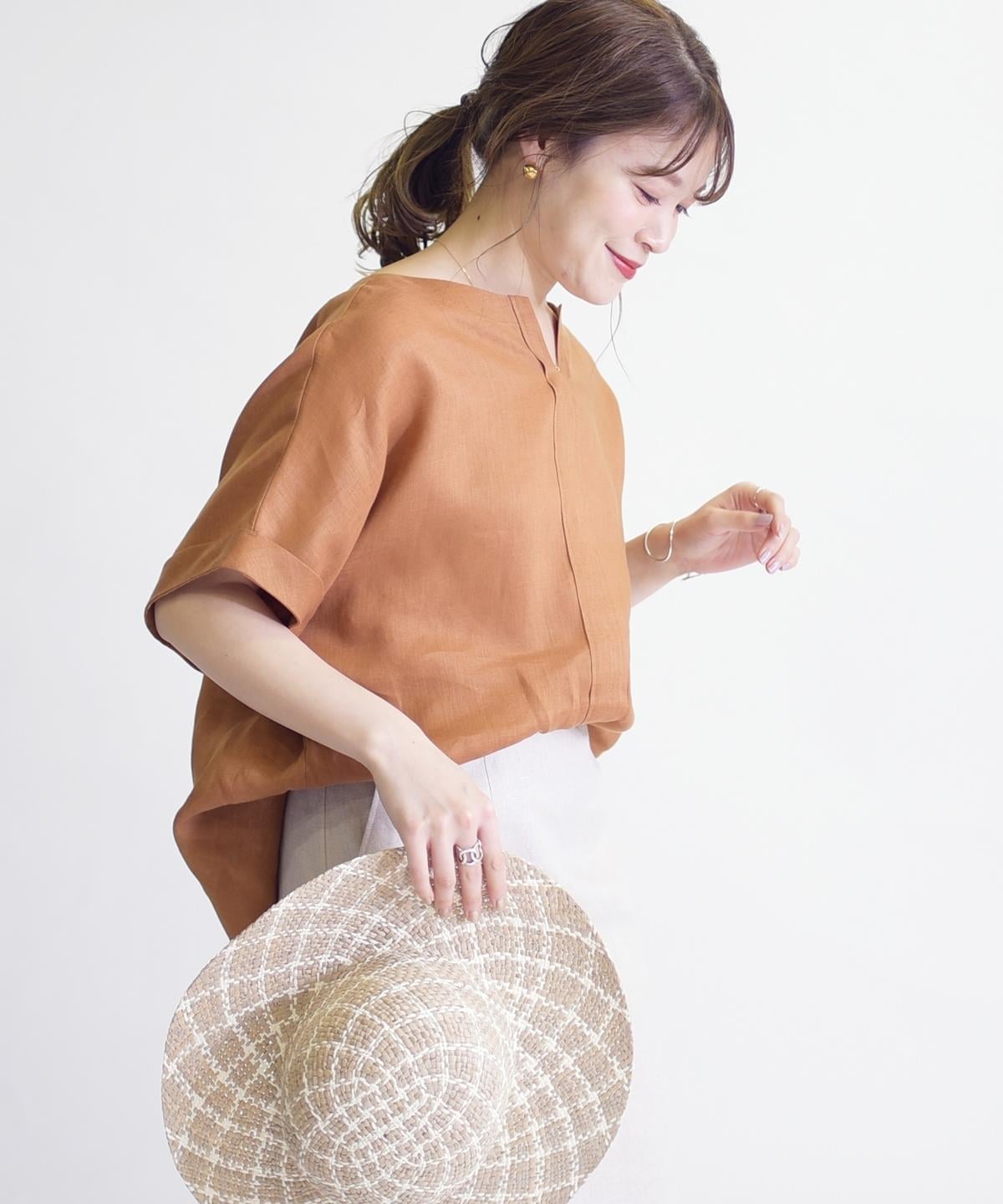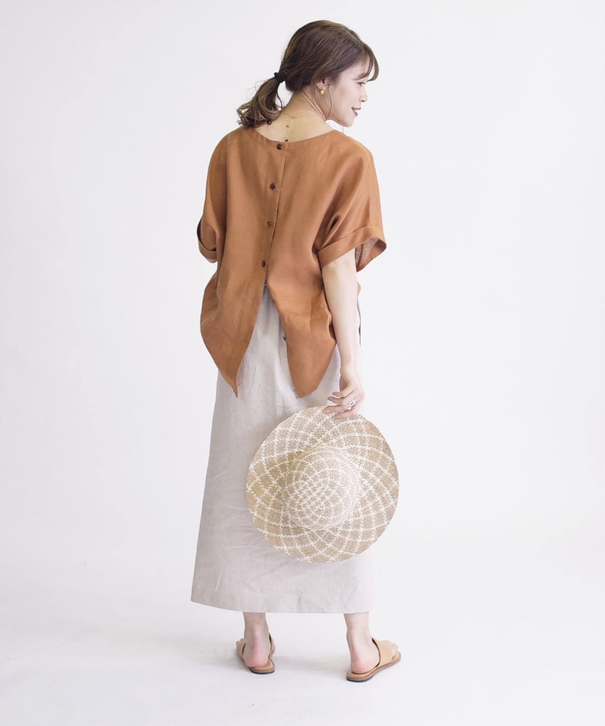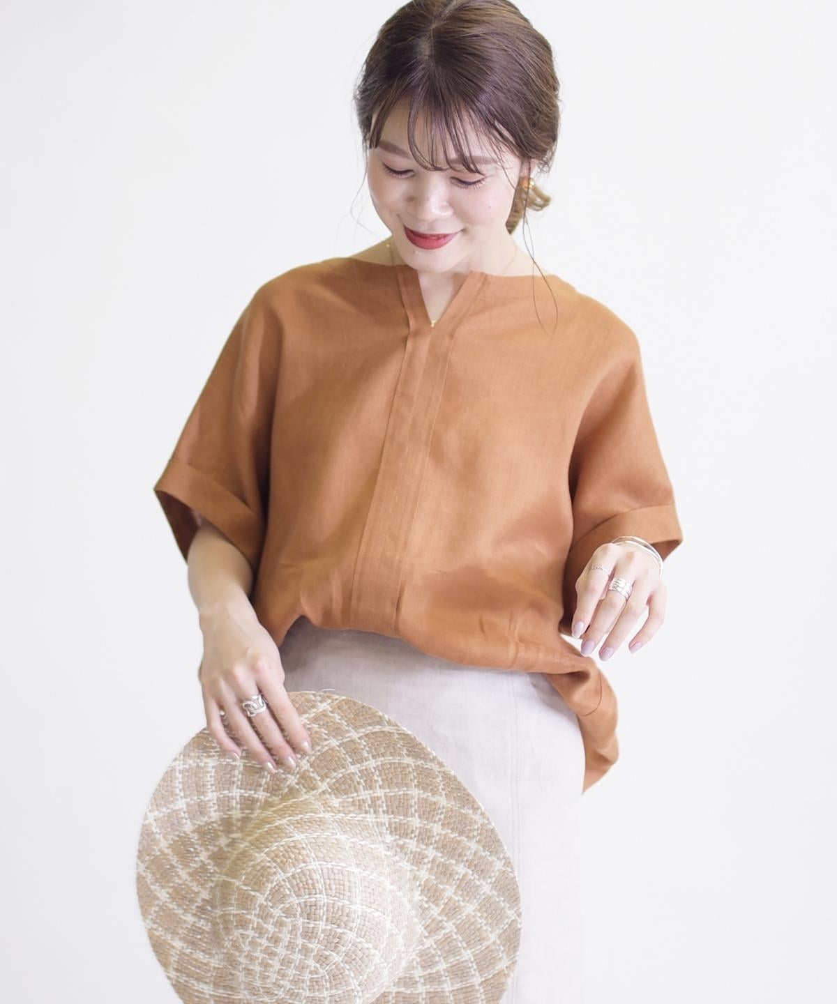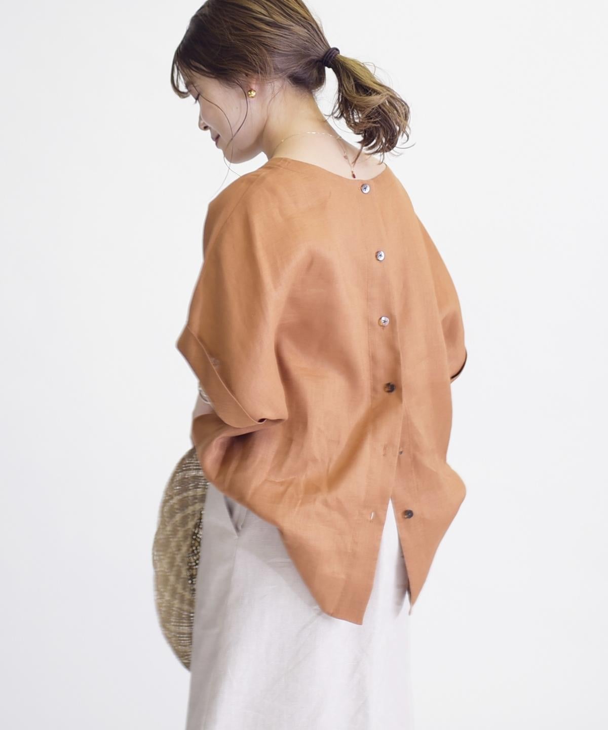 サラッとしたリネン素材が肌触りが良く、ホワイトは少し透け感があるので、インナーに変化をもたせても楽しめそう♪