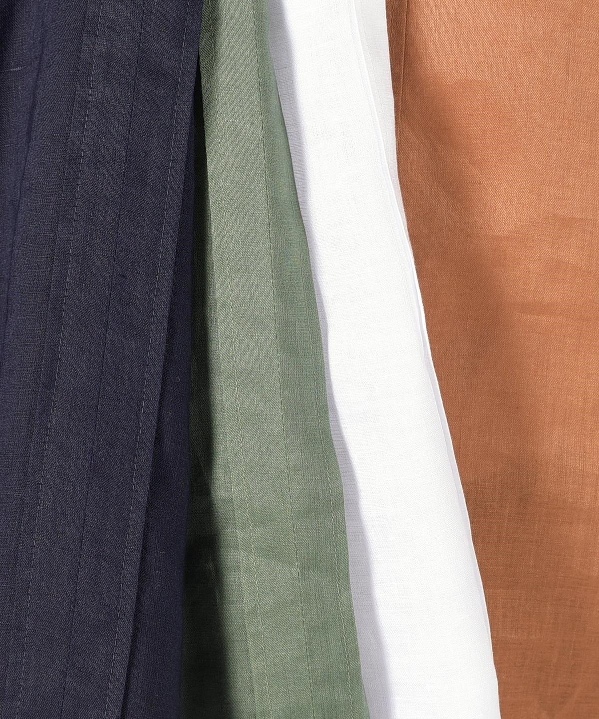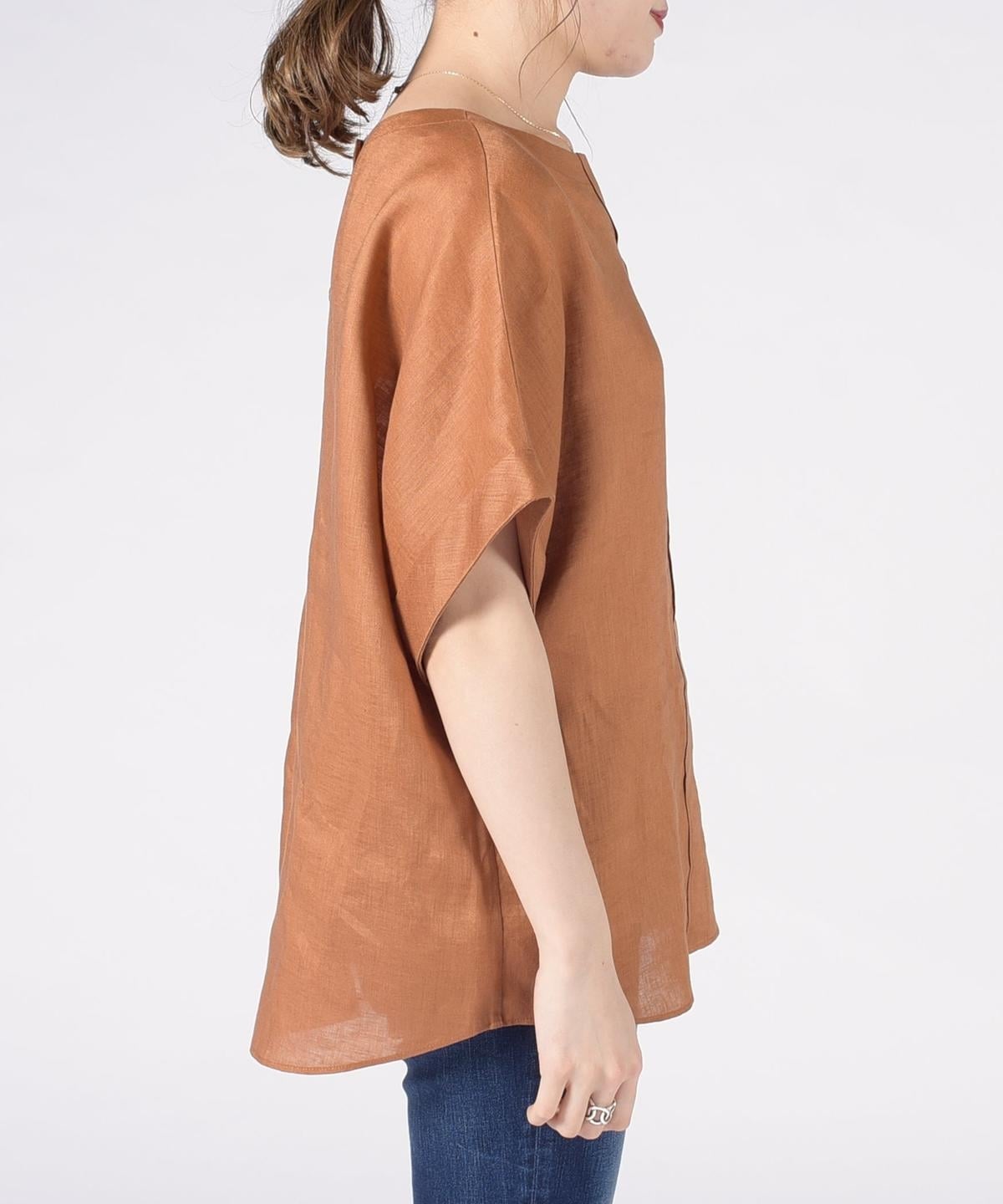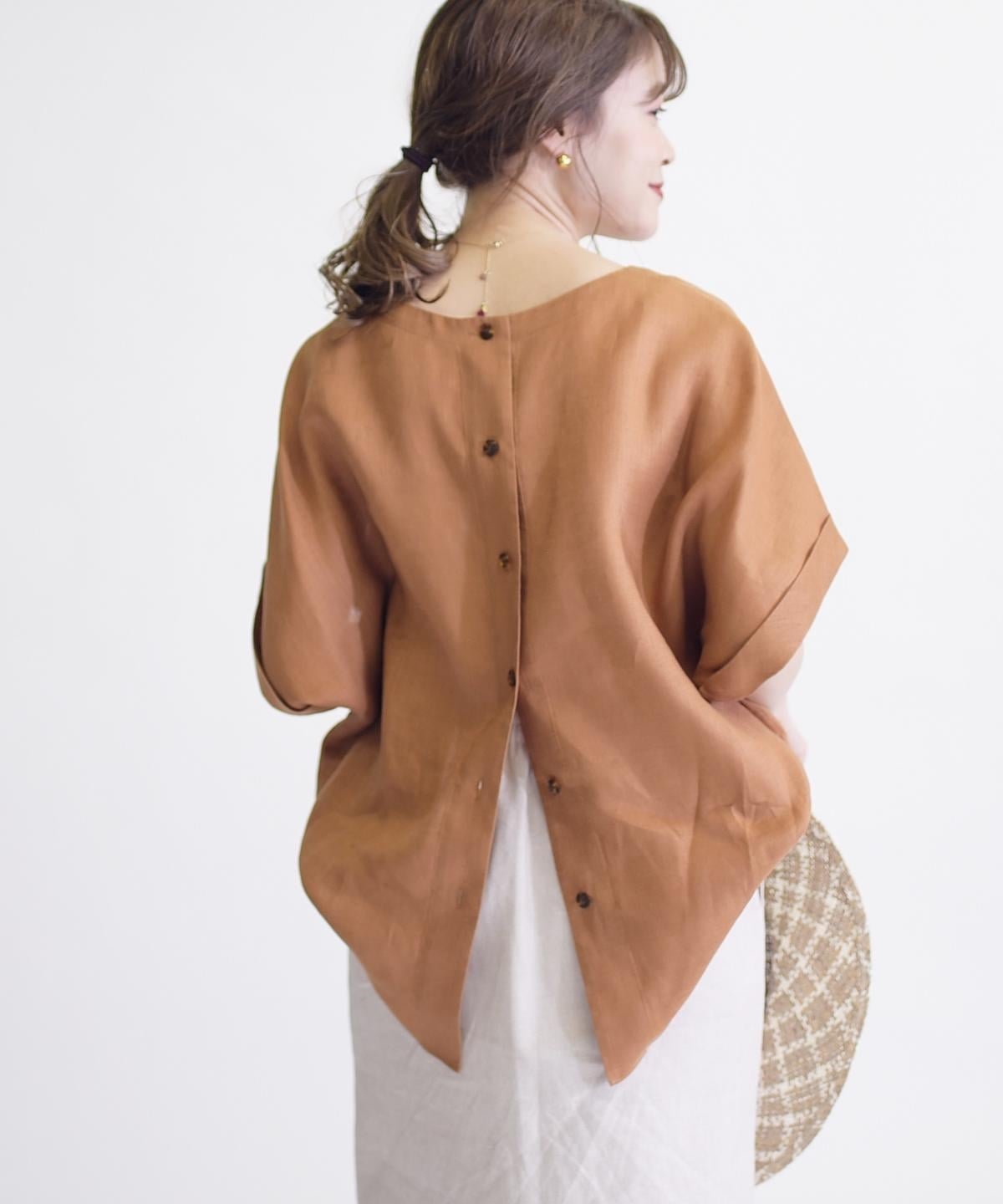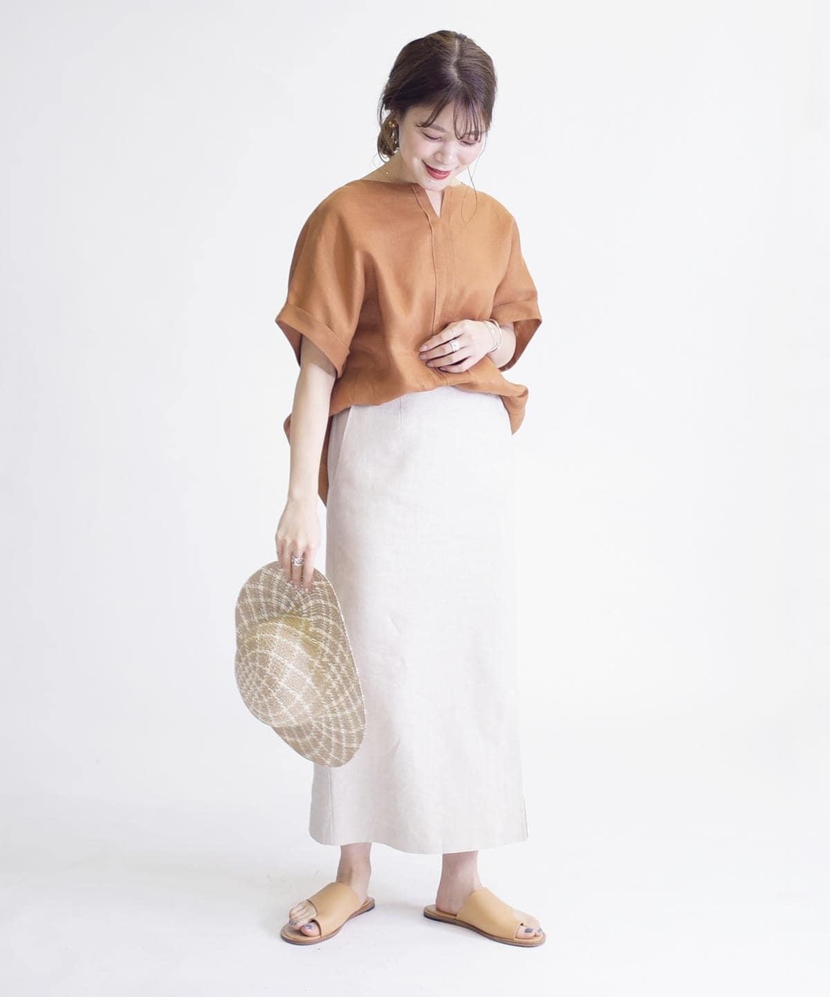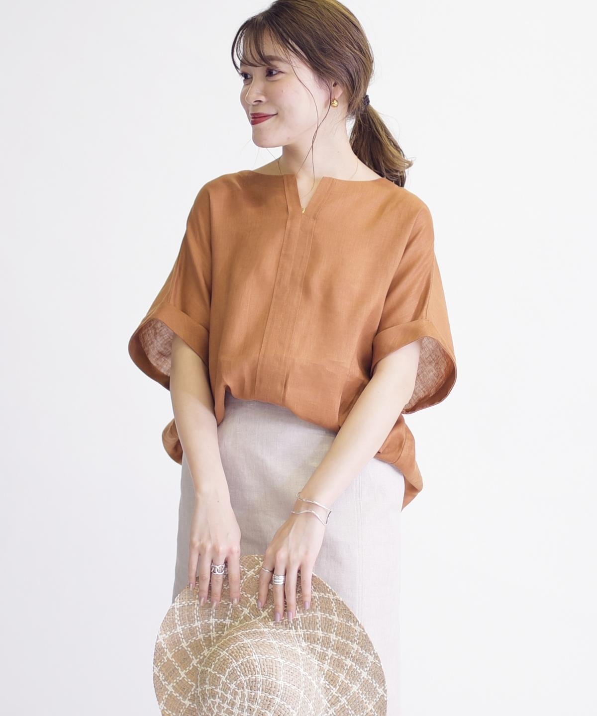 サラッとしたリネン素材が肌触りが良く、ホワイトは少し透け感があるので、インナーに変化をもたせても楽しめそう♪