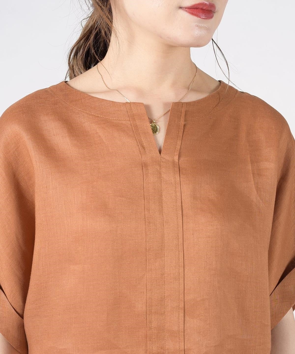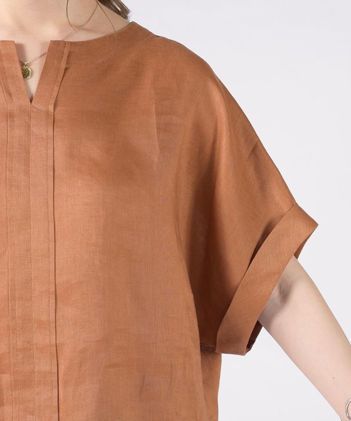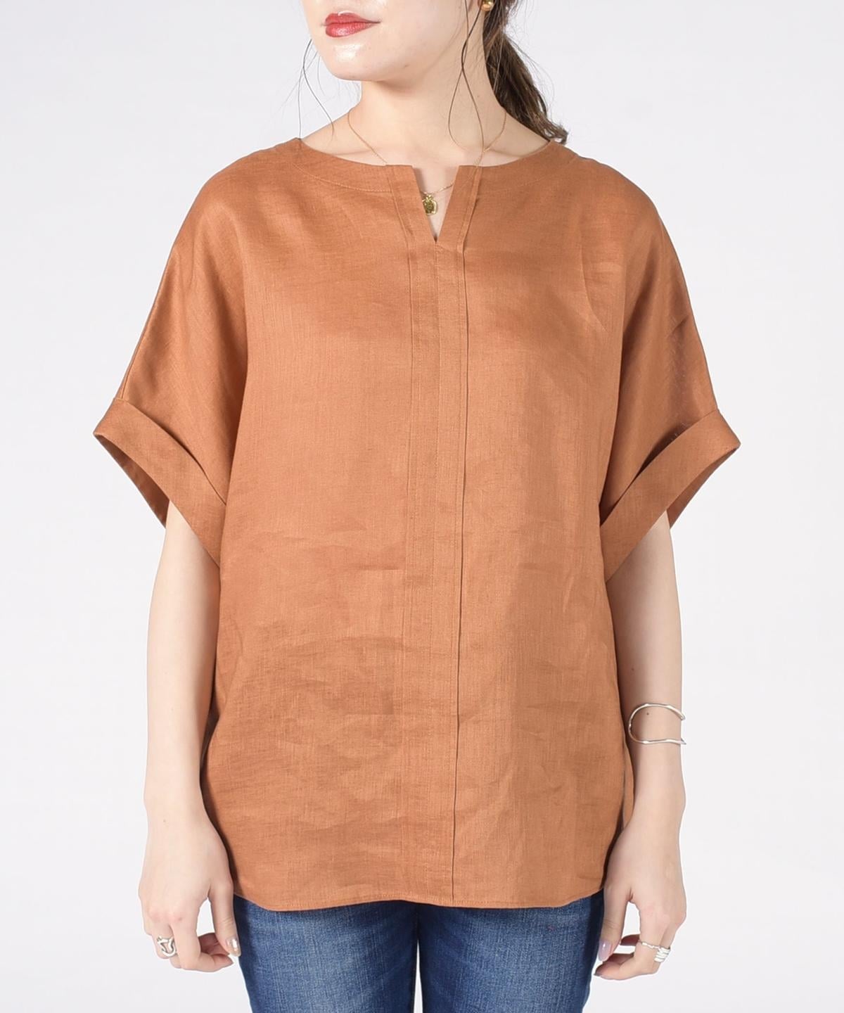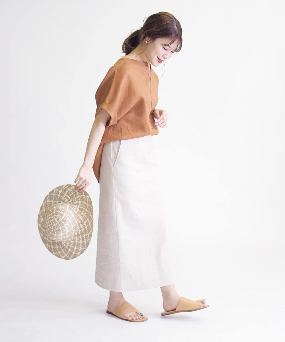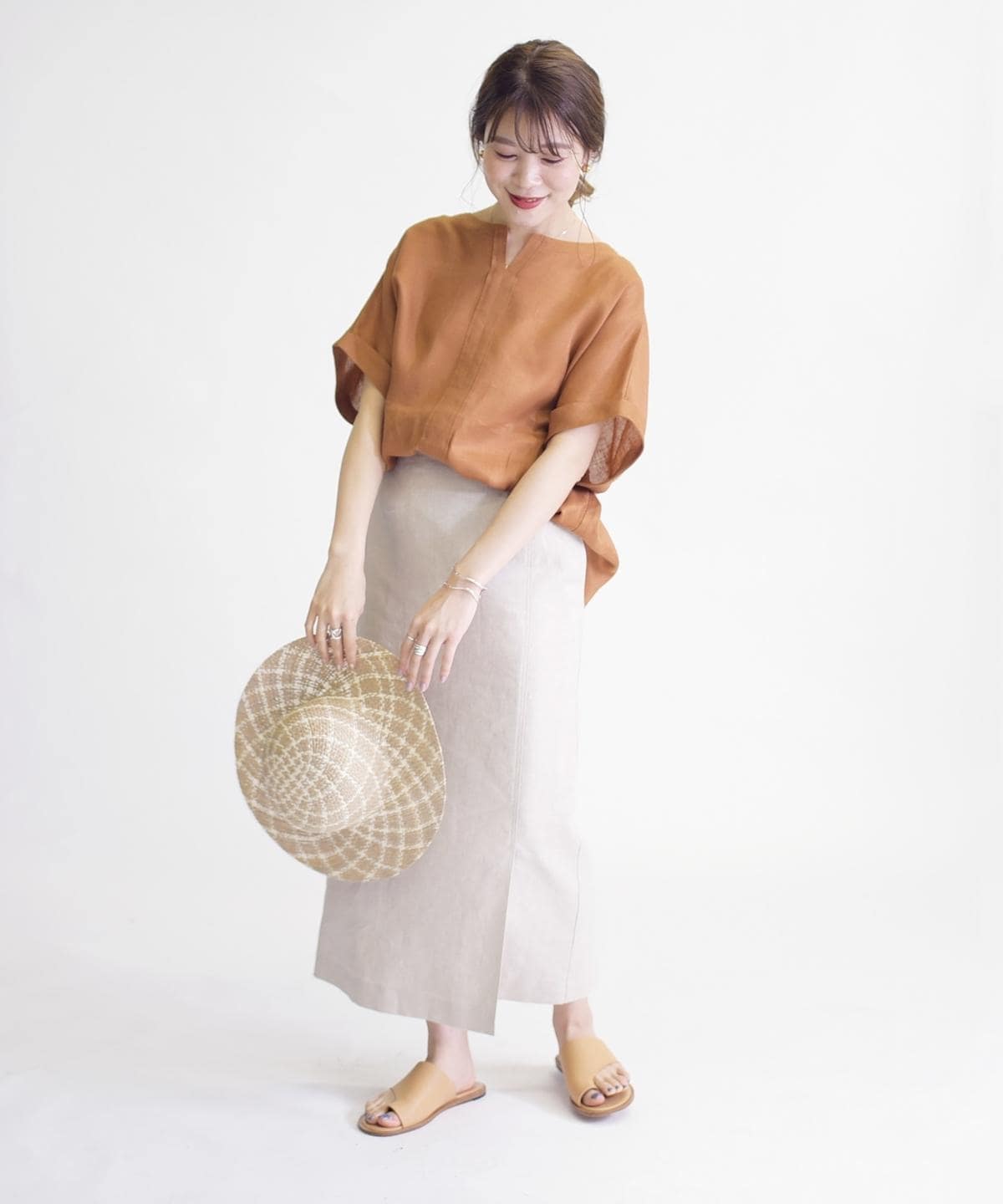 サラッとしたリネン素材が肌触りが良く、ホワイトは少し透け感があるので、インナーに変化をもたせても楽しめそう♪
