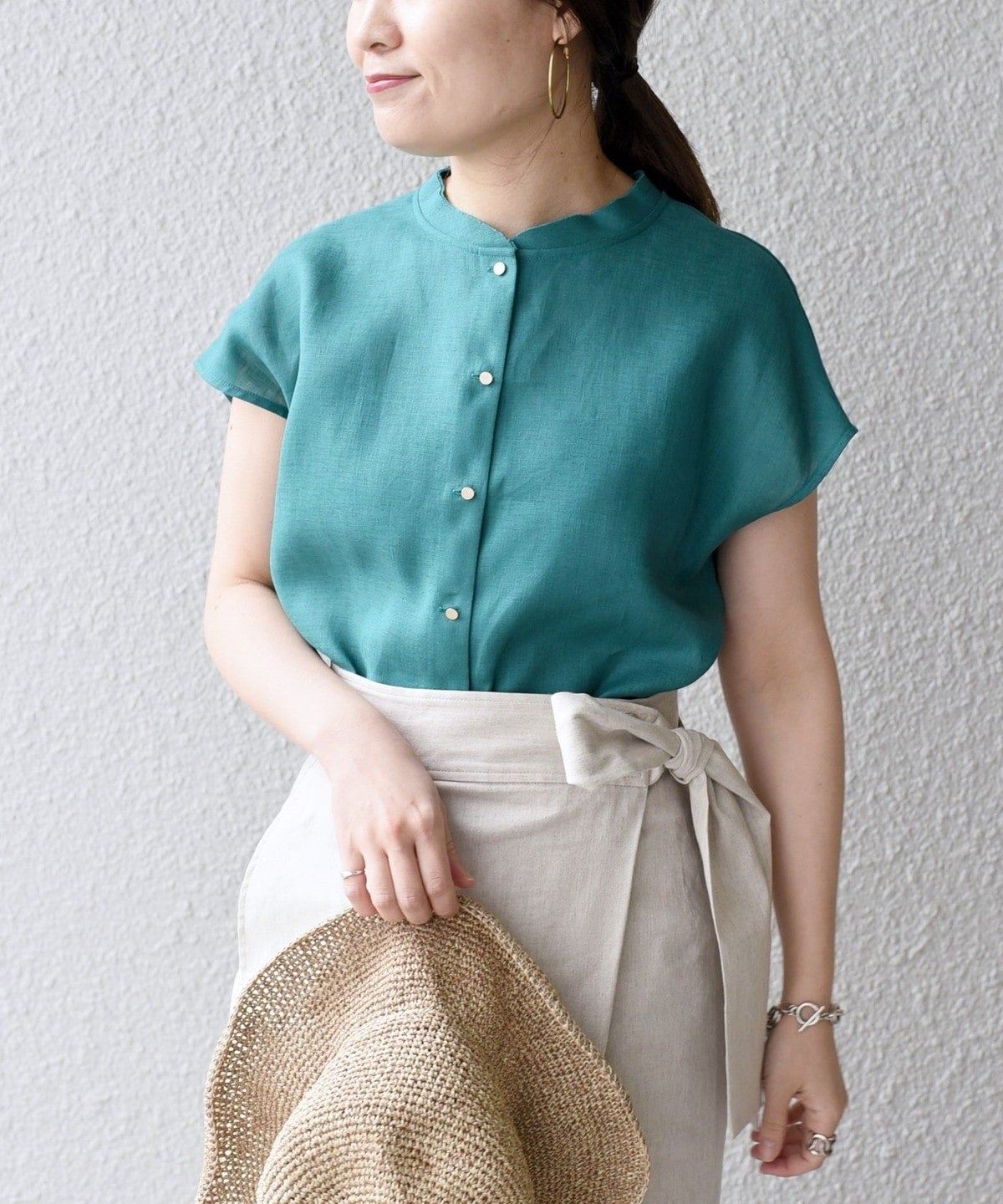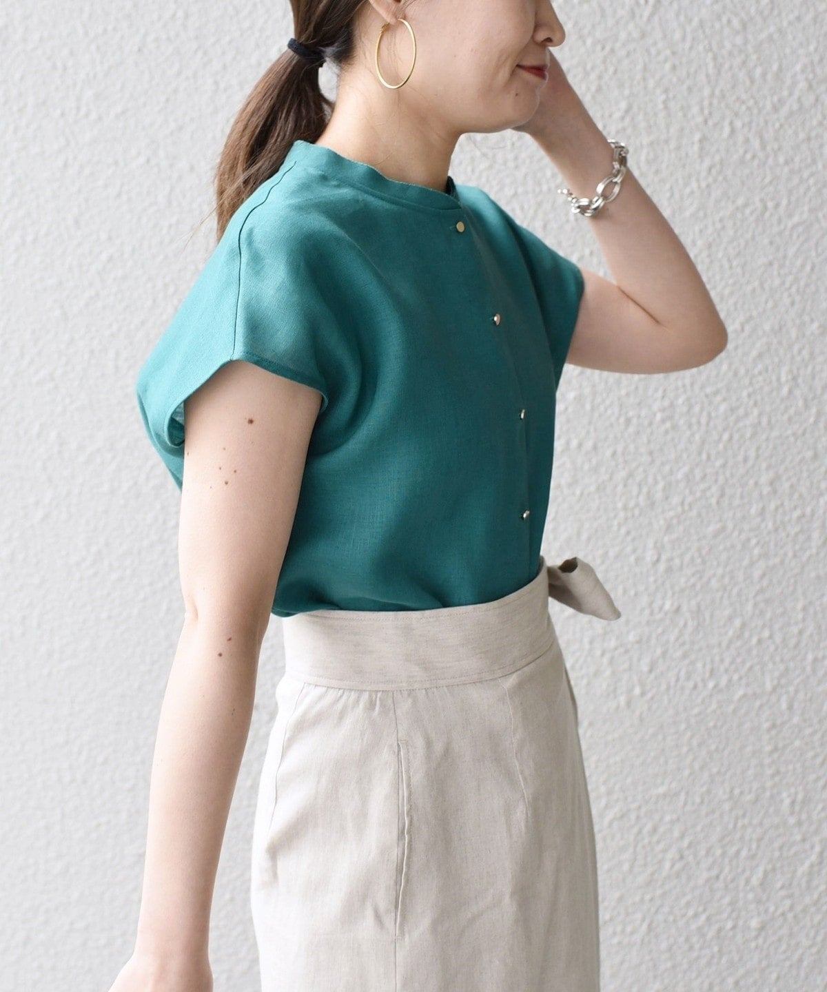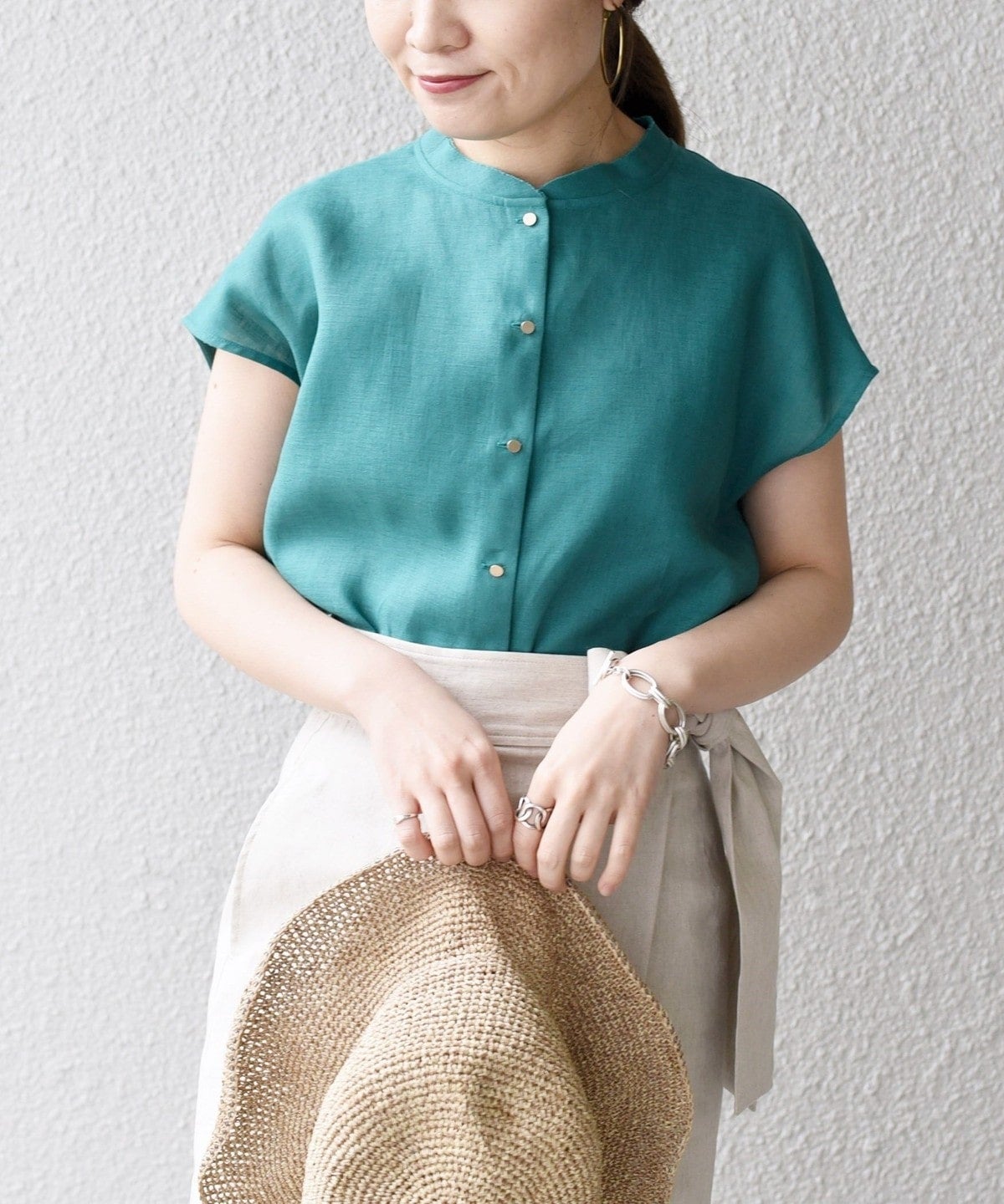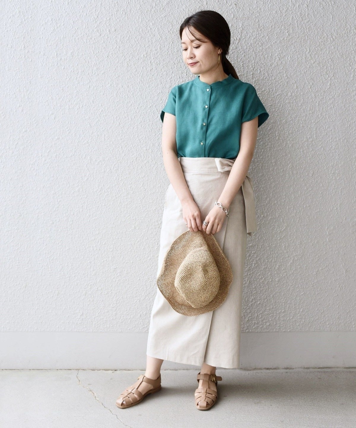 麻特有のシワ感がなく、着るたびに馴染んでいくのをお楽しみいただける素材です。