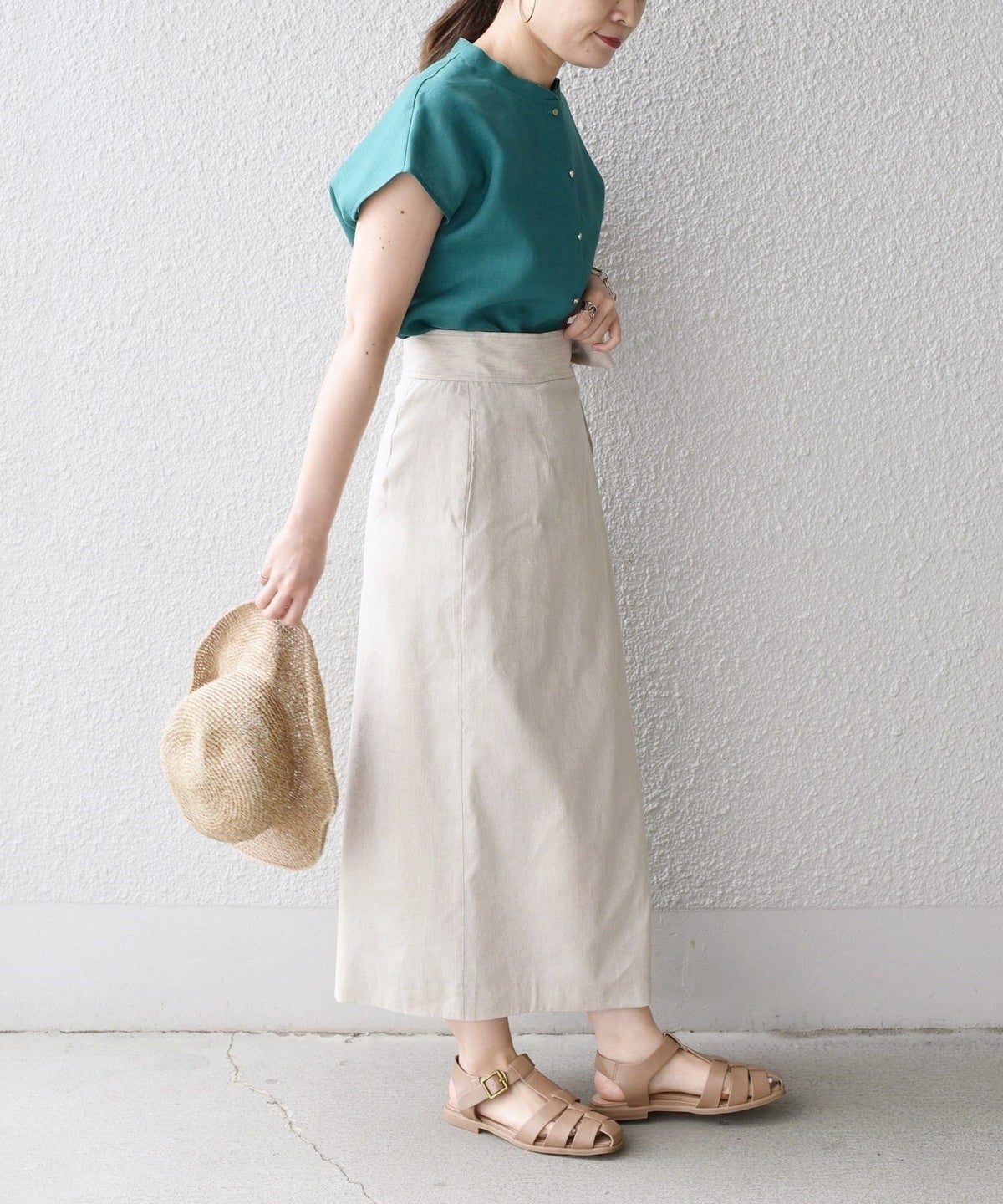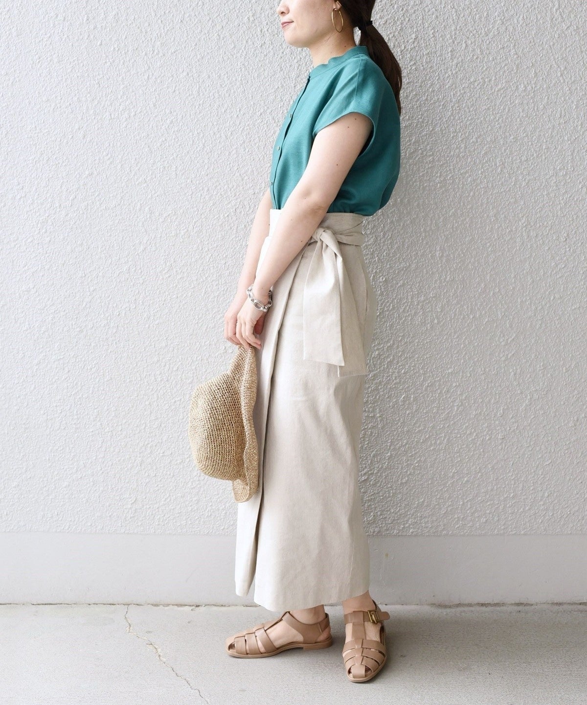 カジュアルテイストな麻素材ではなく、キレイ見えするさらっとした素材なので、普段使いからお仕事まで幅広くマッチします。