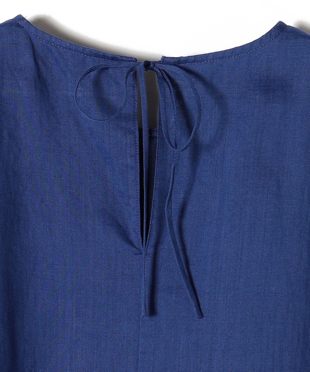 後開きは共布の細い華奢なリボンが施され、後ろ姿も可愛らしい印象になっています。