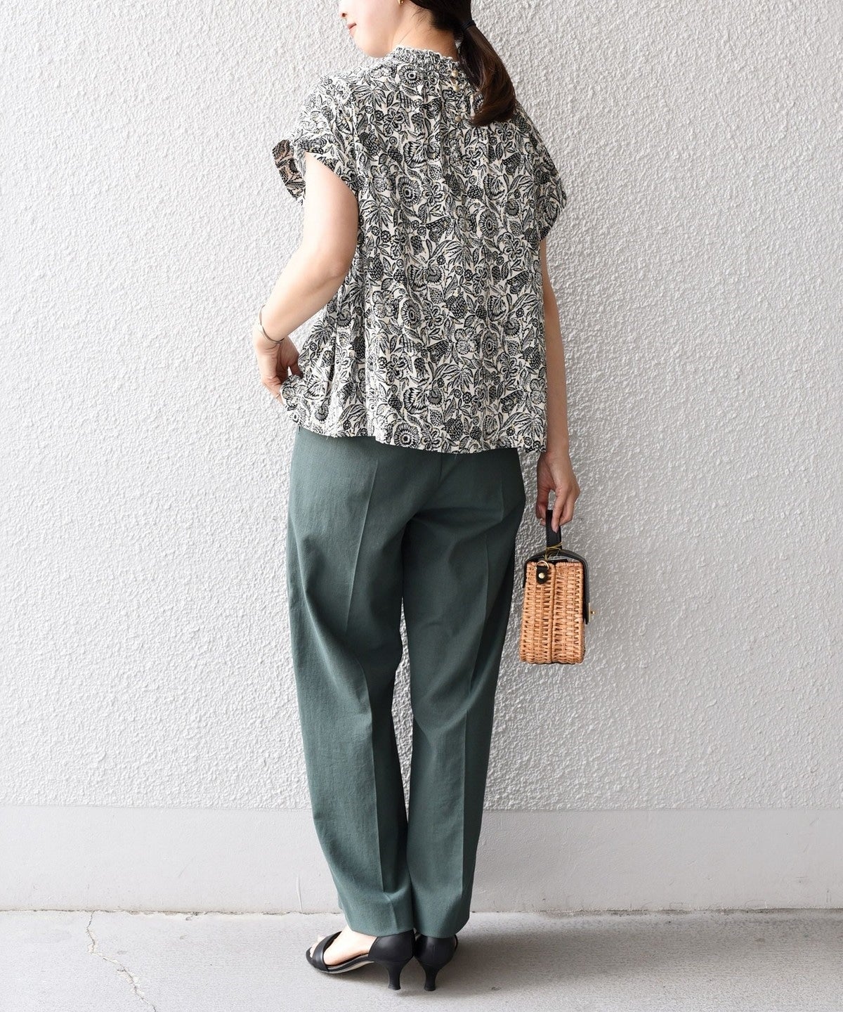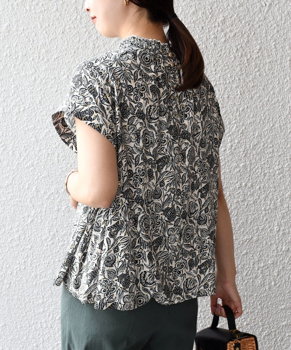 レーヨン生地で柔らかく、袖下にはタックを入れて立体感を演出。