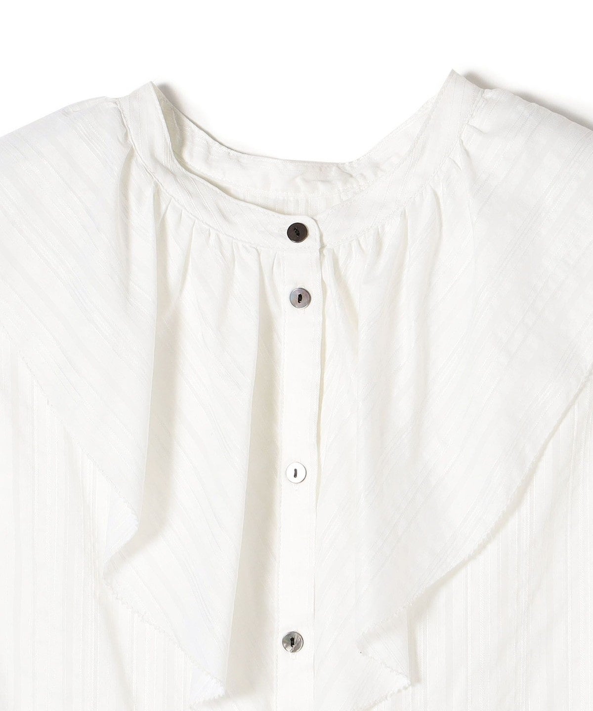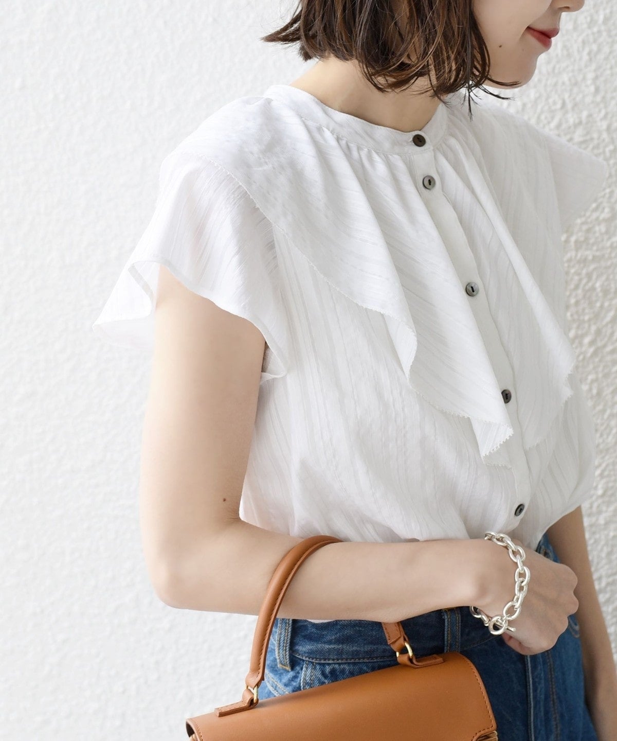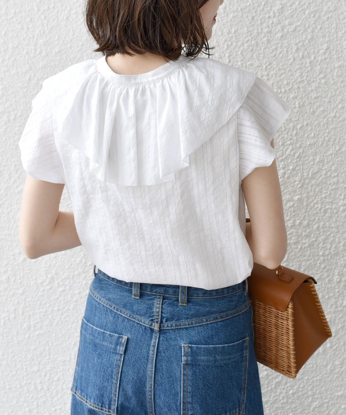 〈手洗い可能〉ドビー ストライプ フリル ラッフル ブラウス