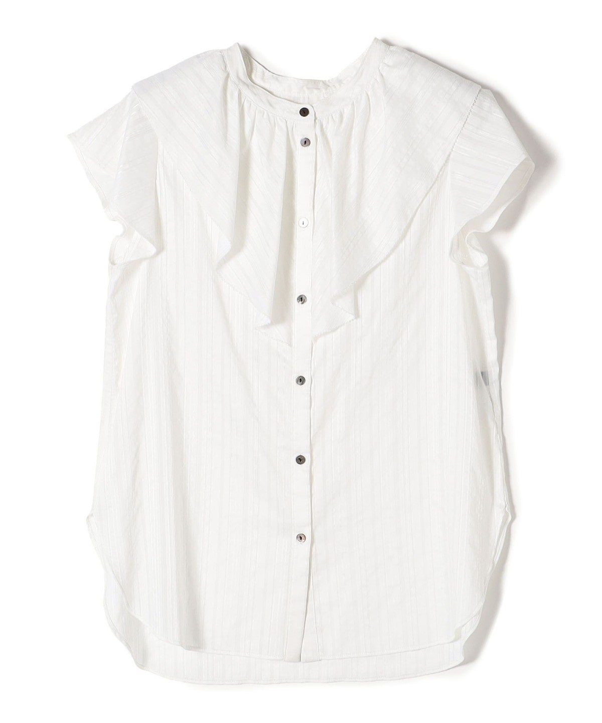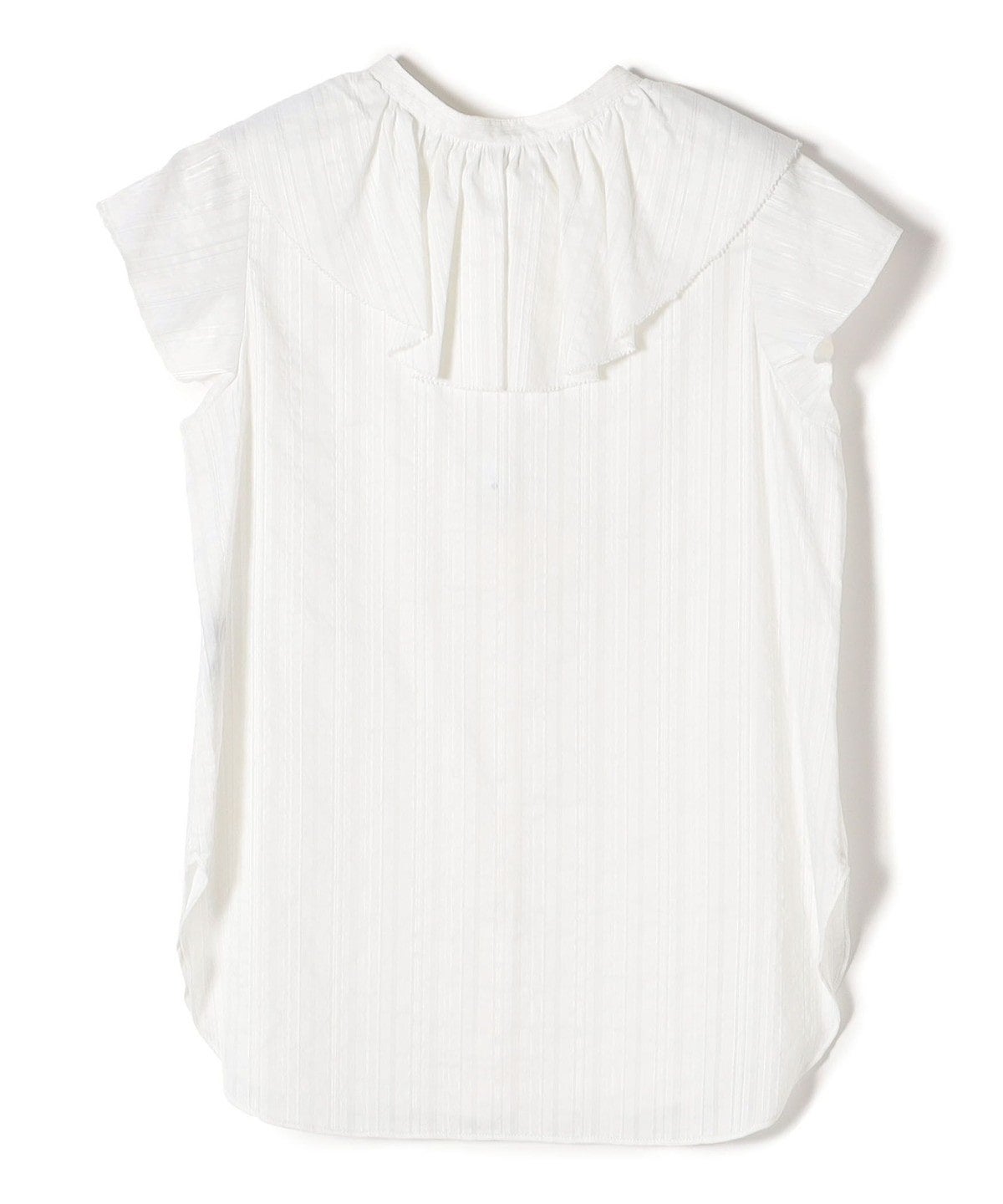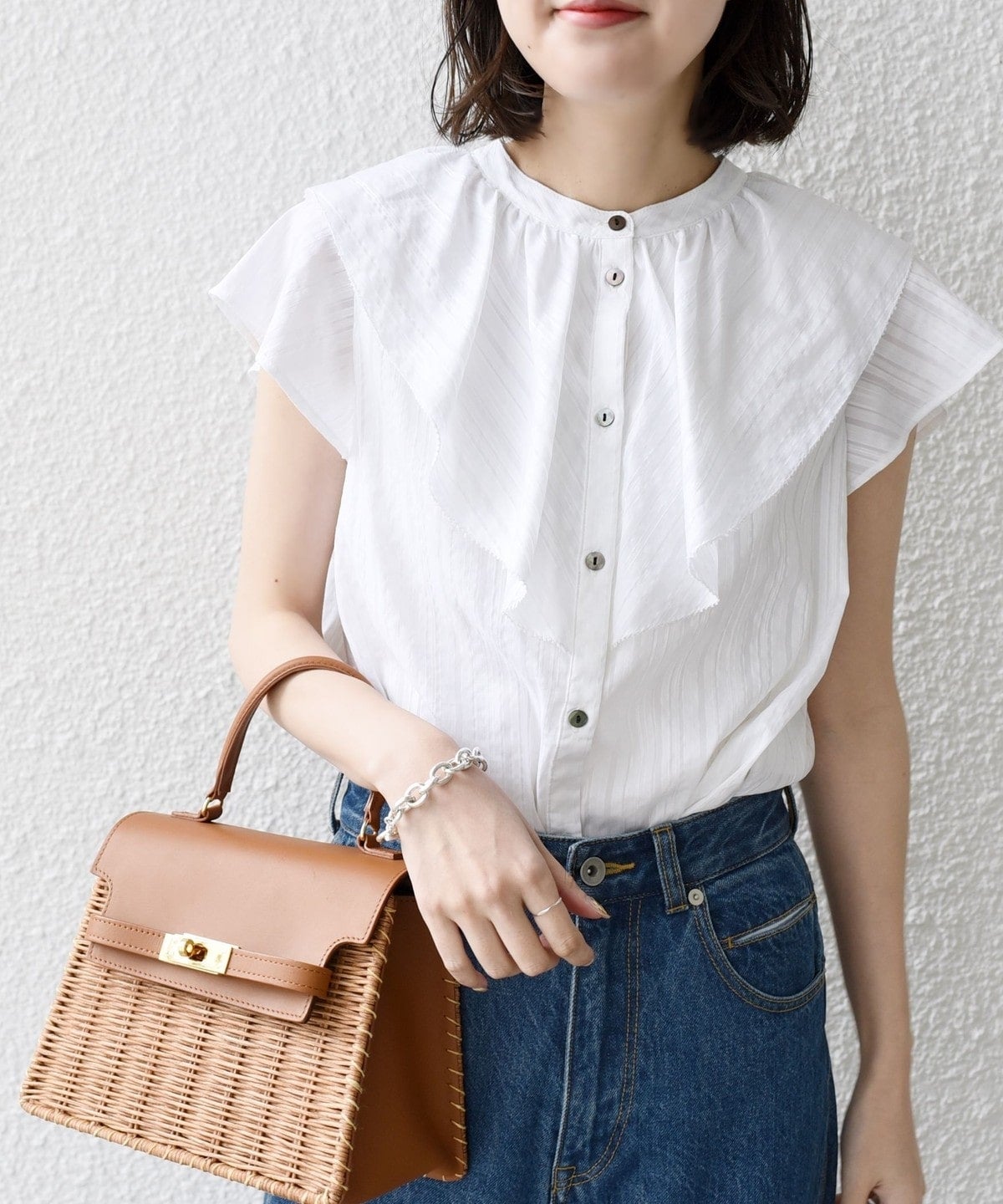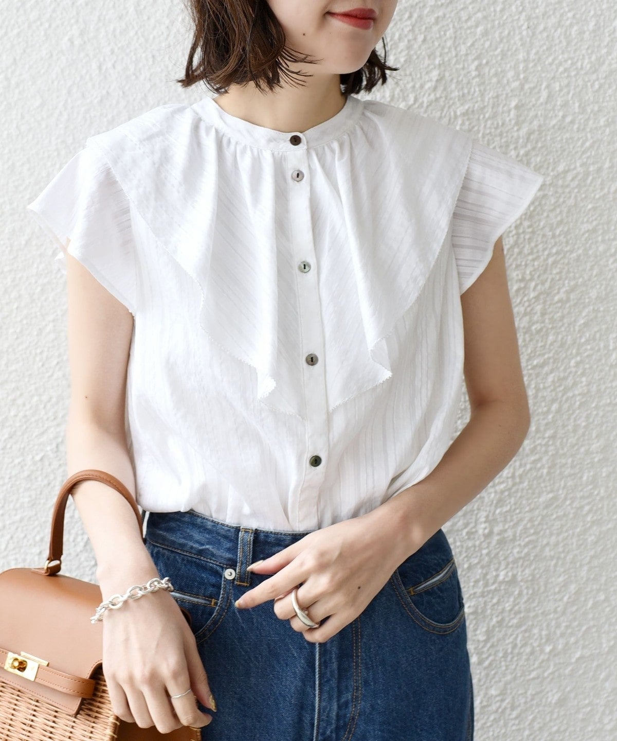 〈手洗い可能〉ドビー ストライプ フリル ラッフル ブラウス
