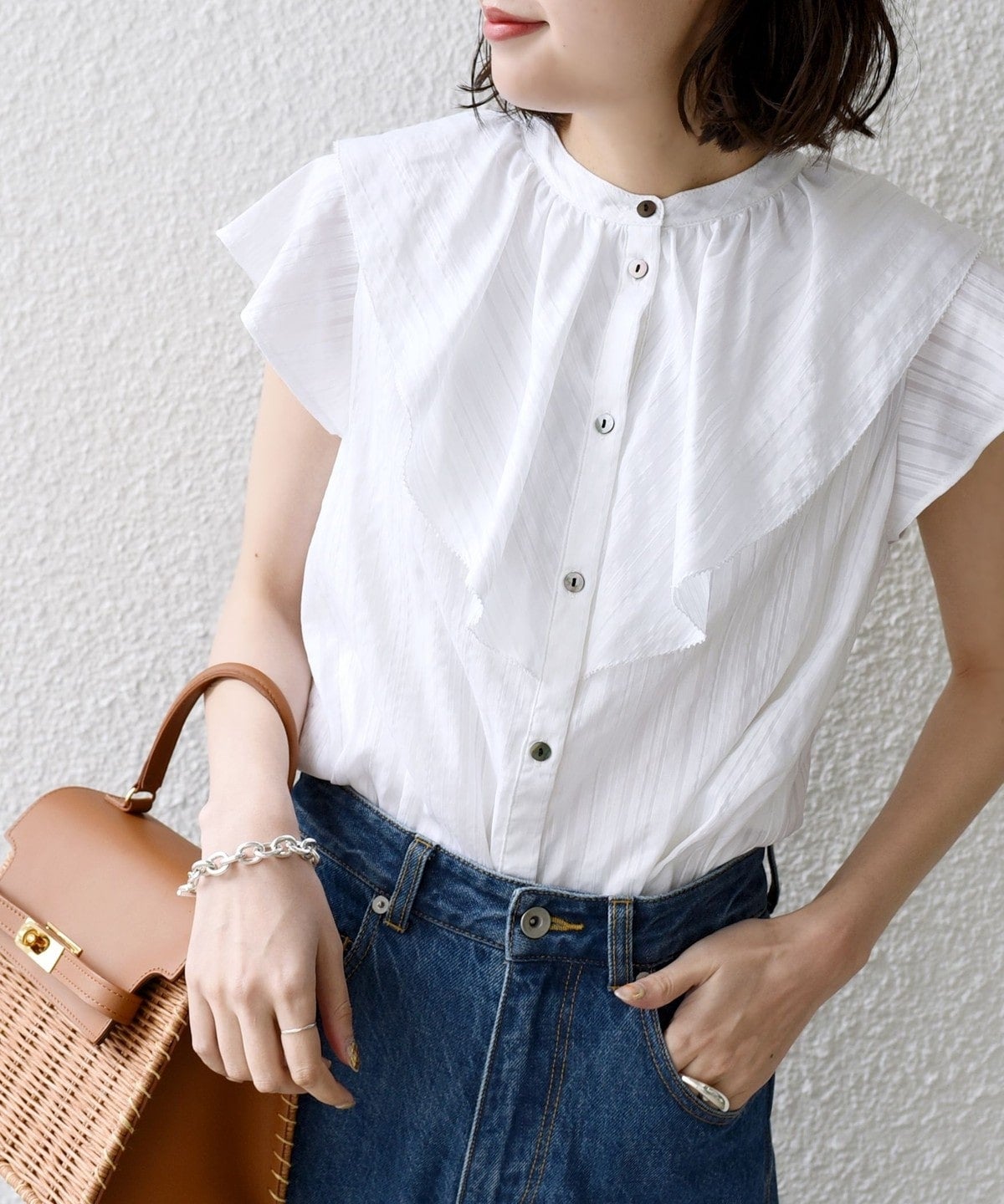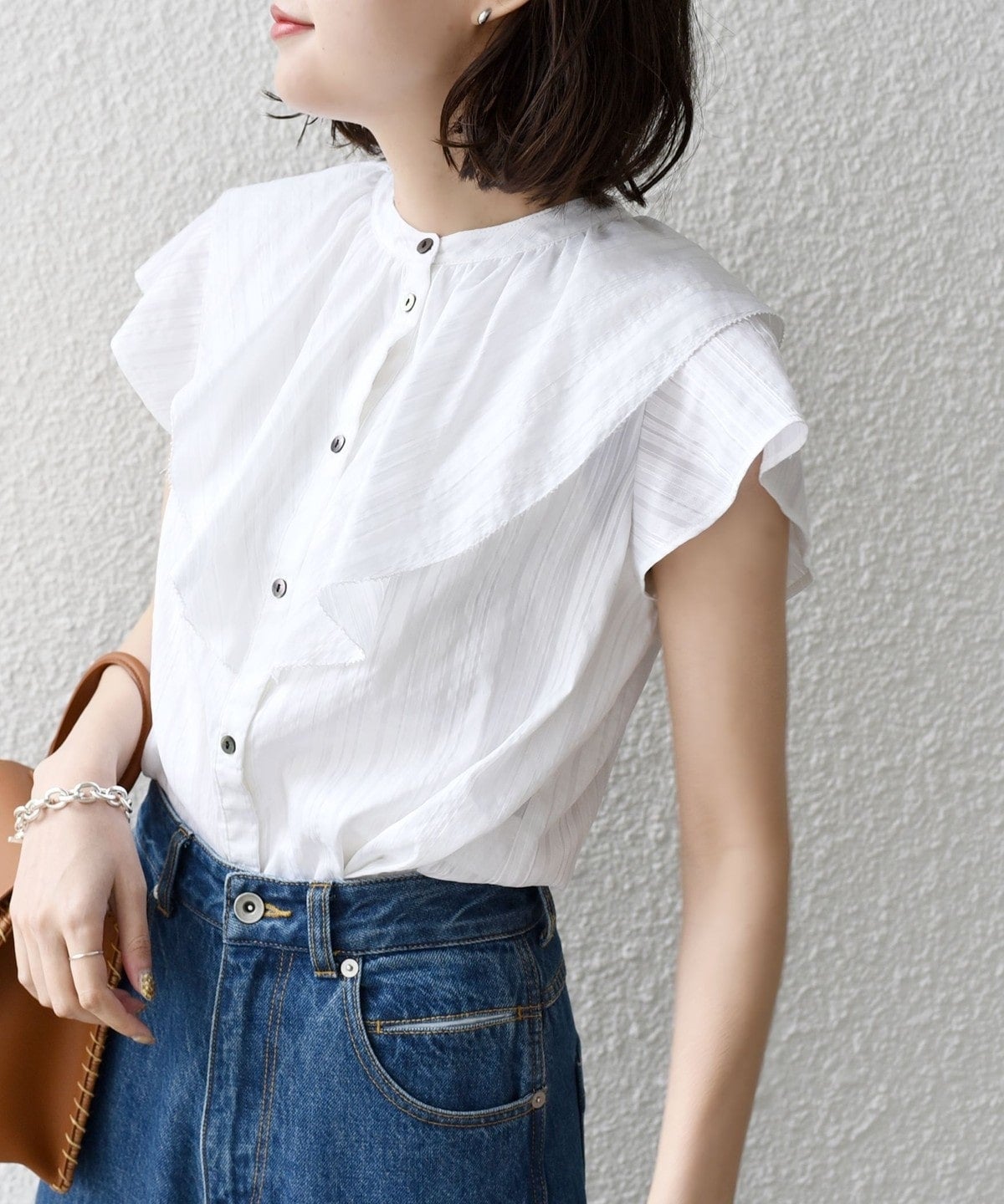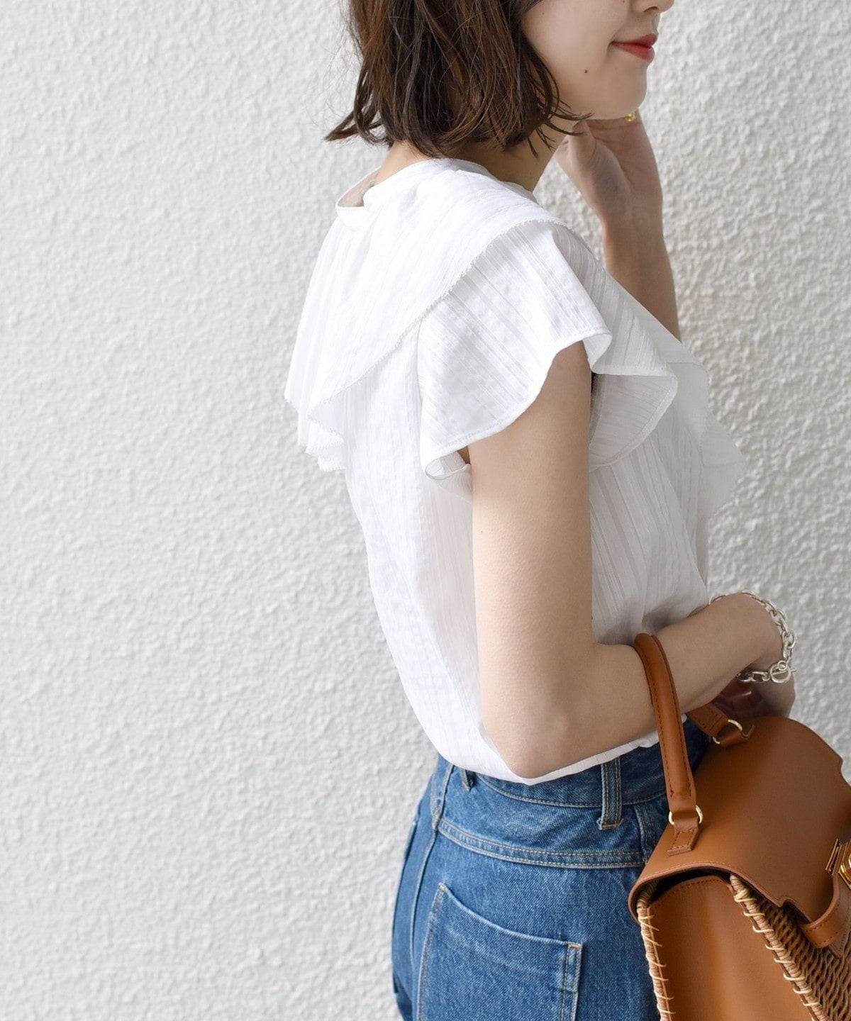 ・甘すぎないので大人っぽく着られるカラーフリルブラウスです。