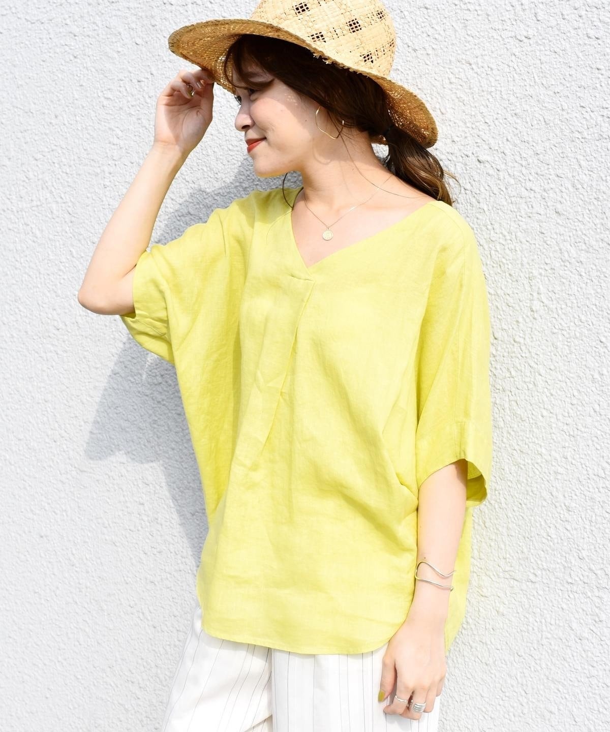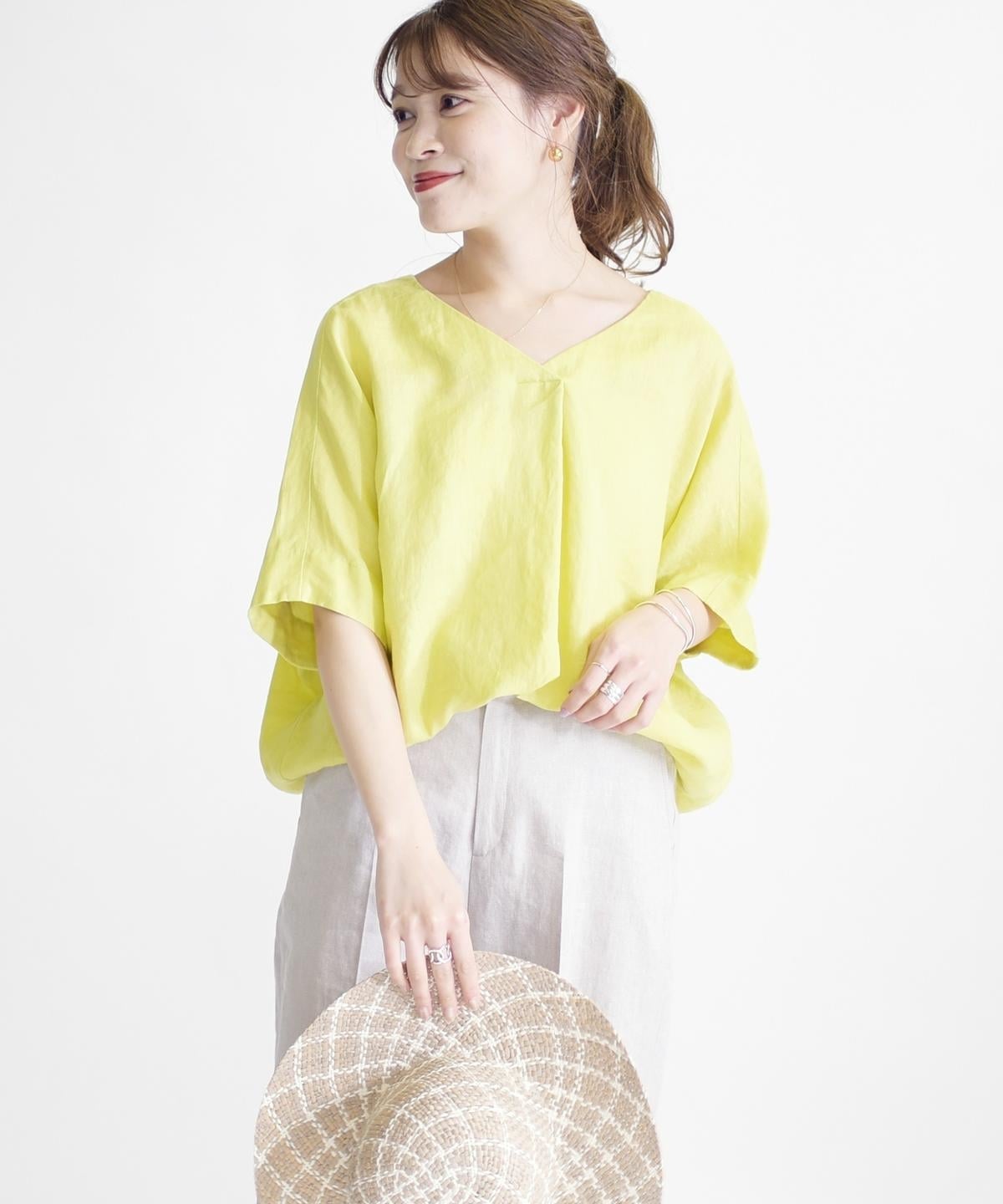 全体的にゆったりシルエットですが、Vネックなので、デコルテラインを綺麗にみせてくれます。