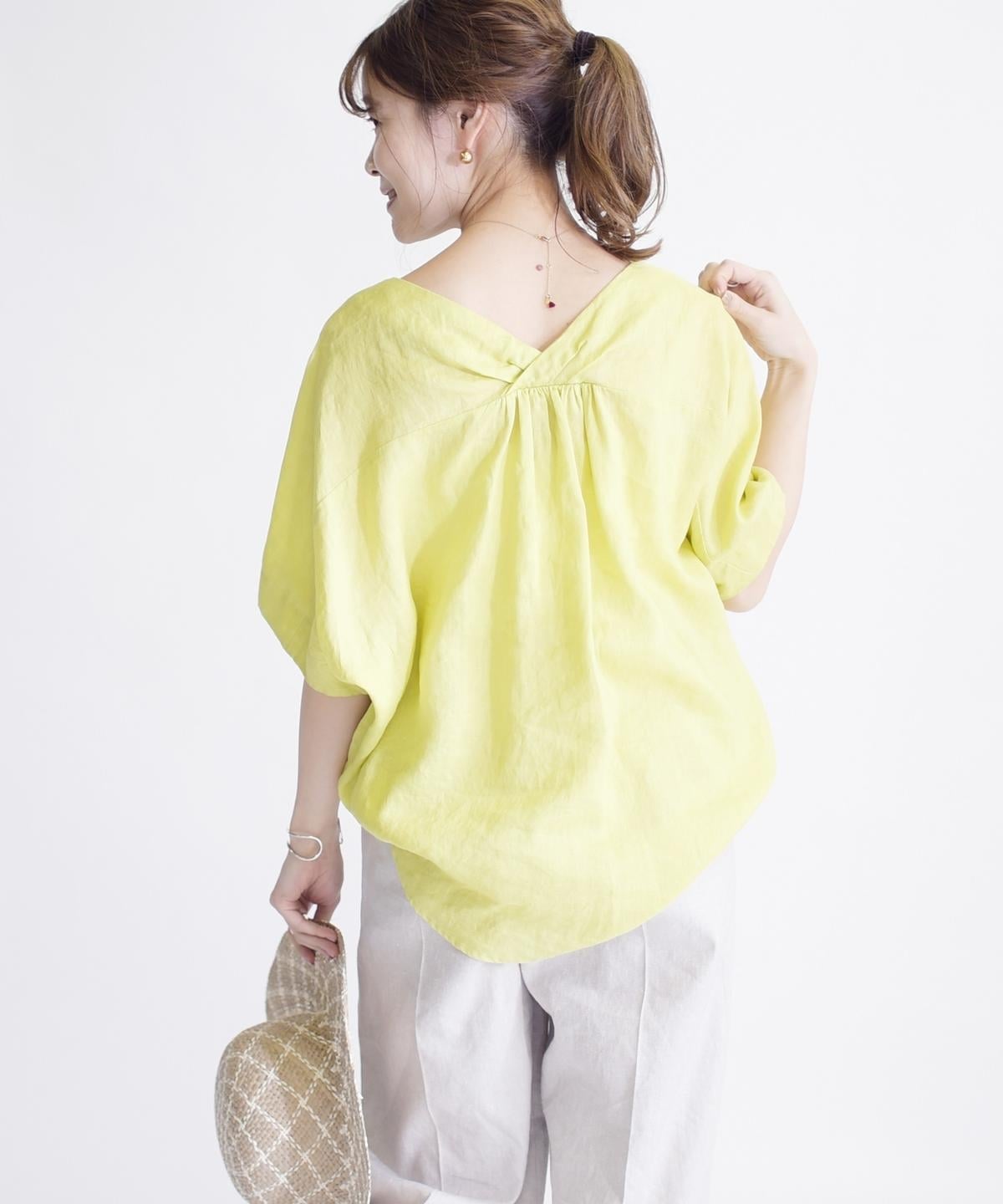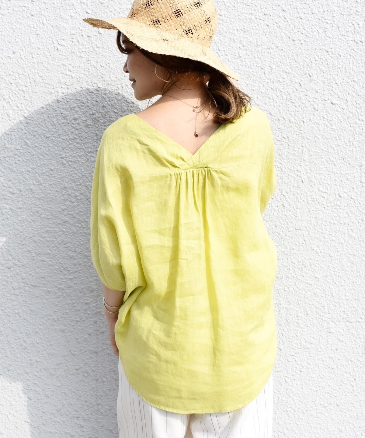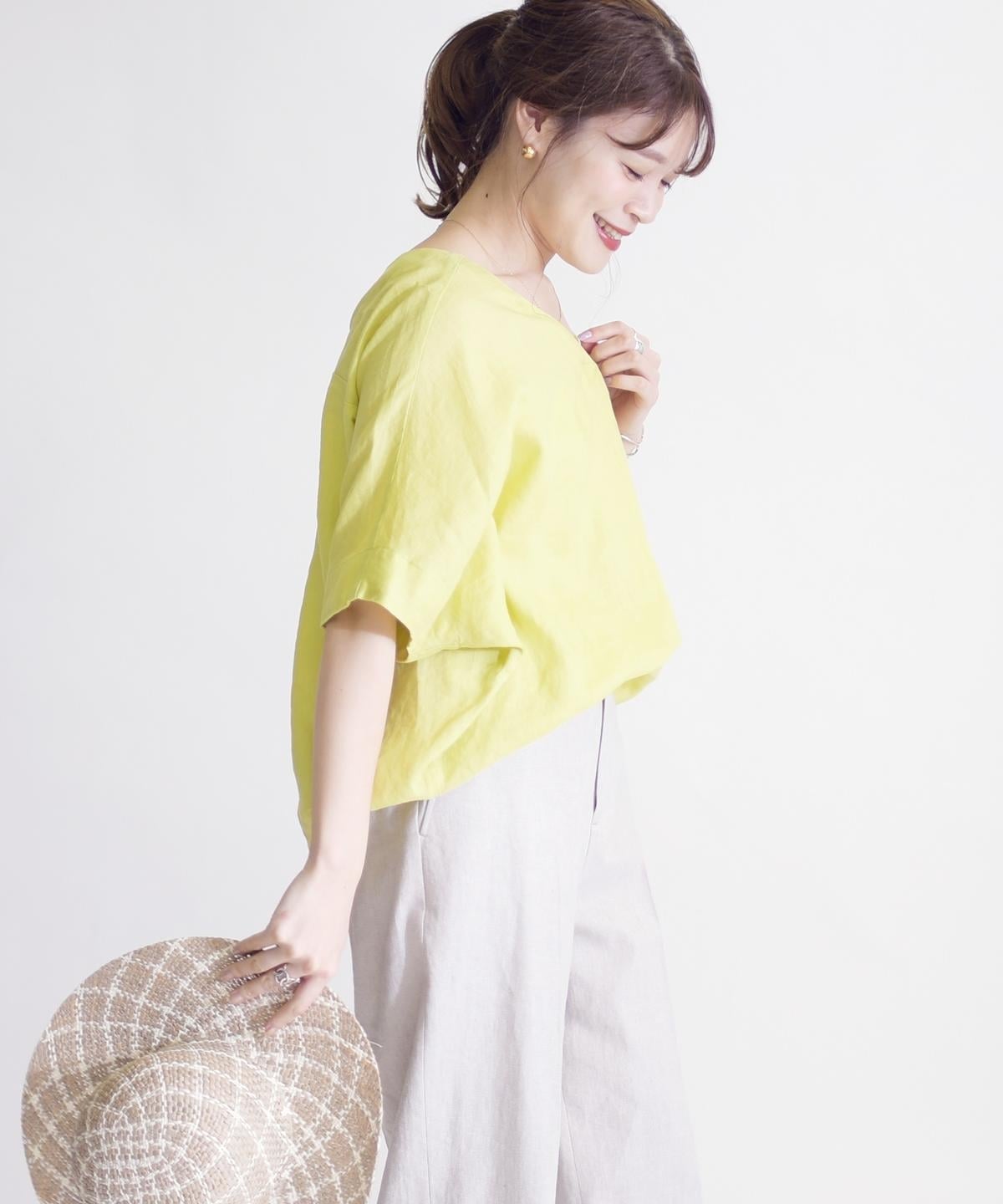 コメント:肌離れの良いさらっとした生地感が◎深すぎないVネックなので、露出感もなく気軽に着られました!バックネックもギャザーが入っていてシルエットも綺麗です。