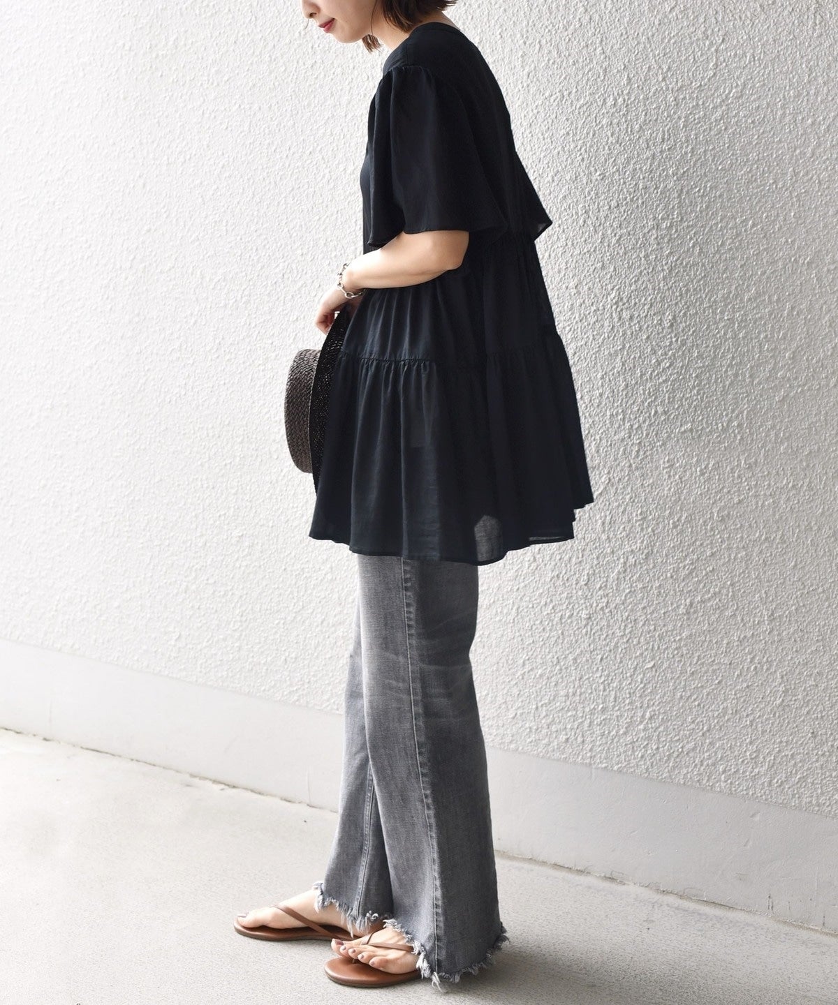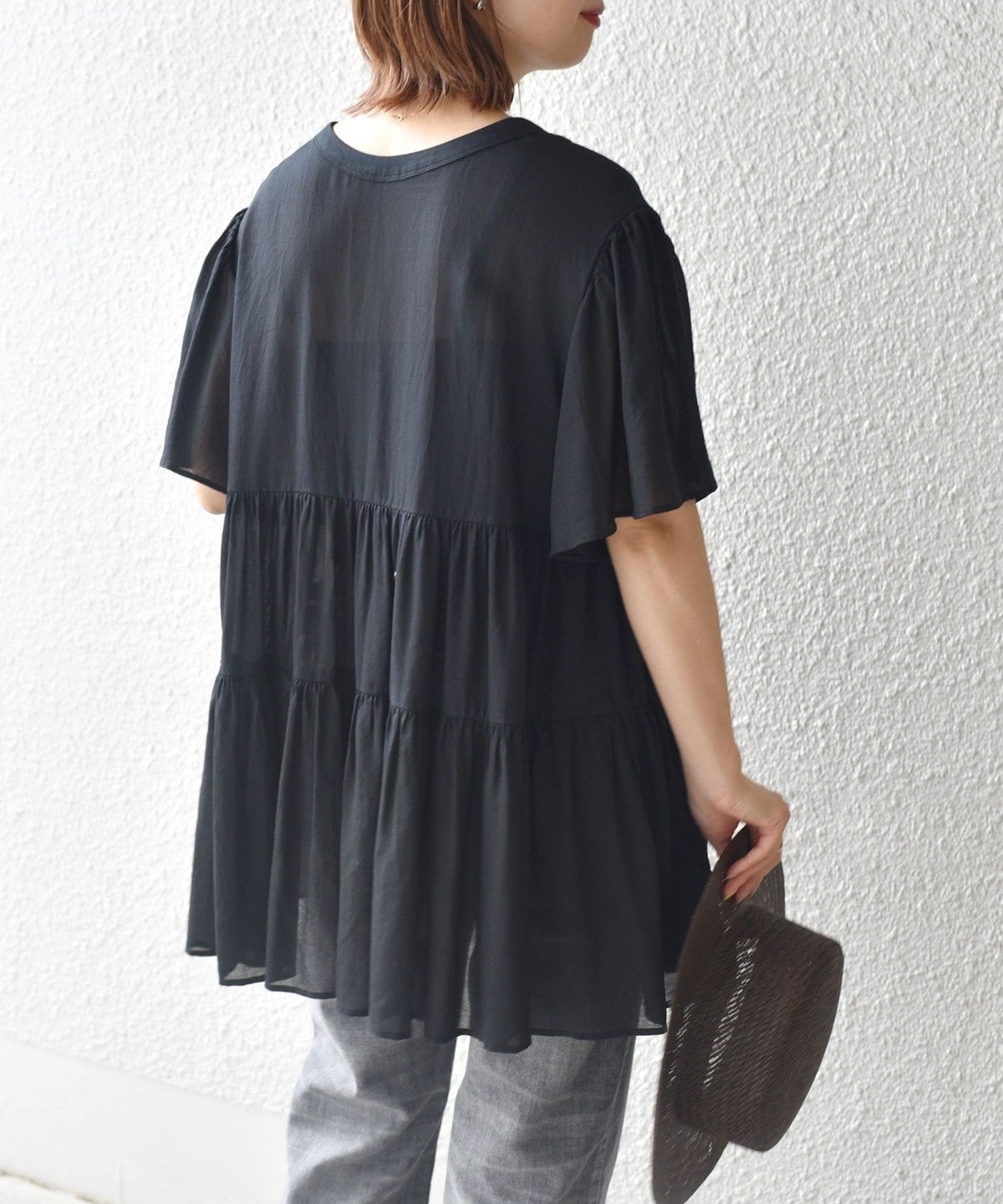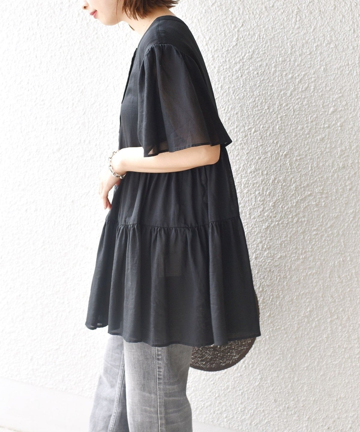 ギャザーのたっぷり入ったボリューム感とティアードのデザインがデザインポイントです。