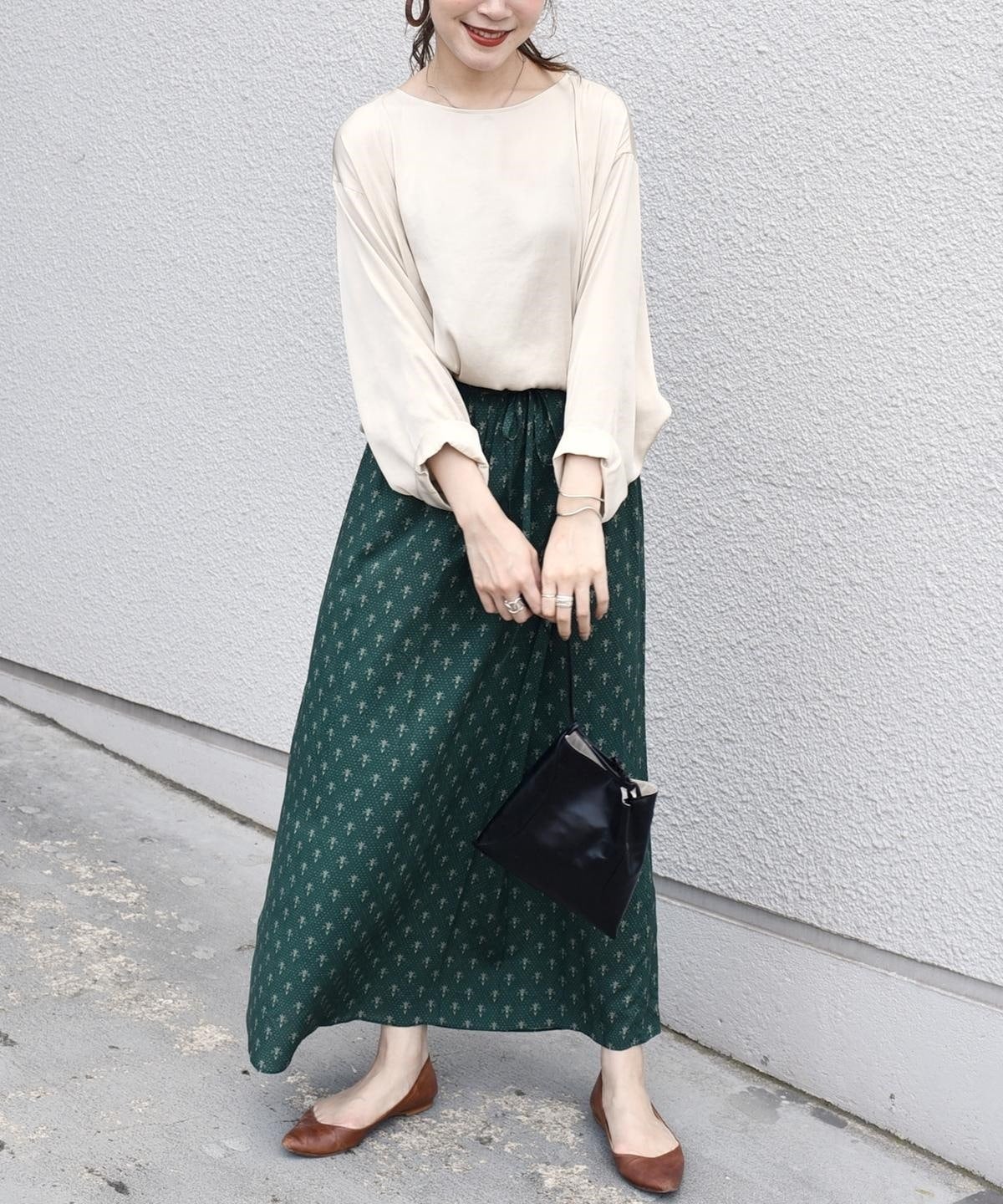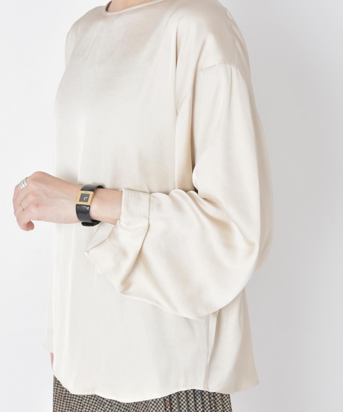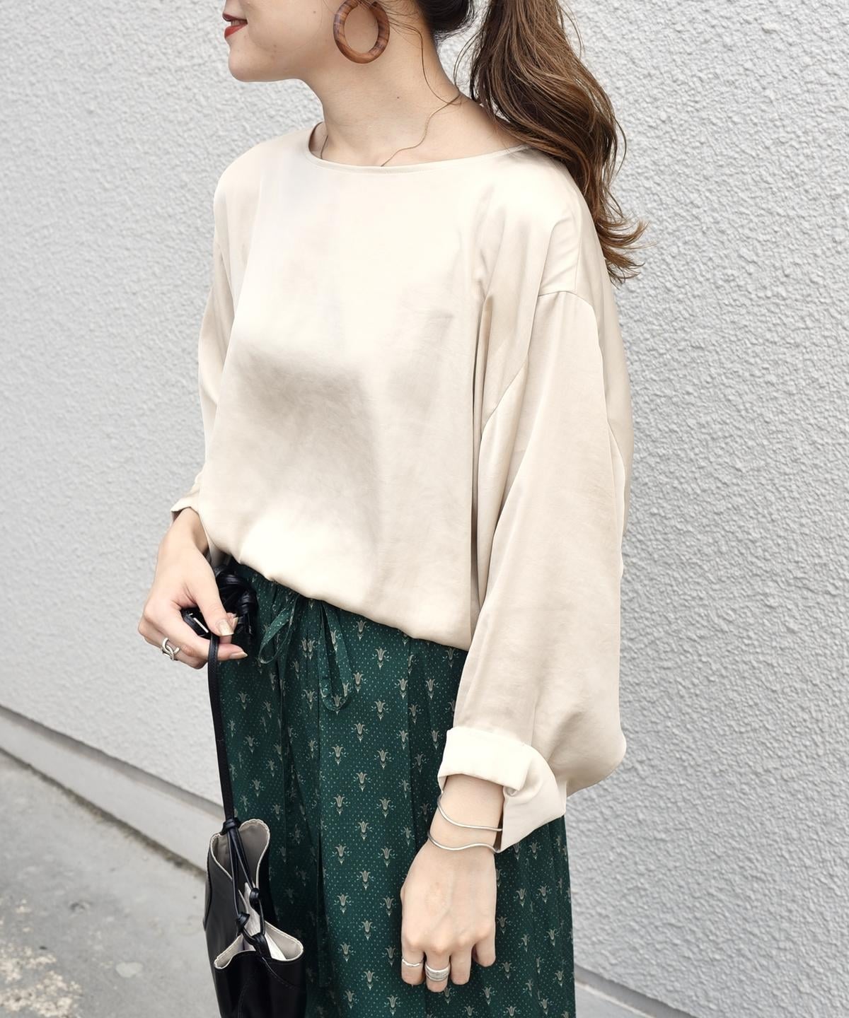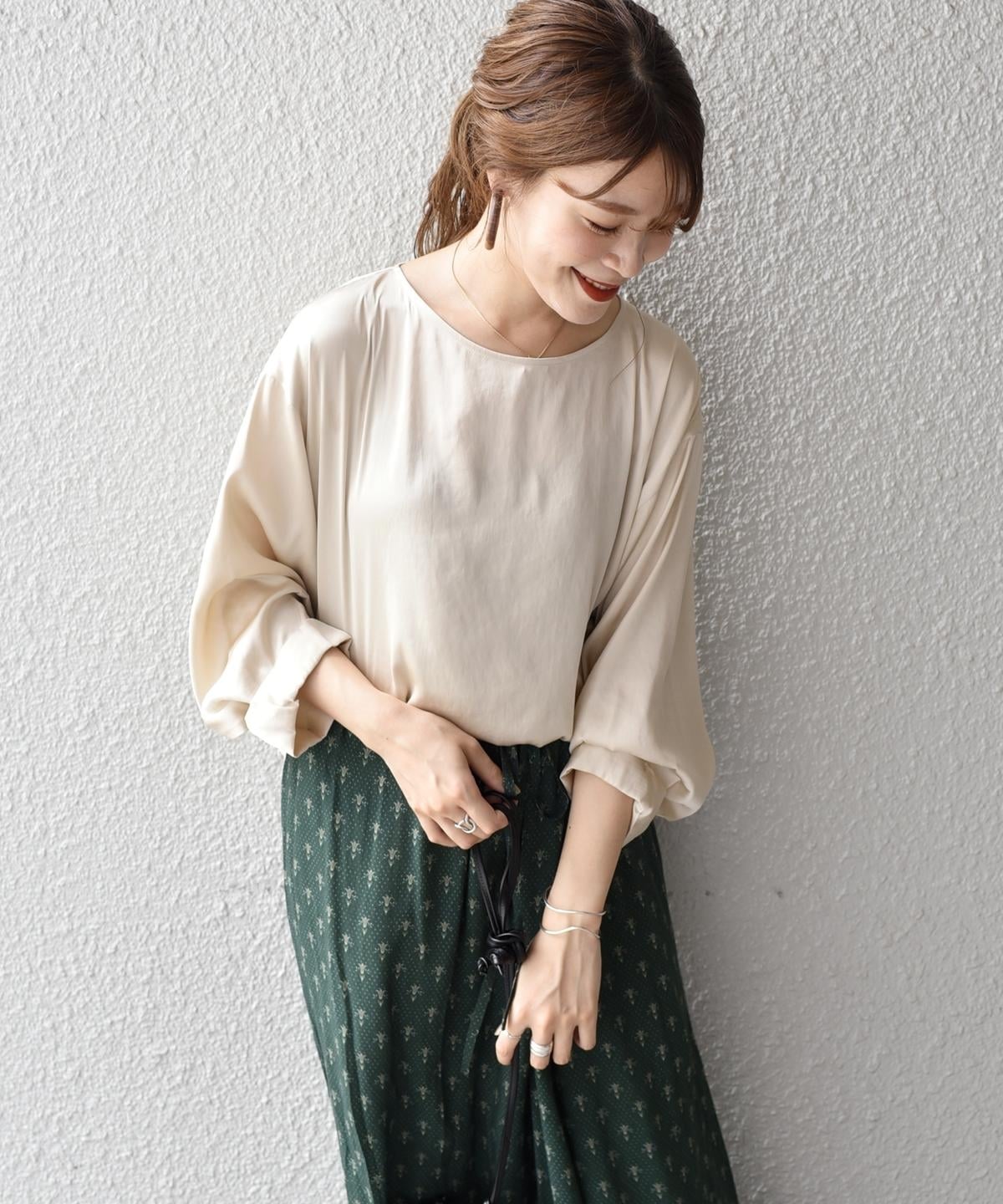 アクセントになってくれる程よいボリュームスリーブに、落ち感のある素材でスッキリと合わせられるブラウス。
