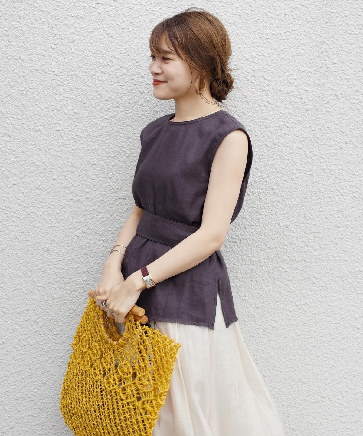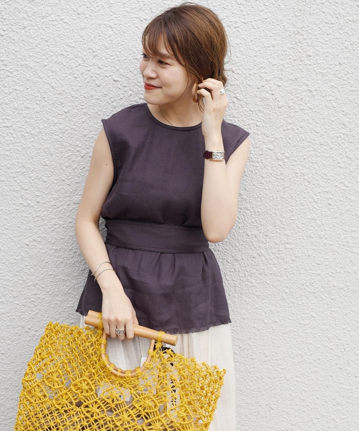 前後2WAYで着回せ、ベルトの取り外しが可能なので、雰囲気を変えて楽しめるトップスです。