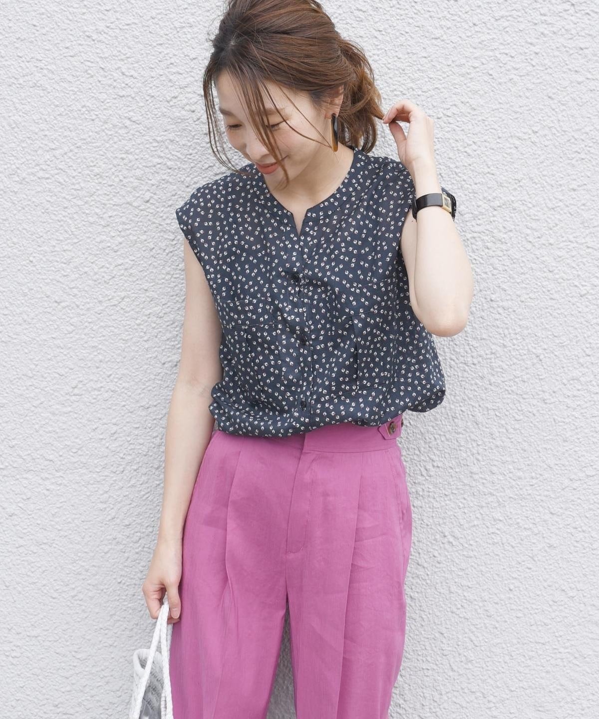 コットンローンを使用し、華奢な襟元と少し肩を落とした袖で抜け感を出しています。
