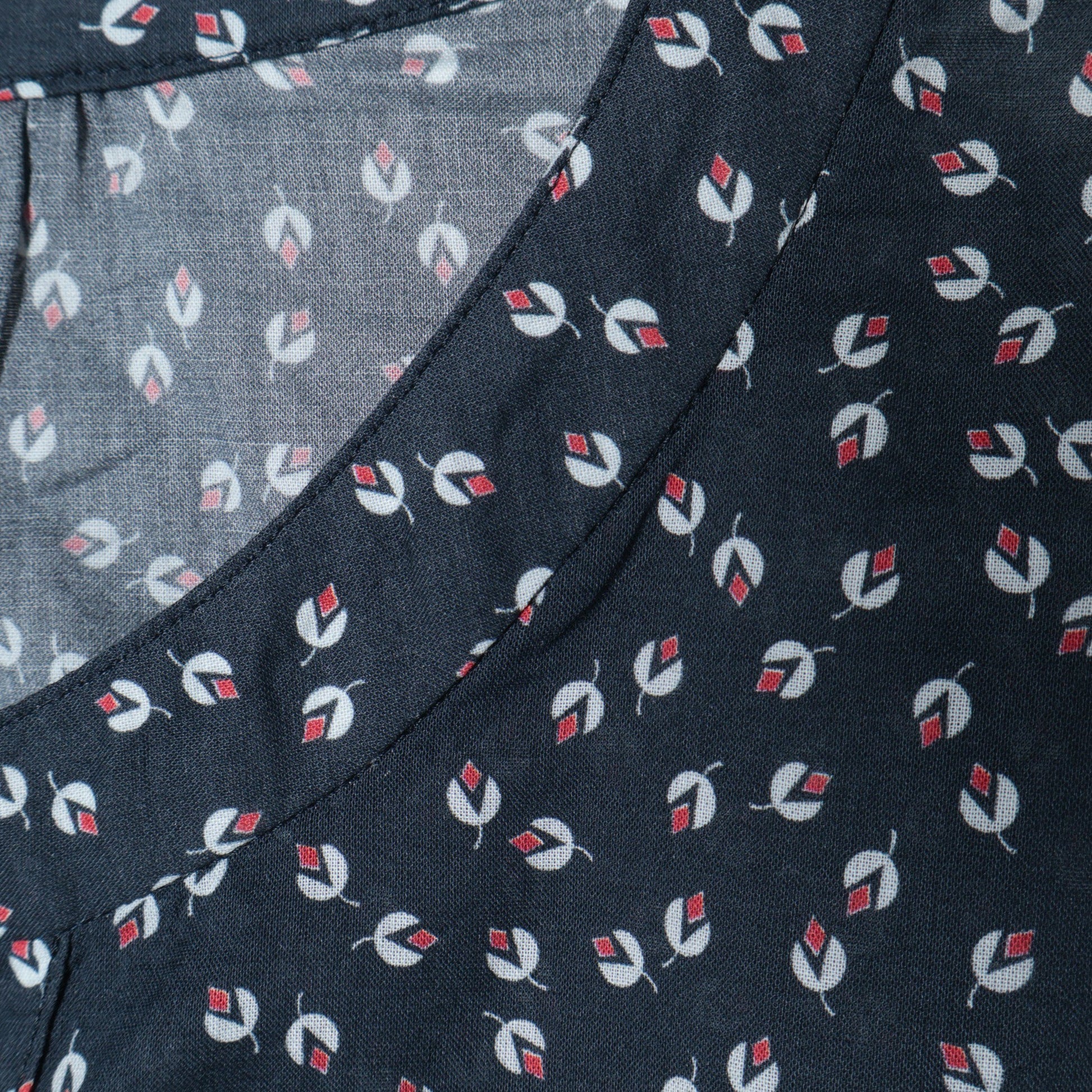 リーフモチーフのシックな柄は、DEVEAUX社の夏プリントです。