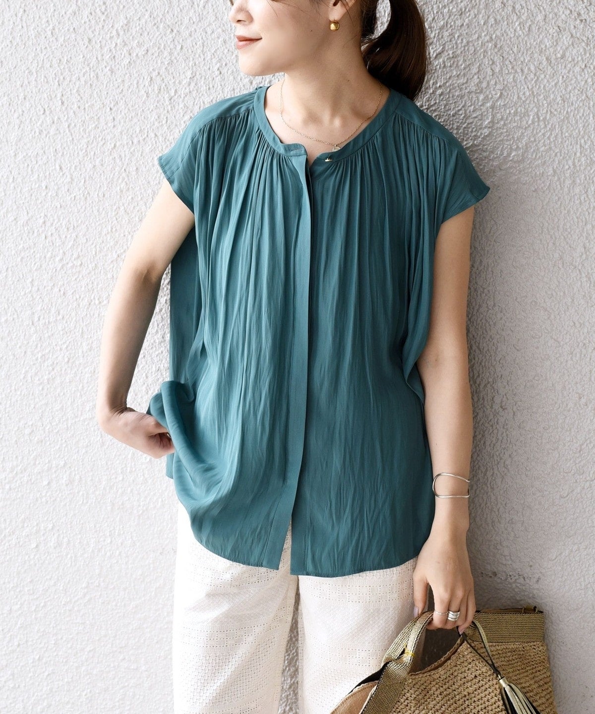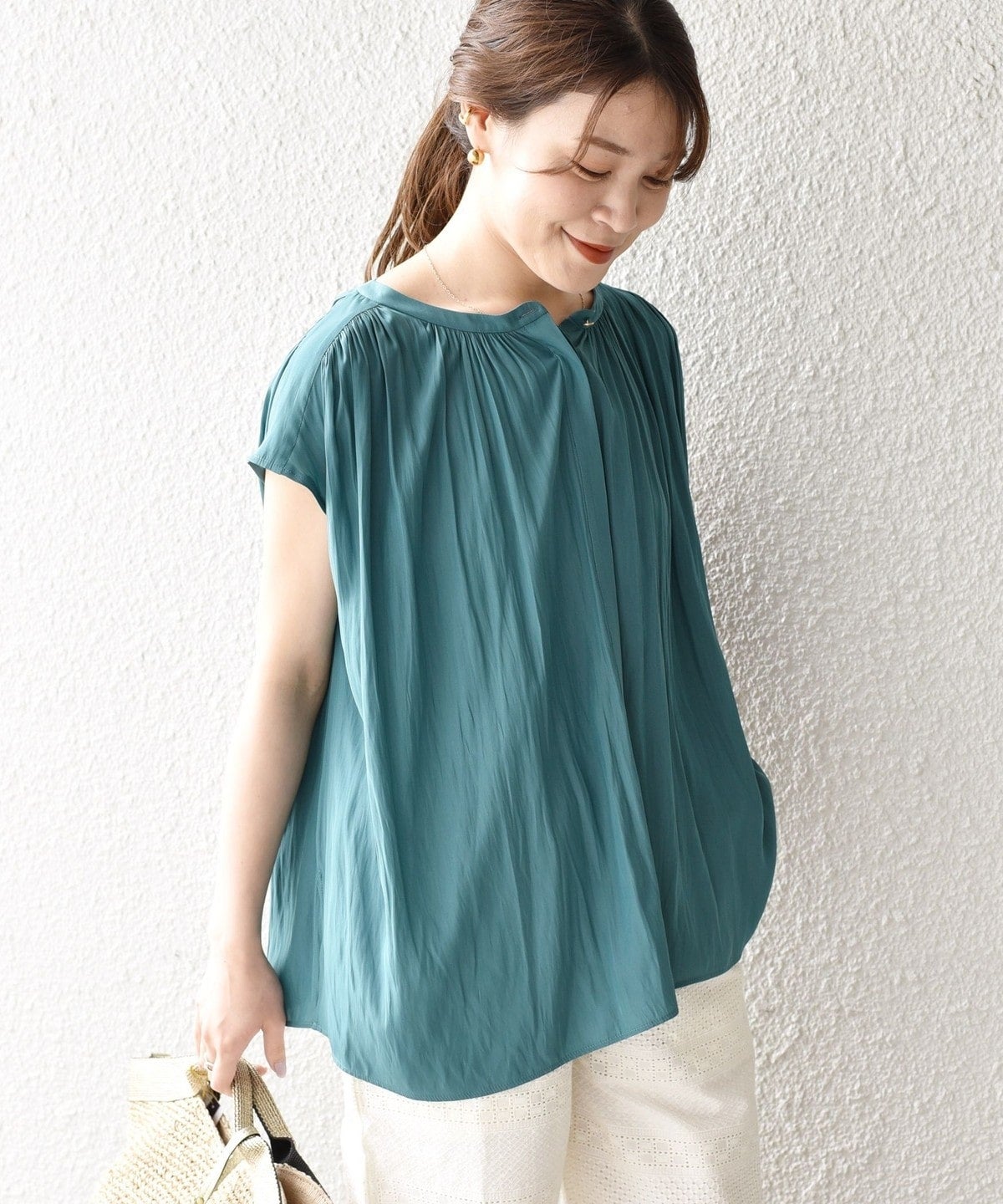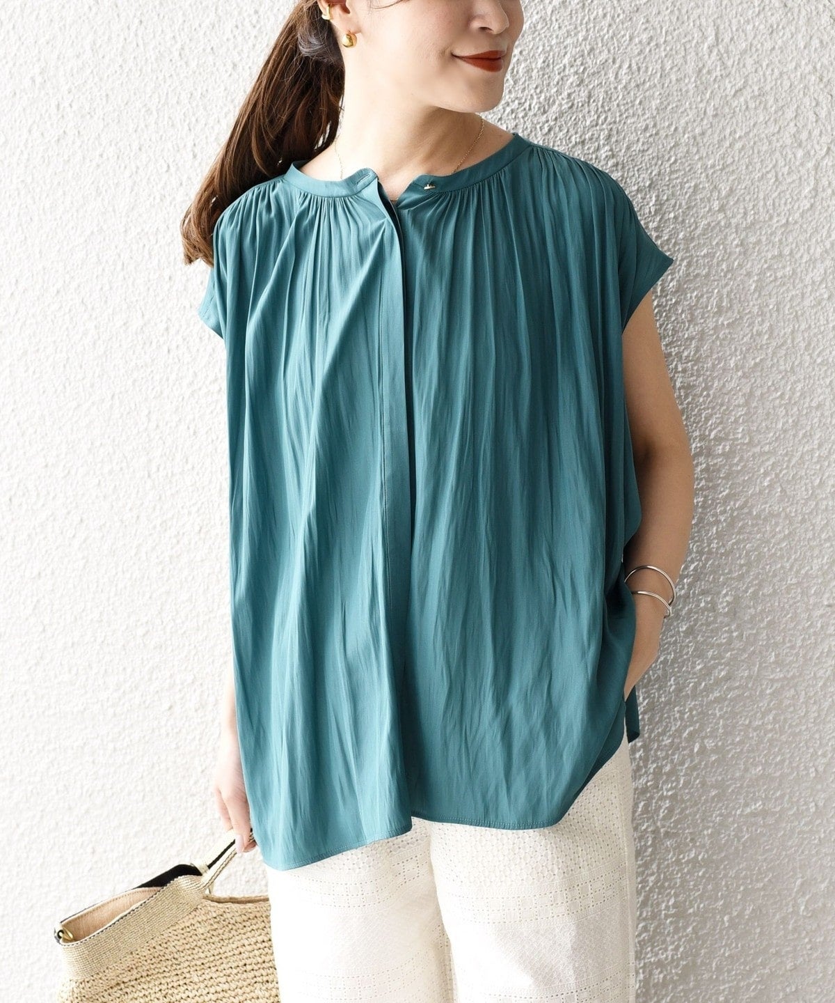 繊細なギャザーが女性らしいドレープを演出してくれるブラウス。